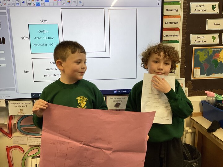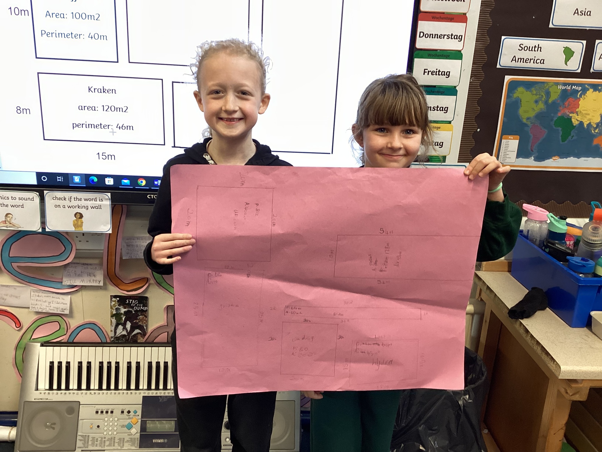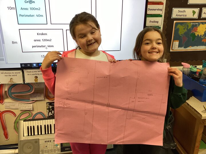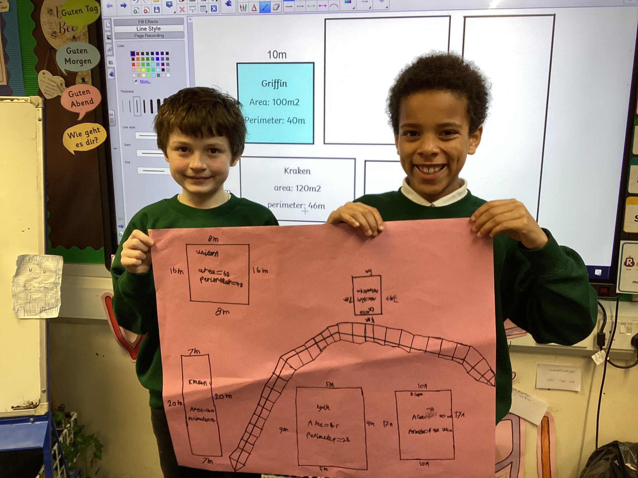 They were given a list of the creatures they needed to house and their requirements and they set to work planning out where each of these animals would go. Children worked with a partner and used lots of maths skills to create these zoos. Not only did they need to give animals certain areas or perimeters, children needed to use their multiplication and addition skills to assure that the Dragon had an enclosure twice the size of the Unicorn - or they needed their shape skills to assure that the Kraken had a rectangular enclosure. On top of this, we needed a steady hand and accurate measuring skills with our rulers to make sure each enclosure was perfect!