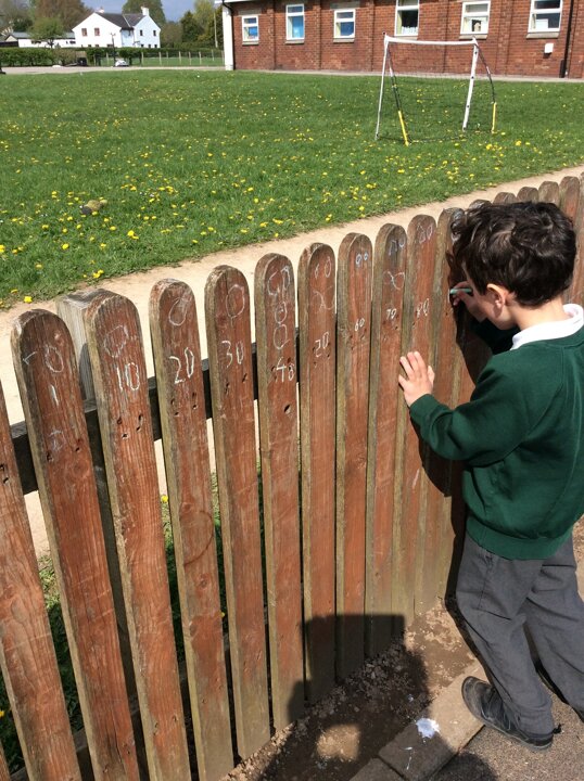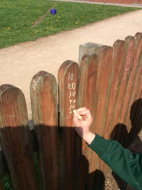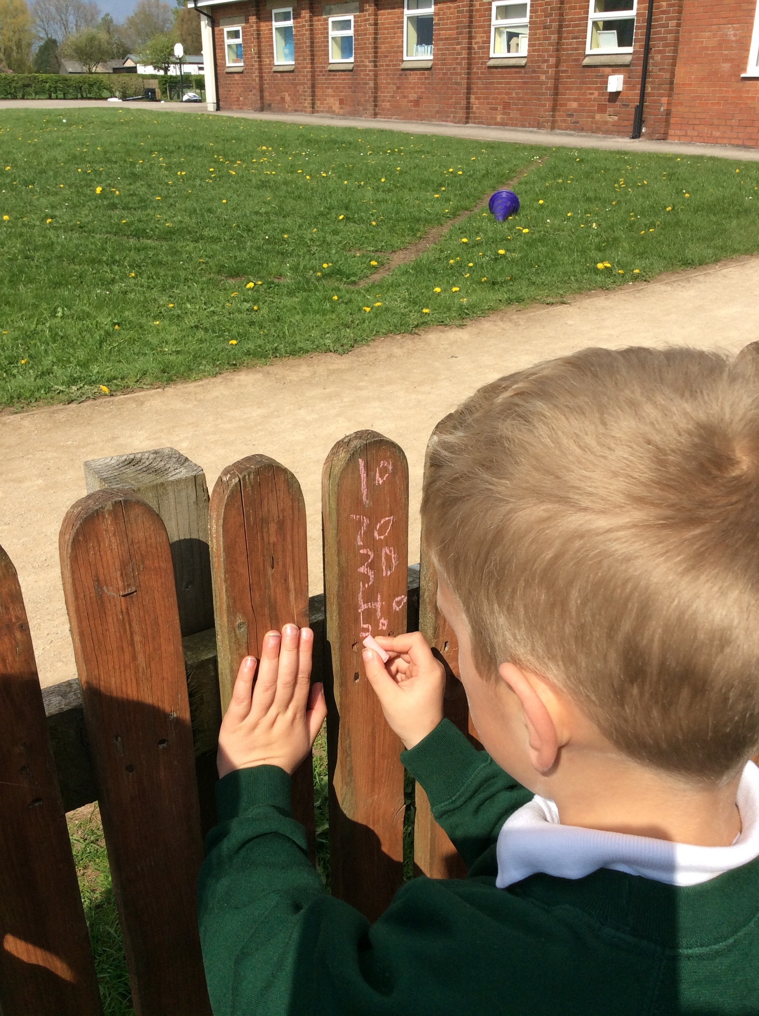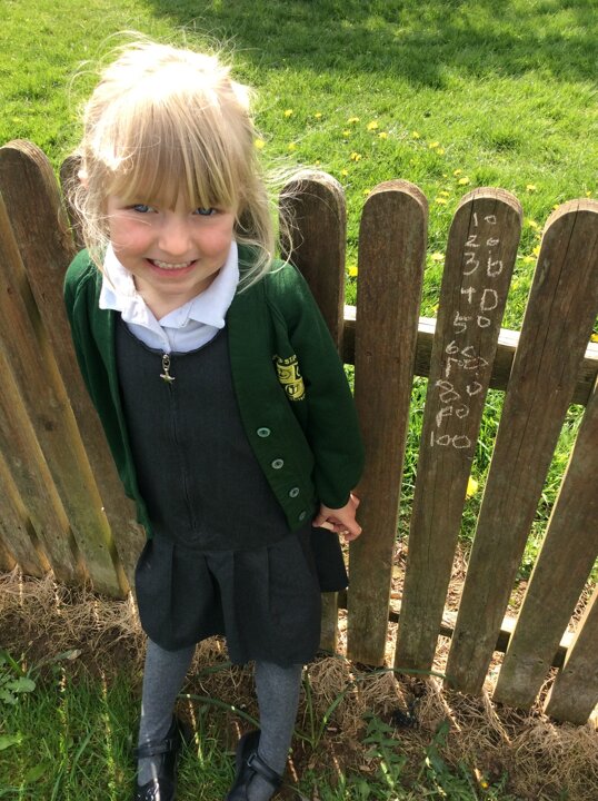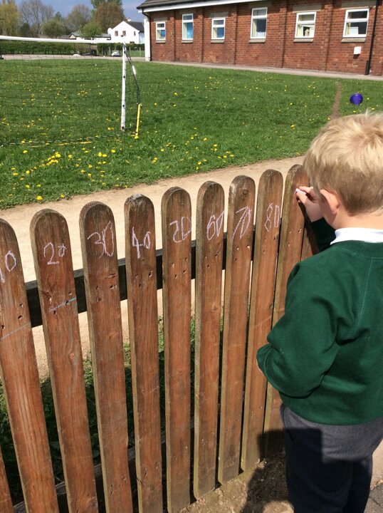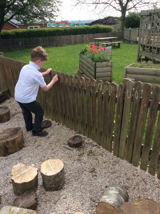 We have been busy this week using our fabulous outdoor space for our maths learning. As you can see from these photos, in the different year groups we are learning to count to 20, learning to count in 10s, 2s and 5s as well as learning numbers to 100!