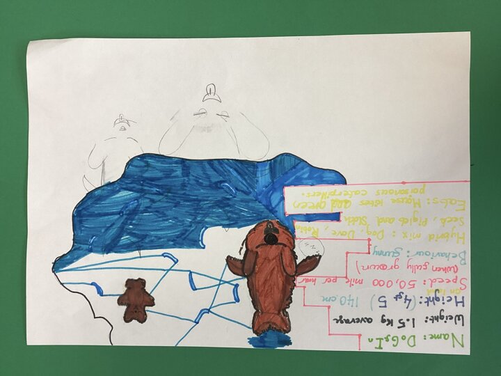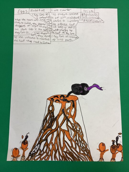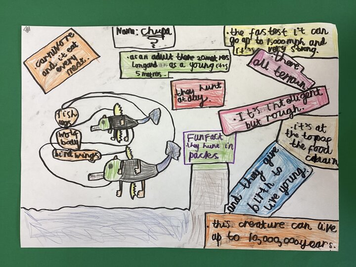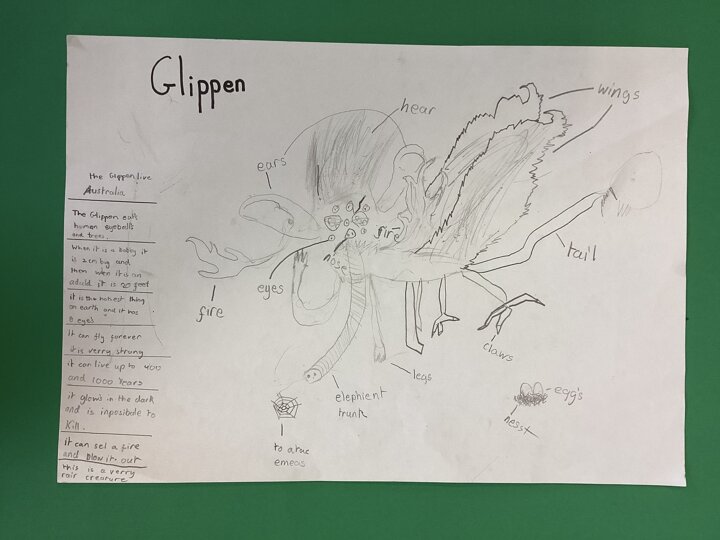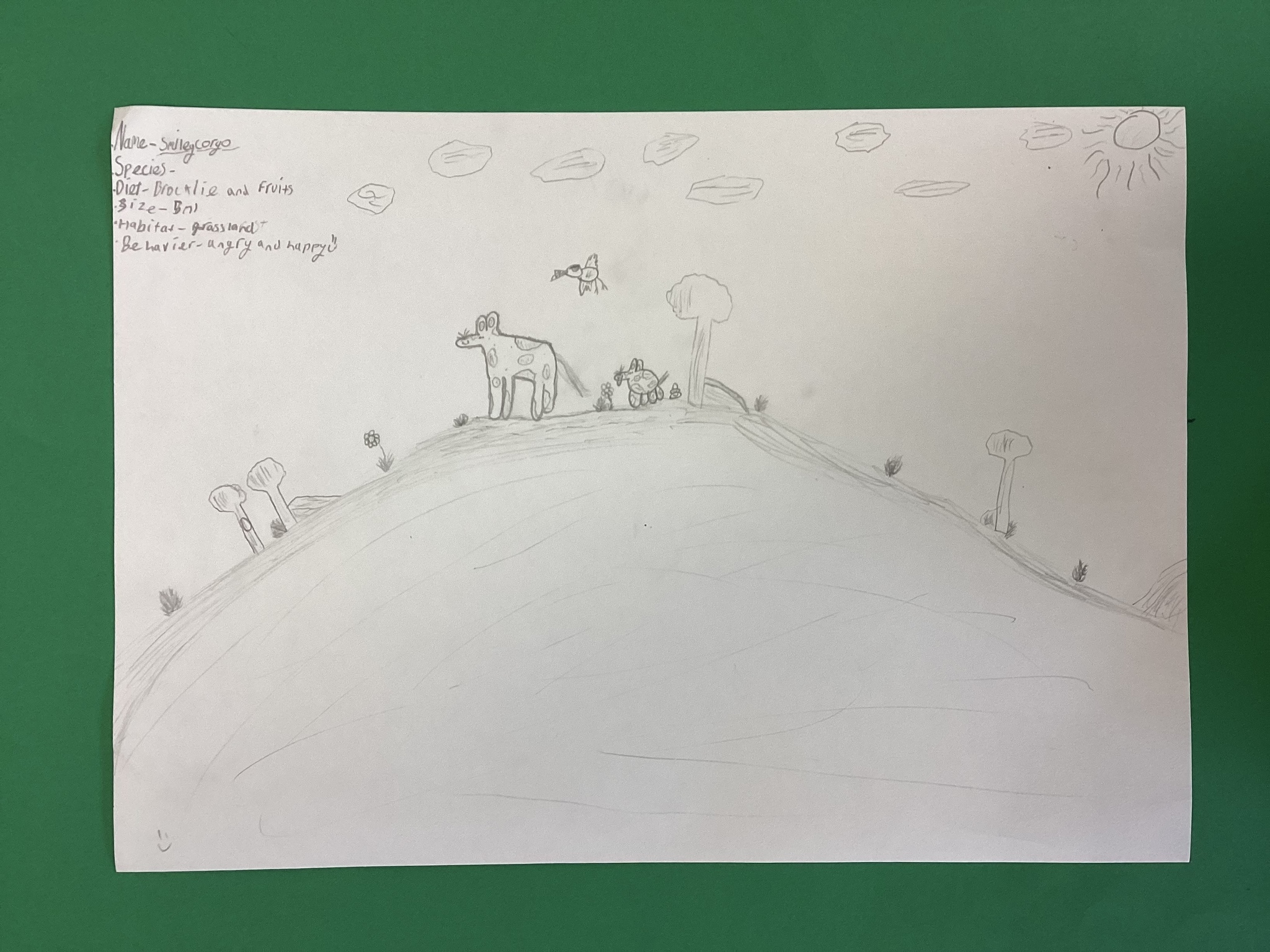When considering their species, Upper School had to think of which parts of known animals they wanted to include and what the overall appearance would be. They also considered a variety of details: habitat, diet, food chains, behaviour, young, hunting, changes as they grow, measurements.