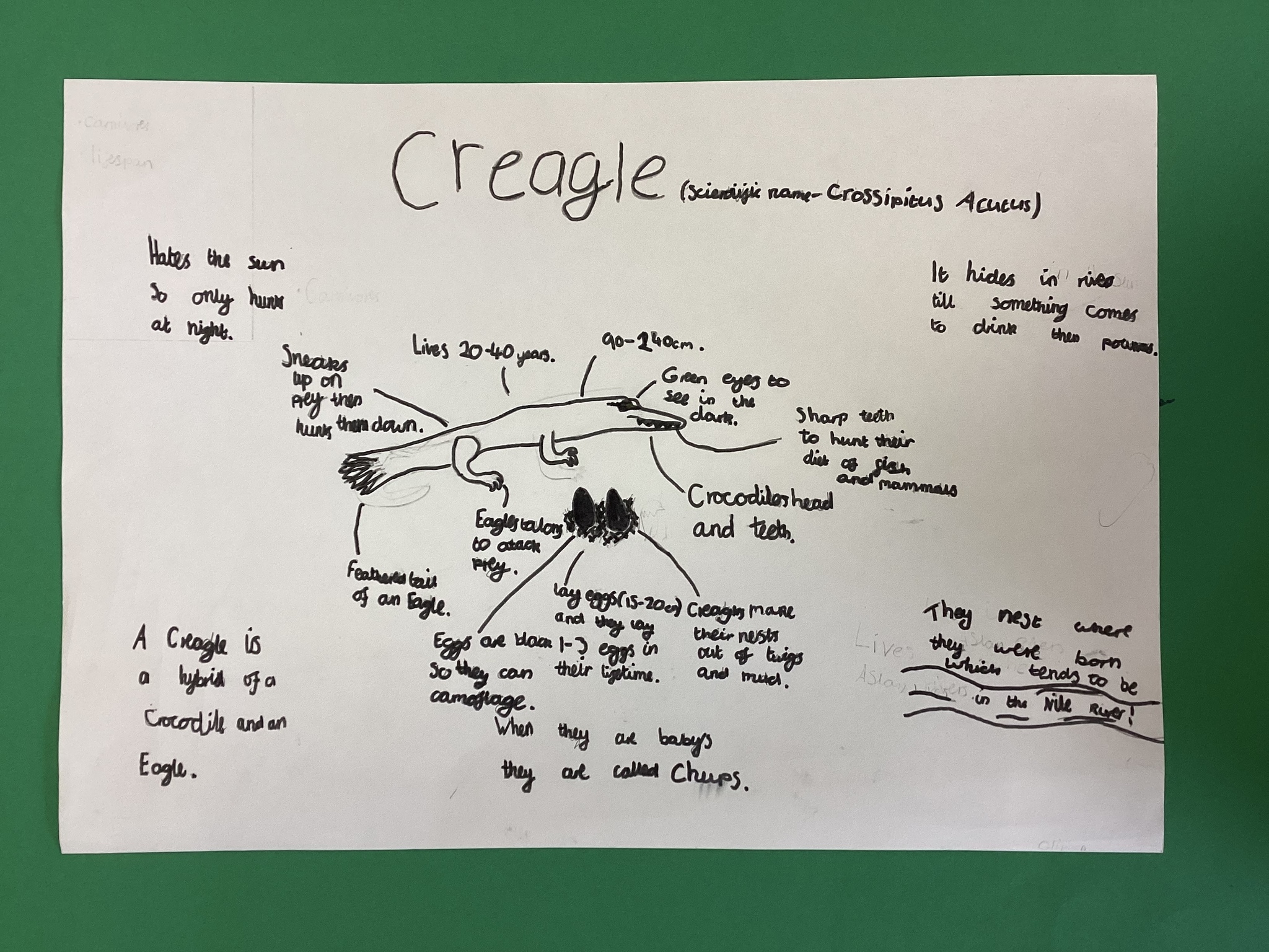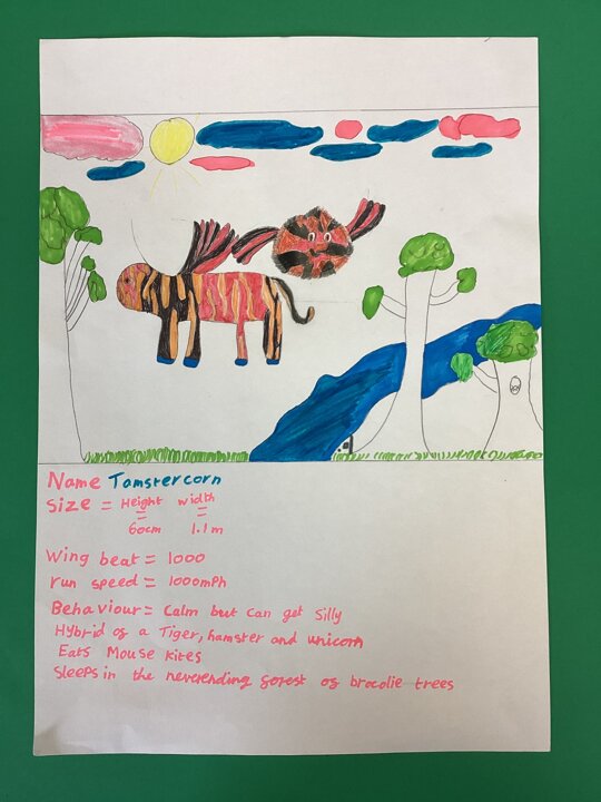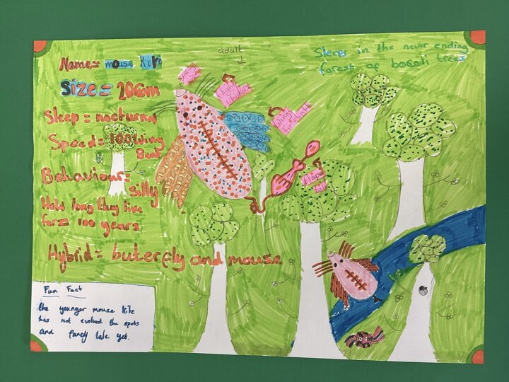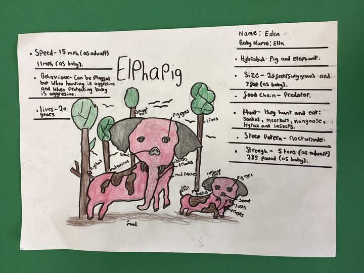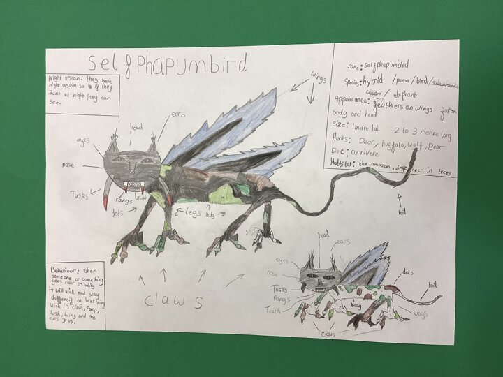 This week, Upper School have been thrown into a creative project that we discussed as being a ‘buy one get two free’ learning experience! Their project wonderfully combines Art, English and Science and they’ve worked their little socks off to produce incredible non-chronological reports on unique hybrid species and a piece of creative writing to accompany it.