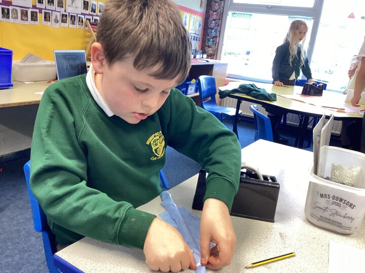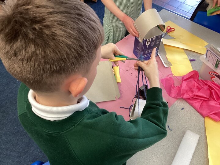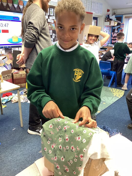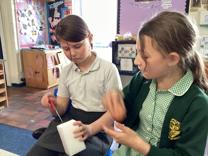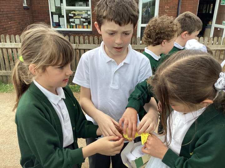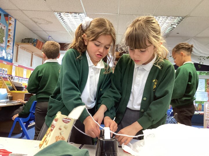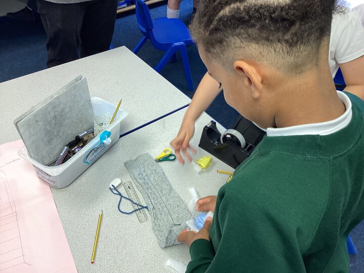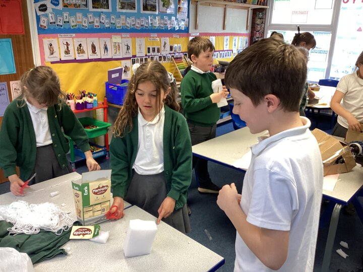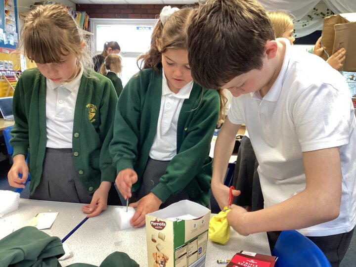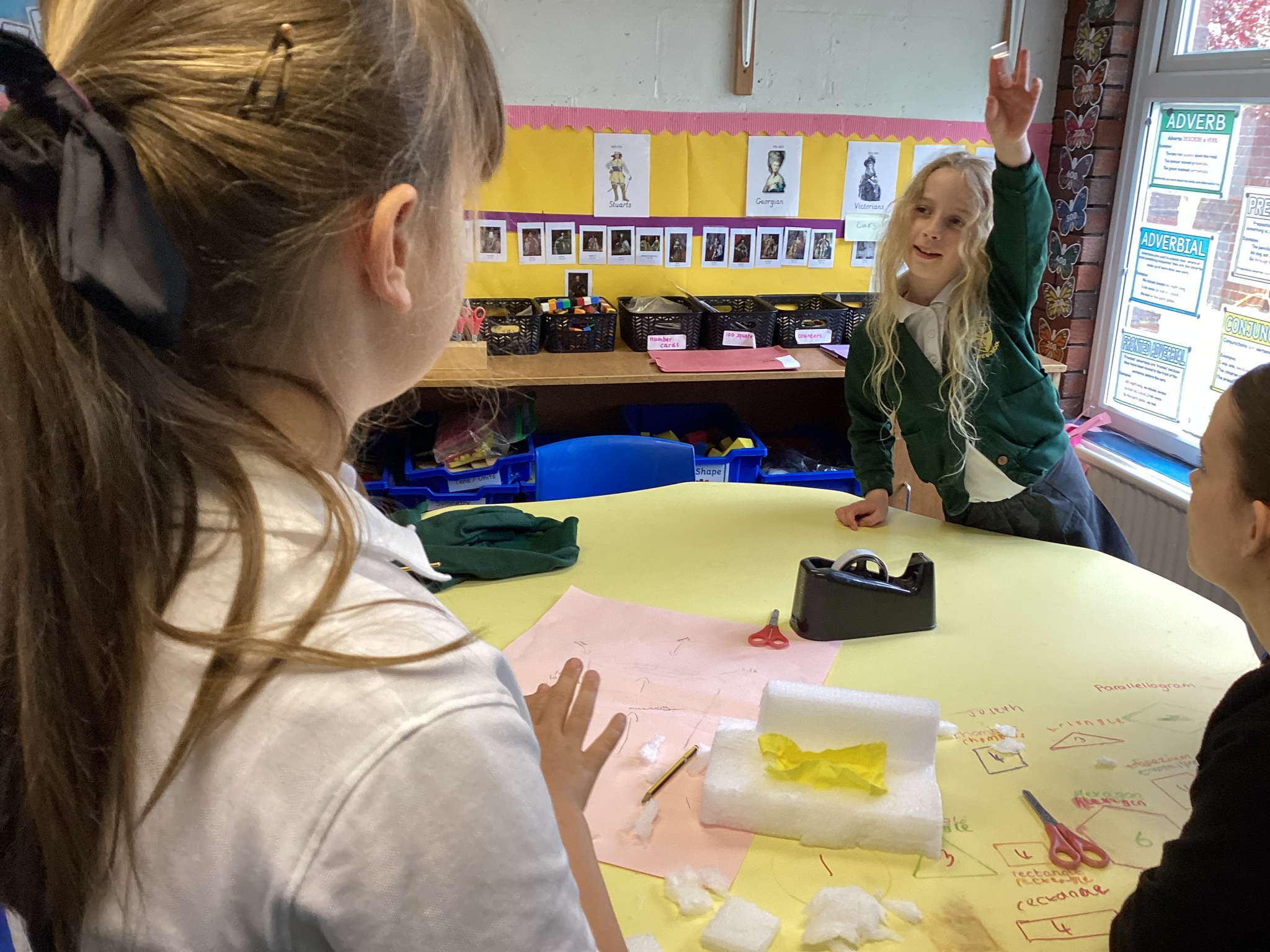 Children used their science knowledge of air resistance and drag to help them create a design that would slow down their egg before it hit the ground. Children also used their DT knowledge of construction to assure that the egg had a good structure to sit inside that would protect them.