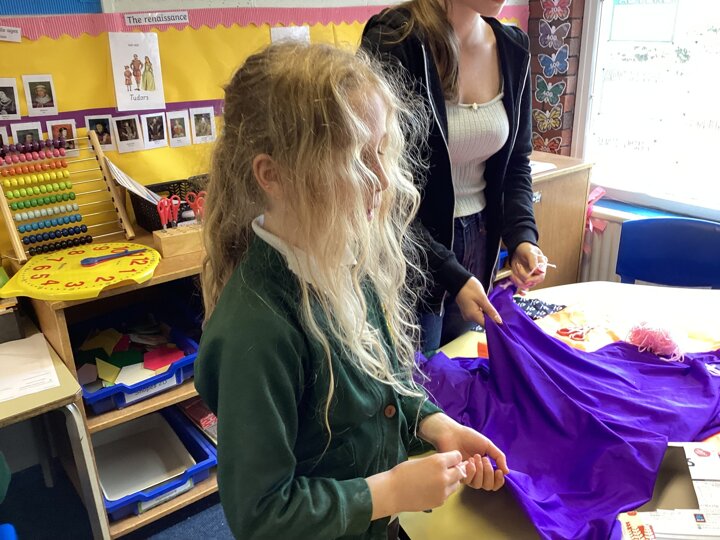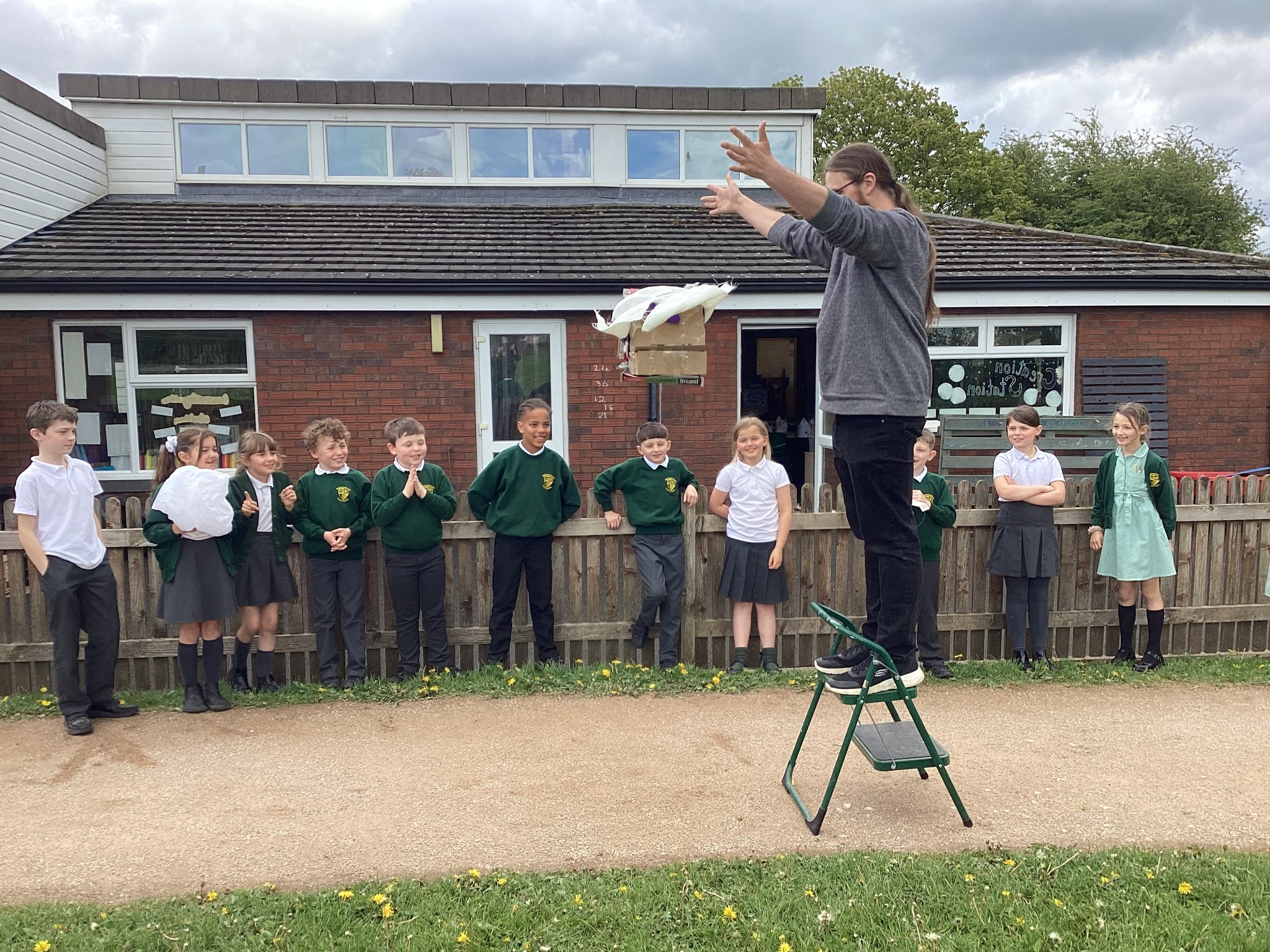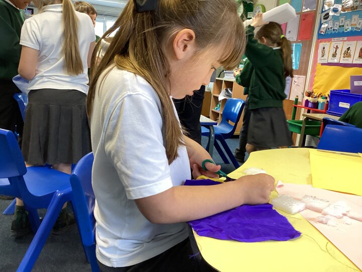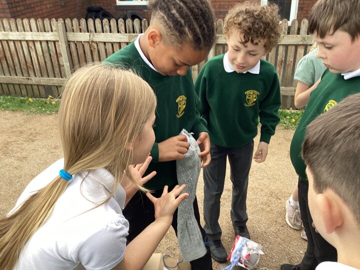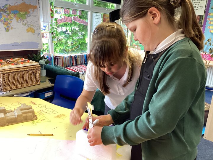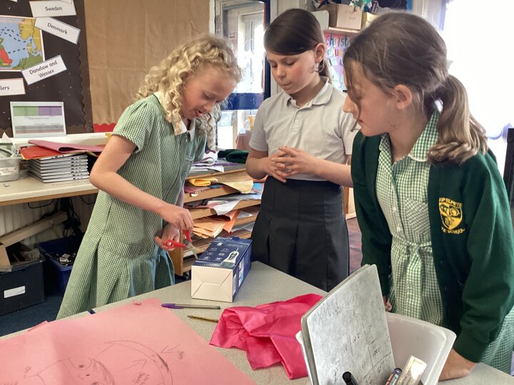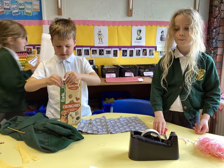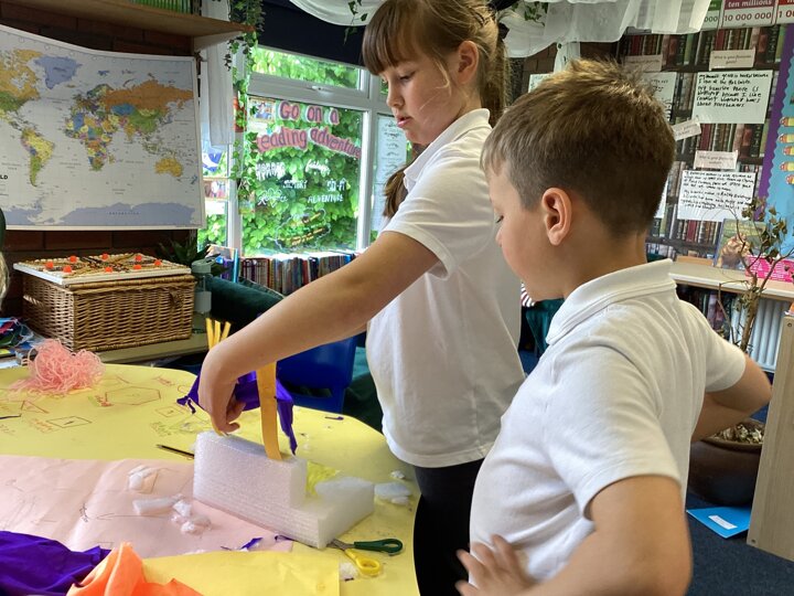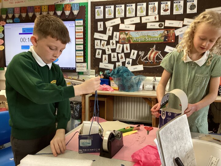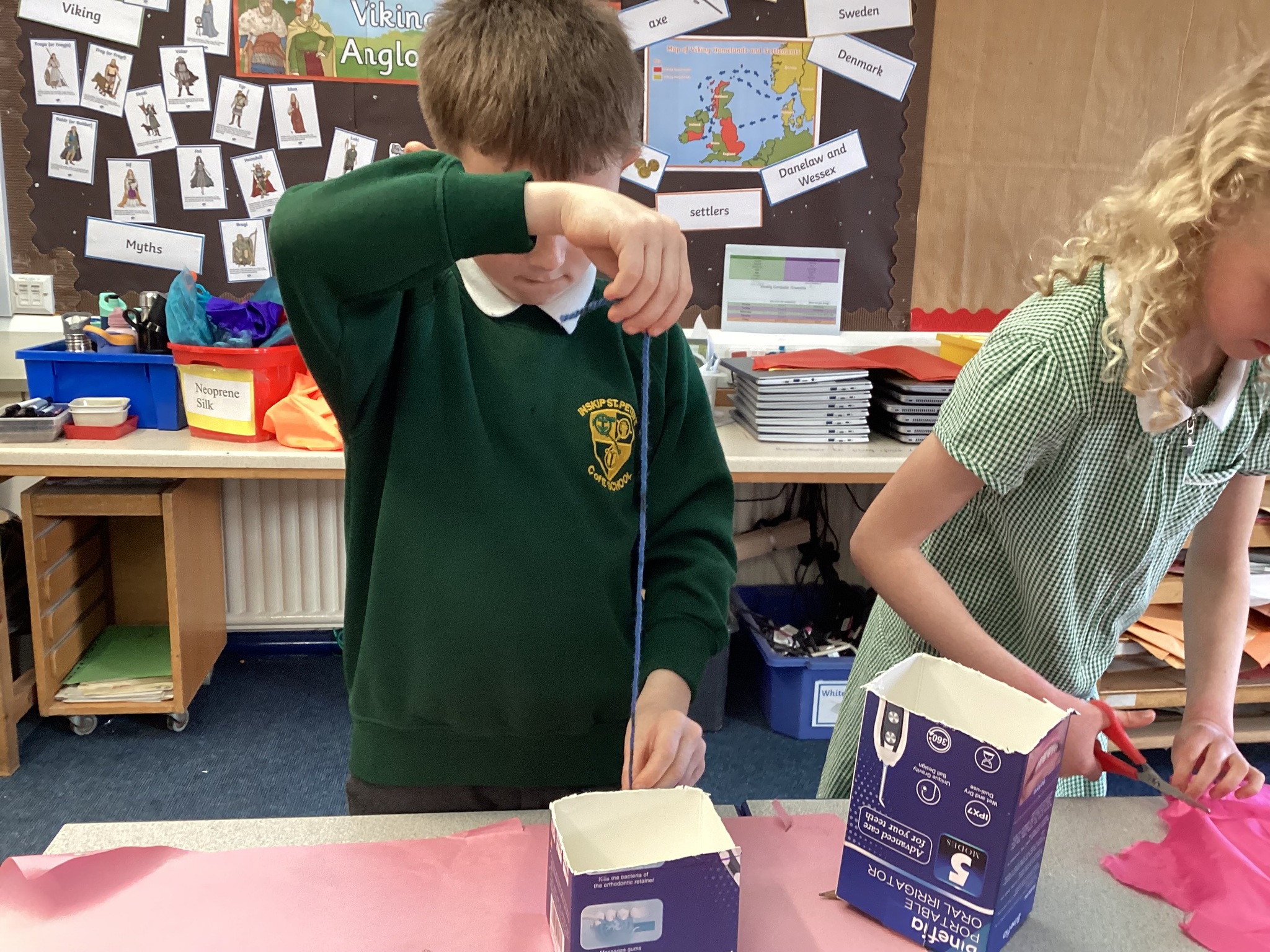 Children used their science knowledge of air resistance and drag to help them create a design that would slow down their egg before it hit the ground. Children also used their DT knowledge of construction to assure that the egg had a good structure to sit inside that would protect them.