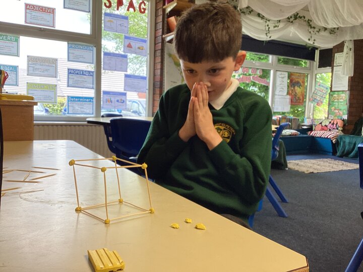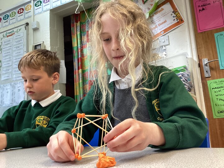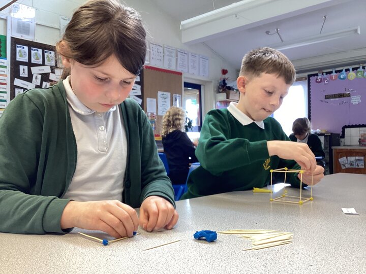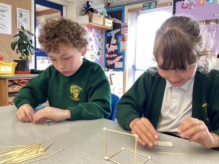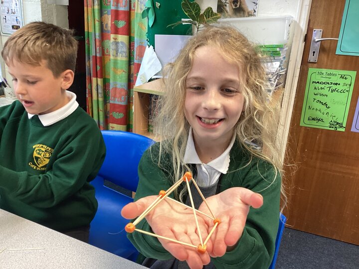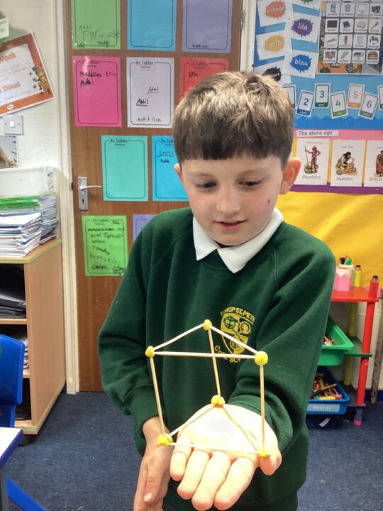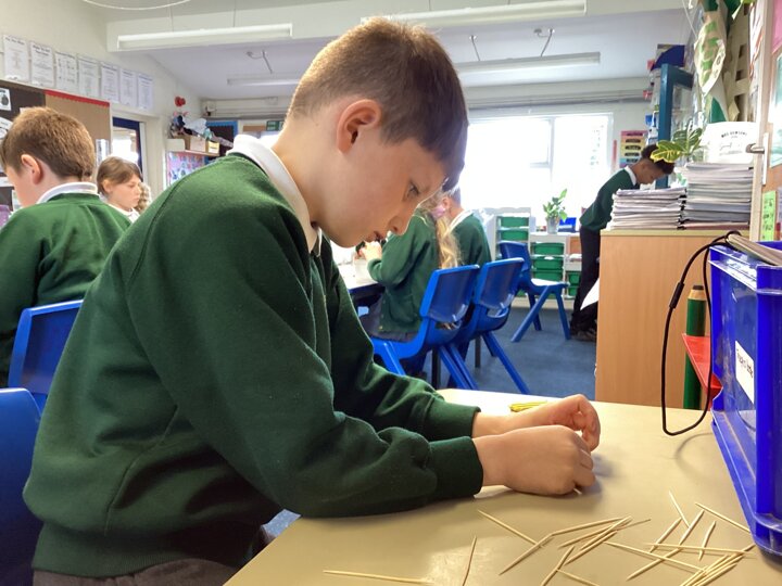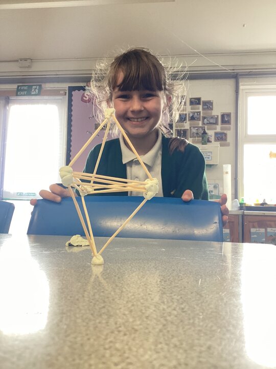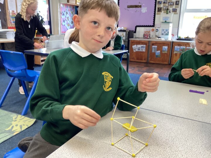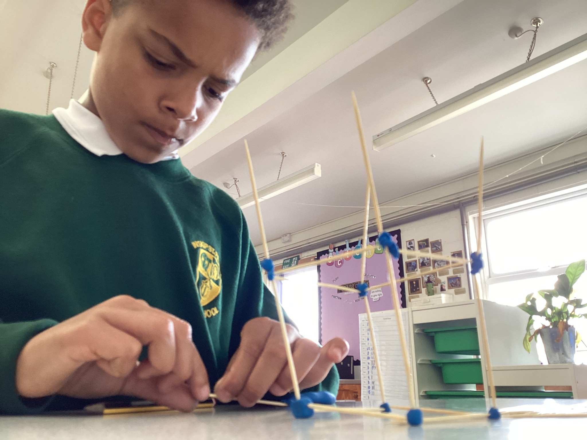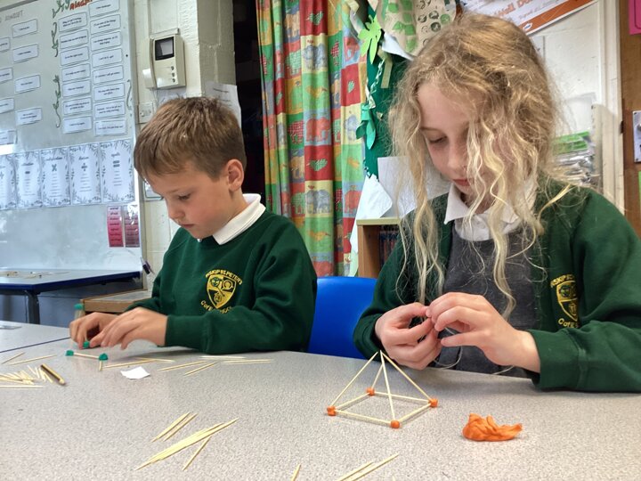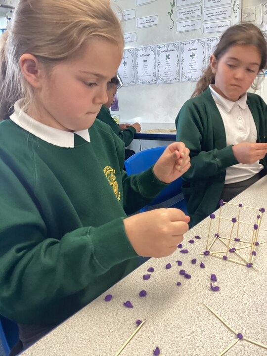 To begin with, children were given modelling clay and cocktail sticks to try and create some basic 3D shapes. They began with triangular prisms, cubes, tetrahedrons and square based pyramids. Eventually, children began to stack these on top of one another to create new structures and shapes. We experimented with which shapes were the strongest and how we could reinforce shapes to be sturdier.