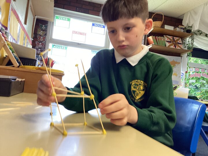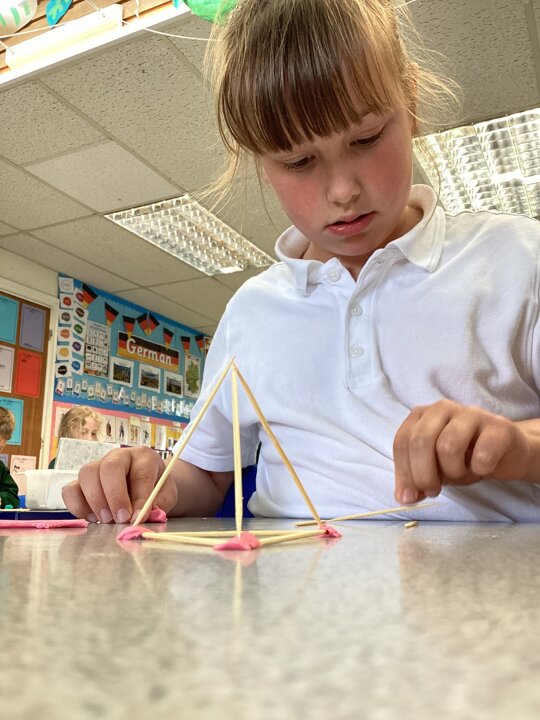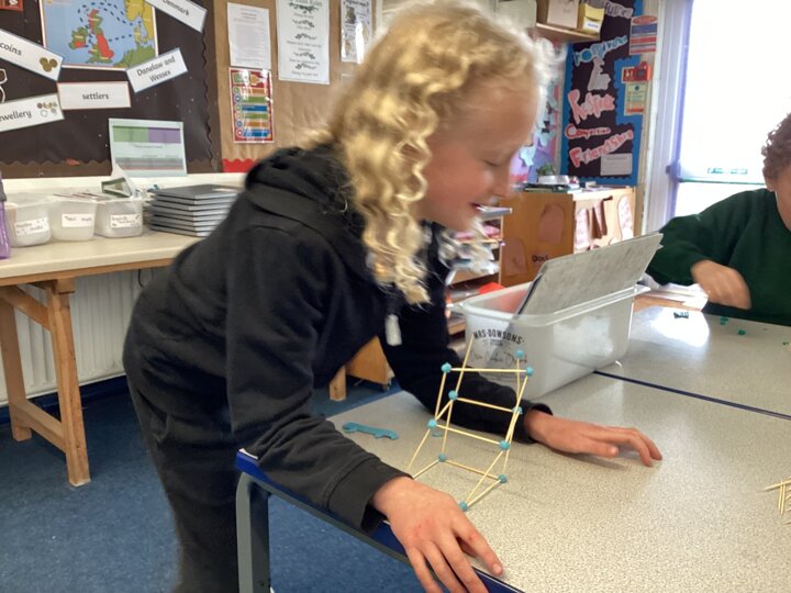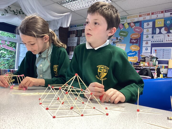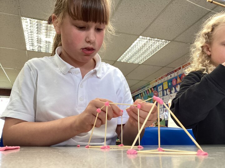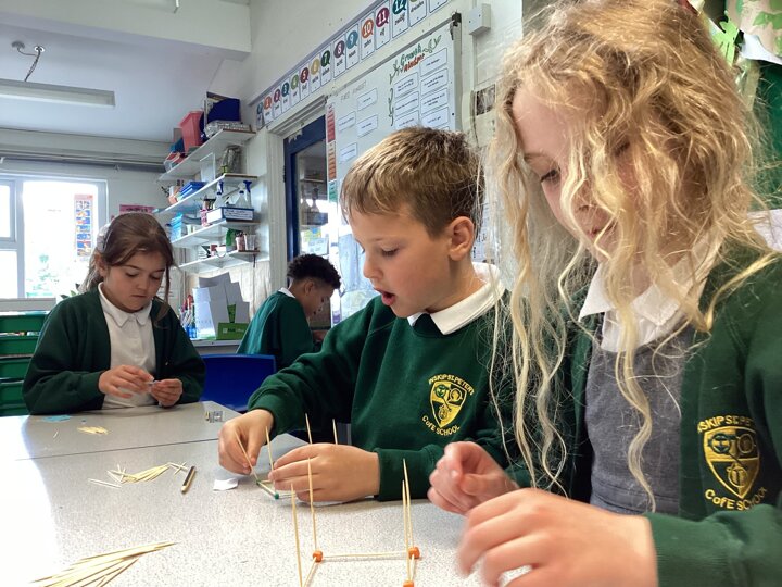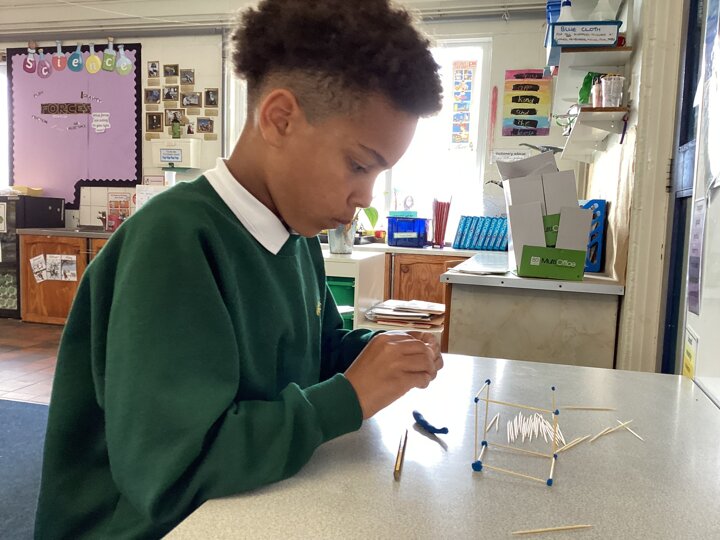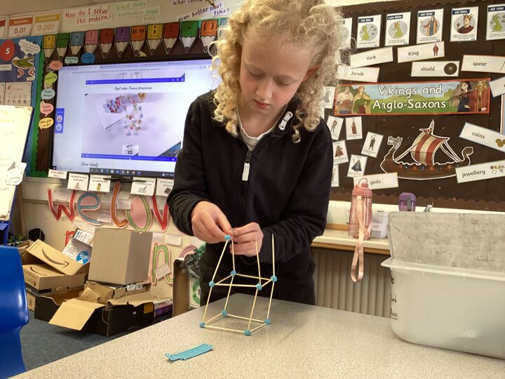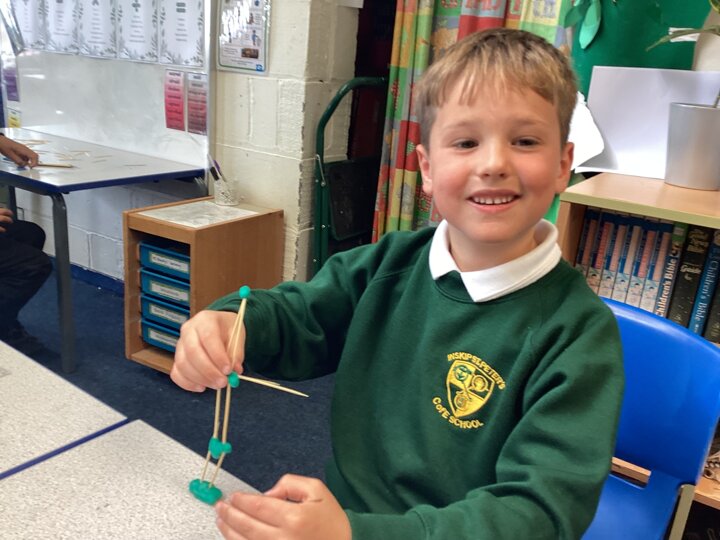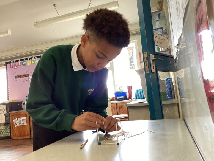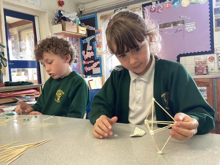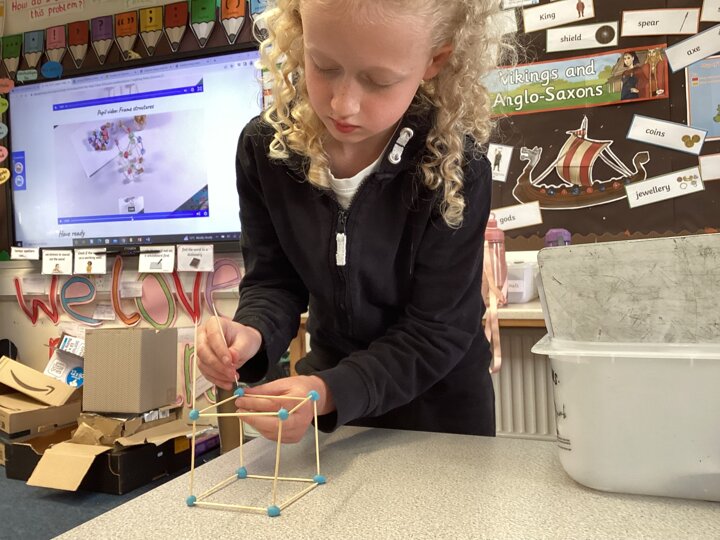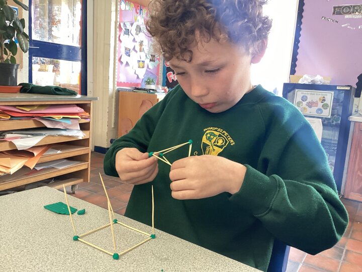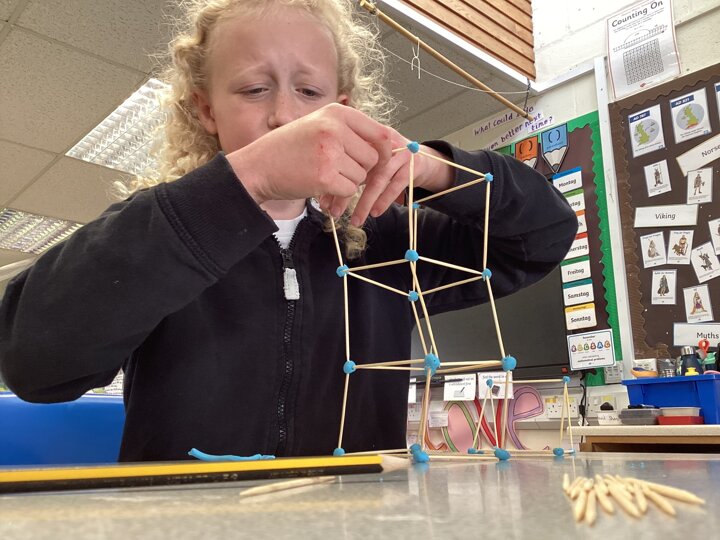 To begin with, children were given modelling clay and cocktail sticks to try and create some basic 3D shapes. They began with triangular prisms, cubes, tetrahedrons and square based pyramids. Eventually, children began to stack these on top of one another to create new structures and shapes. We experimented with which shapes were the strongest and how we could reinforce shapes to be sturdier.