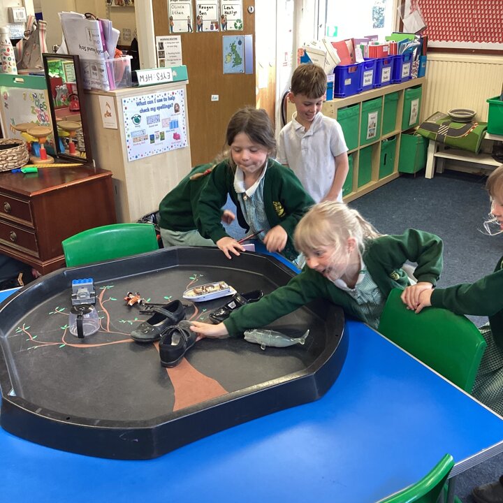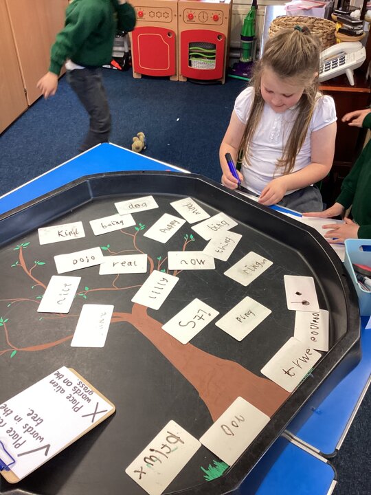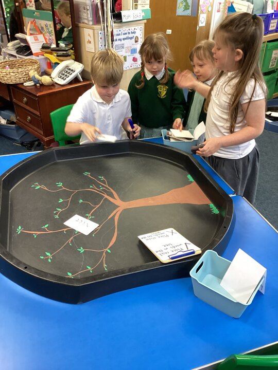 We have created our own kites, asked questions about the story using question words, retold the story so far to our friends, used drama to represent the various things that went up into the tree, drawn incredible pictures of the tree filled with things, made predictions of how the problem might be solved and enjoyed various activities involving getting numbers/words/items being stuck in a tree…