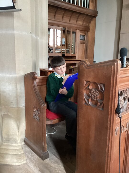 Inside, children found features such as the lectern, the pews and the pulpit to discuss. The children did incredibly well at discussing features in the church and had lots of mature observations to talk about.