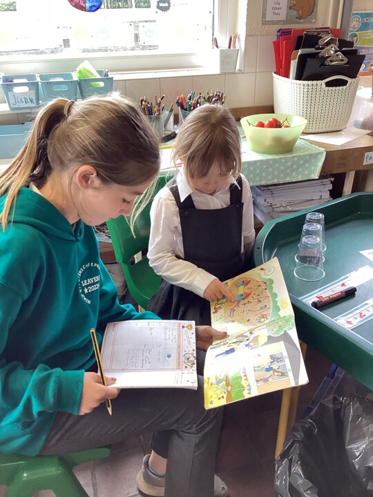 The Year 6s visited Lower School this afternoon to support the children with their reading skills. They listened to them read their home reading books, wrote in their reading records and then spent time practising writing together. Enjoy looking at the very cute photos!