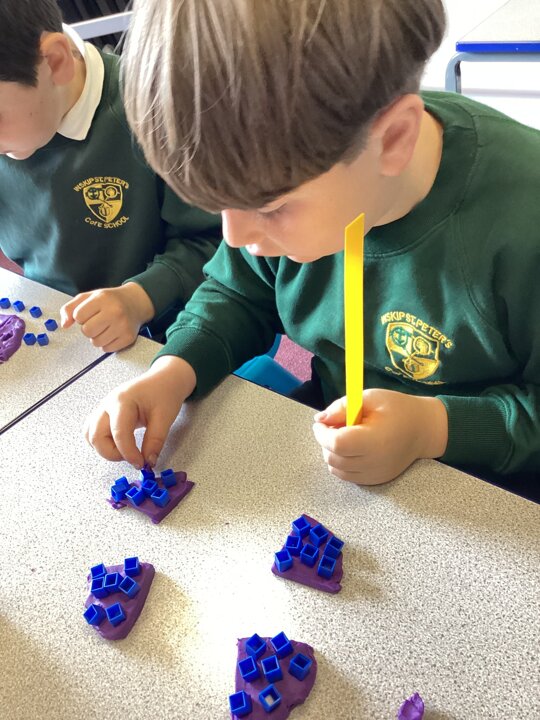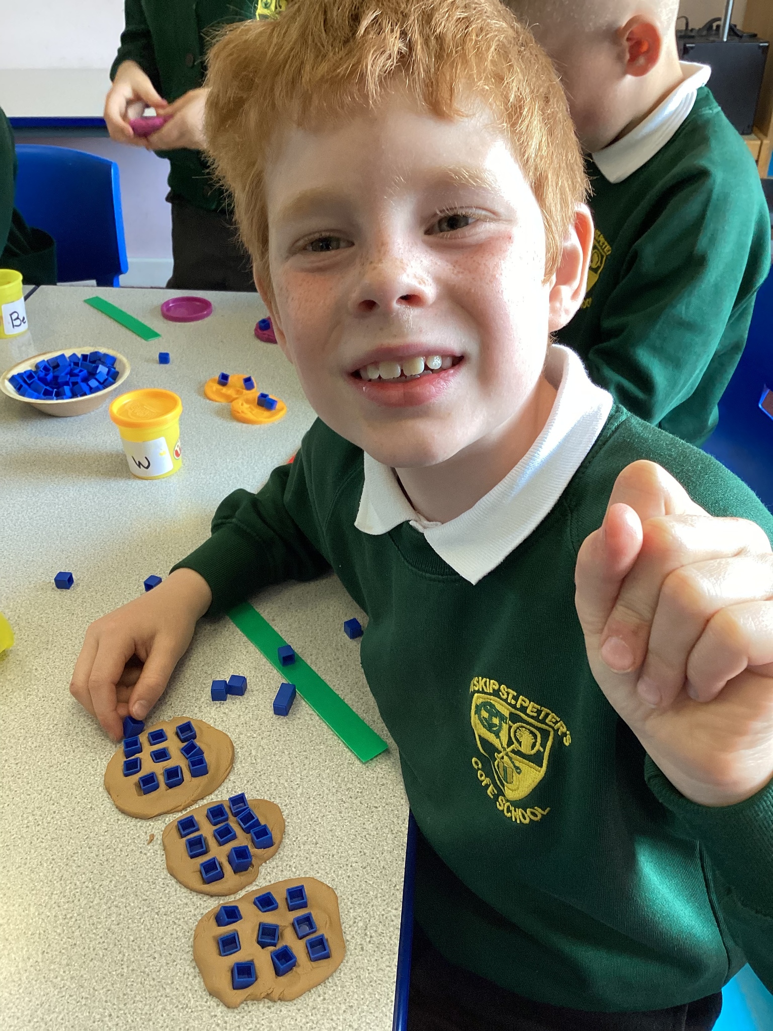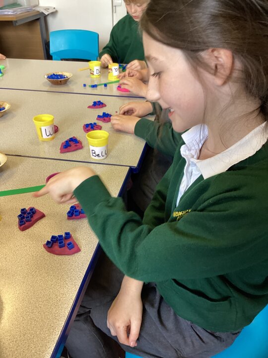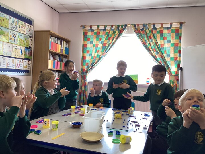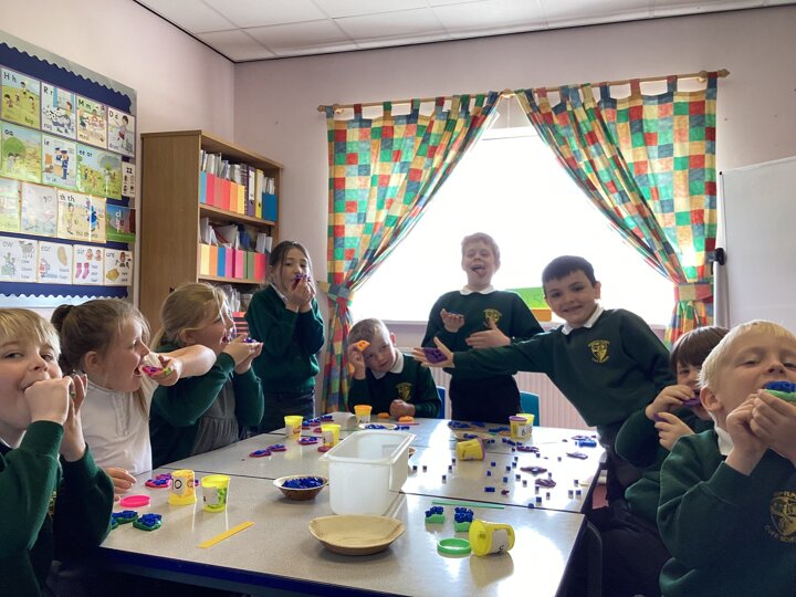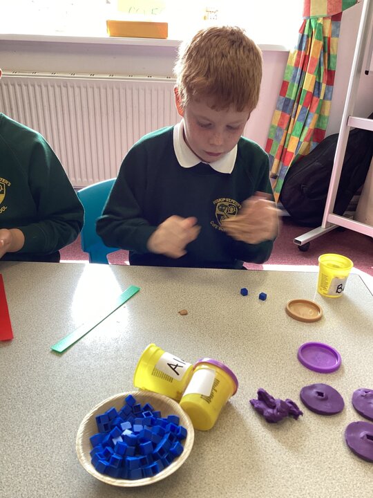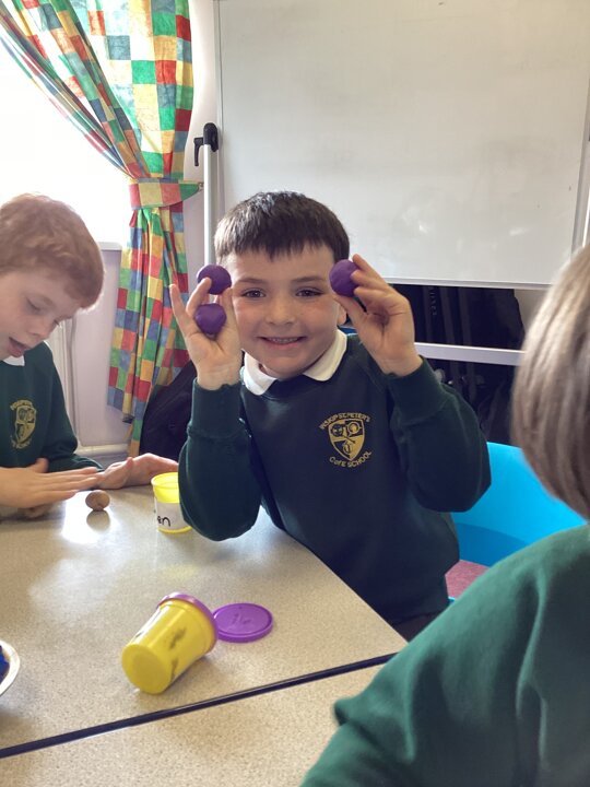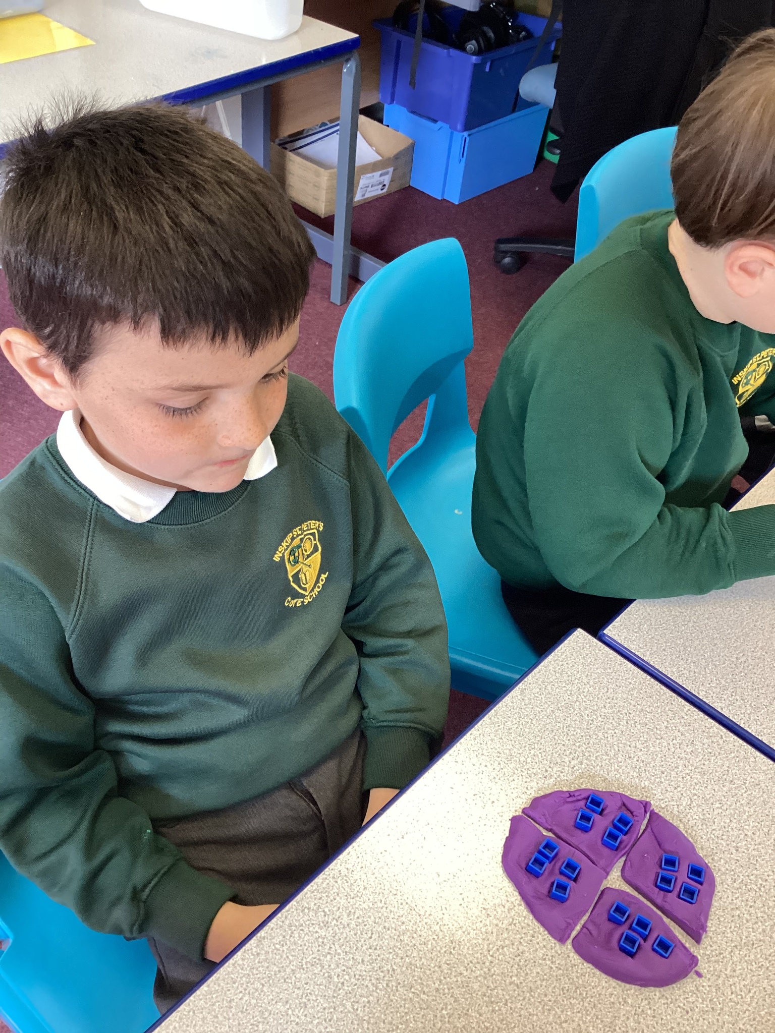 Year 2 did a super job of applying their multiplication and division facts to check the toppings would work (eg 15 ‘chocolate chips’ would not work equally on a pizza cut into quarters but would if it was cut into thirds).