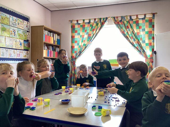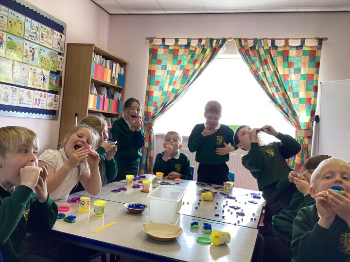 They could talk about how many toppings were on 1/3, 2/3, 1/4, 2/4 (or 1/2), 3/4 of their ‘baked goods’ - super ‘baking’ Year 2!