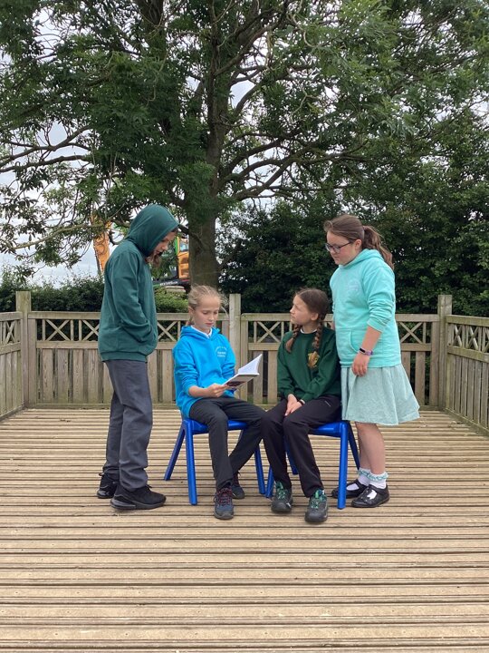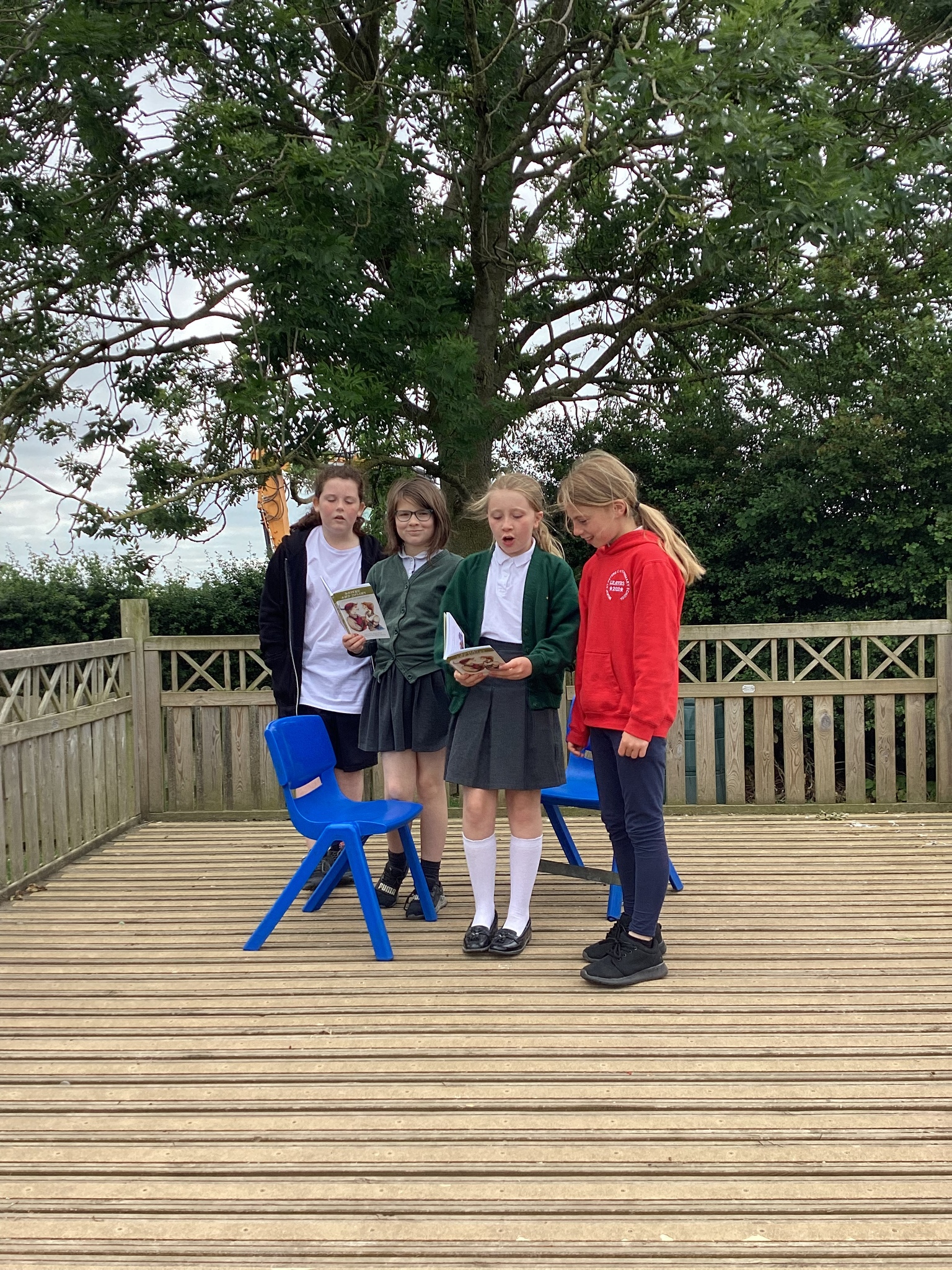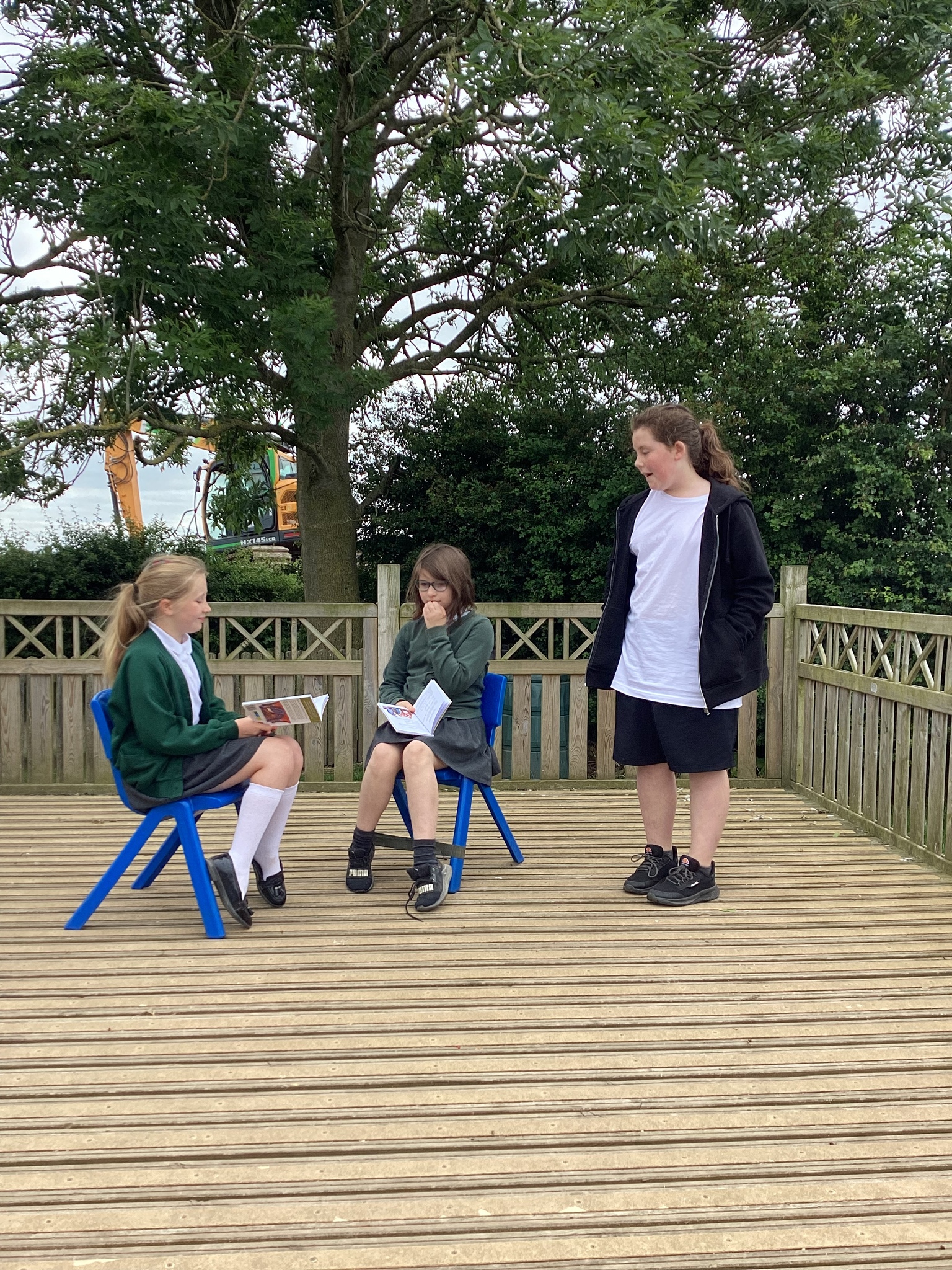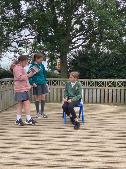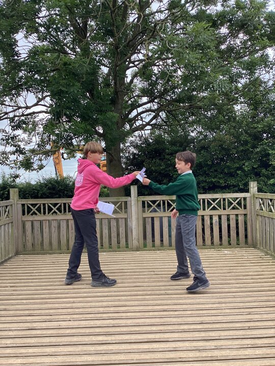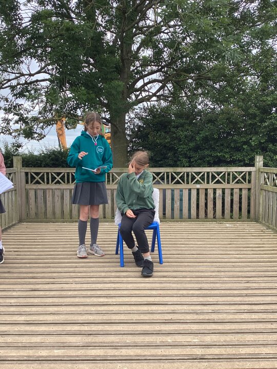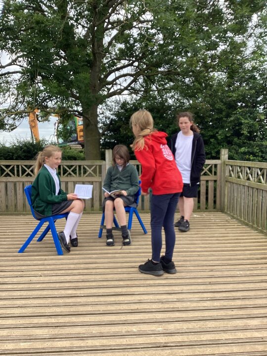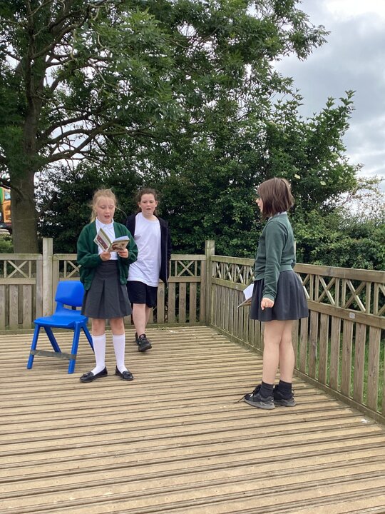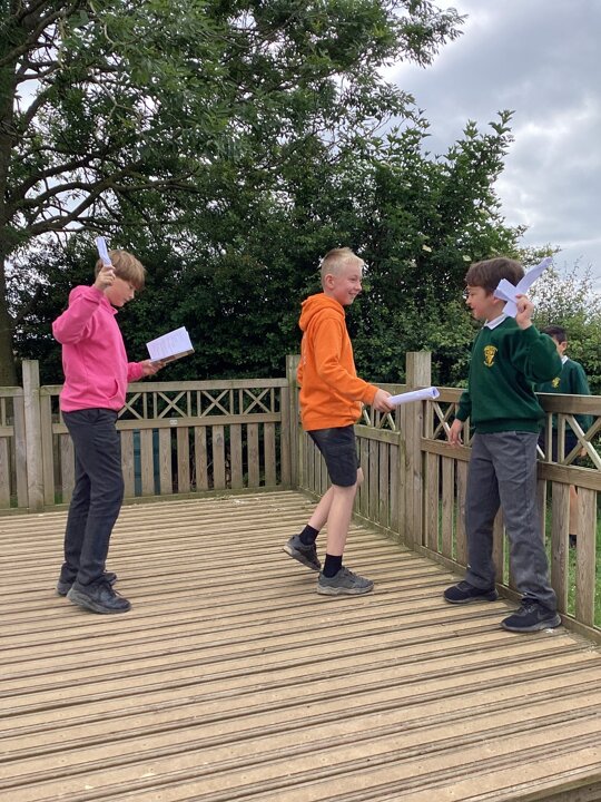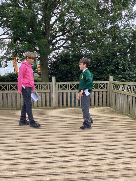 We began a new topic in English this week-Romeo and Juliet by William Shakespeare! The children are already enjoying reading the script and as part of our lesson on Wednesday, the class rehearsed either act 1, scene 1 where the Montagues and Capulets fight in the streets or Act 1, scene 3 where Lady Capulet speaks to Juliet about getting married. After some rehearsals in the classroom, we went outside to the stage on our school field to perform the scenes. This was great fun and really useful for the children to help them understand the characters and the plot. They write some brilliant descriptions of their scenes the next day using a range of multi-clause sentences.