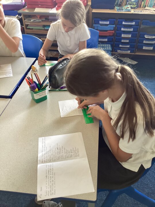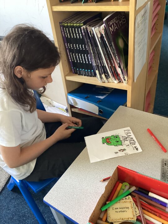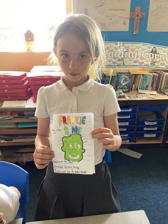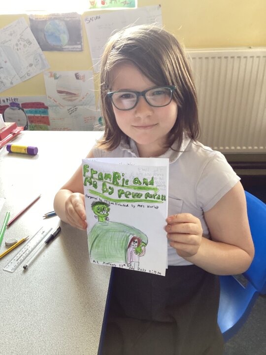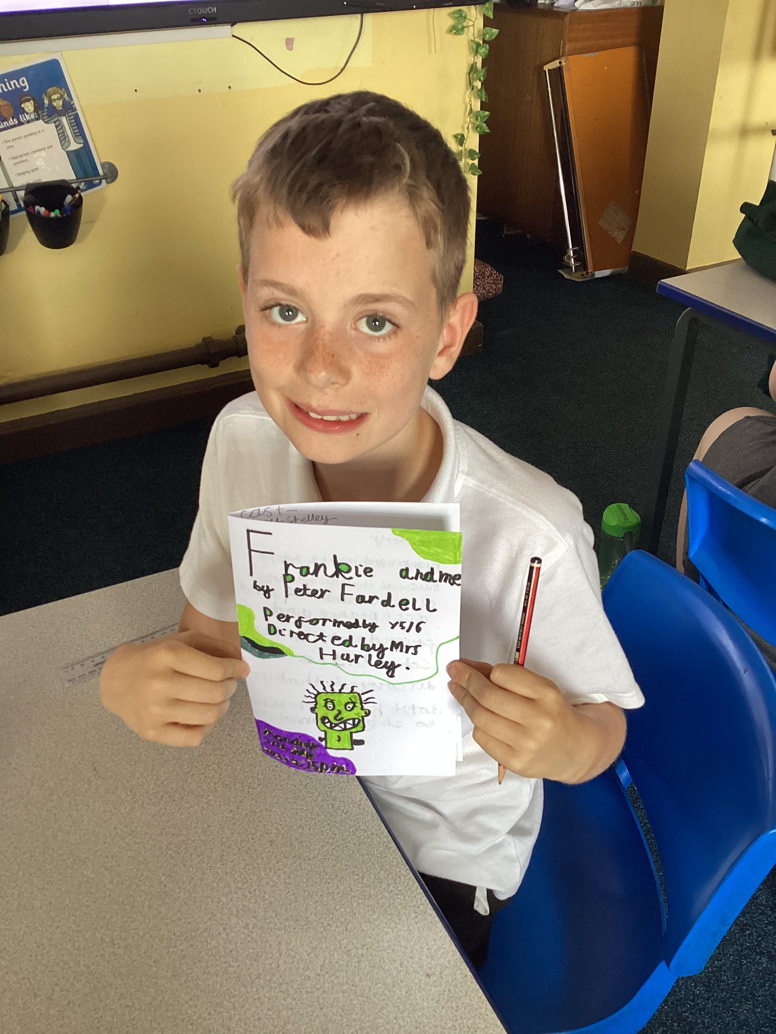 This week, in preparation for our class production of Frankie and Me, the children designed and made programmes for the audiences who will be attending the show. This was more difficult than they thought it would be as there was no room for mistakes here! The writing needed to be clear and spellings correct. The pictures bold and colourful.
