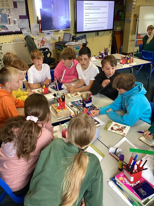 Upper School have been reading and studying Romeo and Juliet in our English lessons. This week we finished the play and discussed the themes that run through the plot. The children then divided into two groups, the Montagues and the Capulets. The objective was to prepare arguments for who was to blame for the death of Romeo and Juliet. The children discussed their ideas in their groups and used a scribe to write them down. Next week, we will hold a court style debate to present the arguments from each family. I will act as judge and jury and decide which family presents the best case.