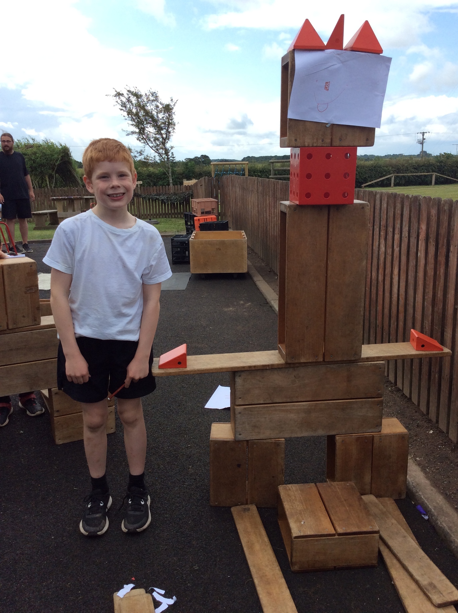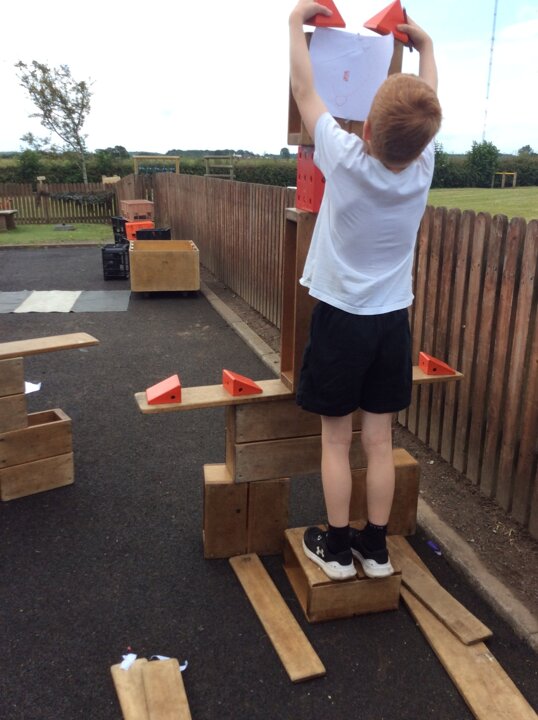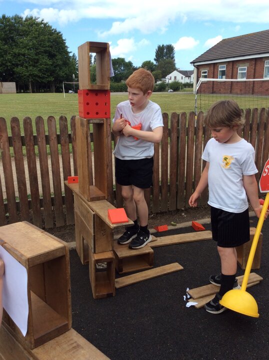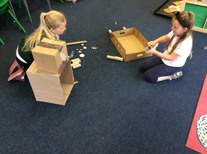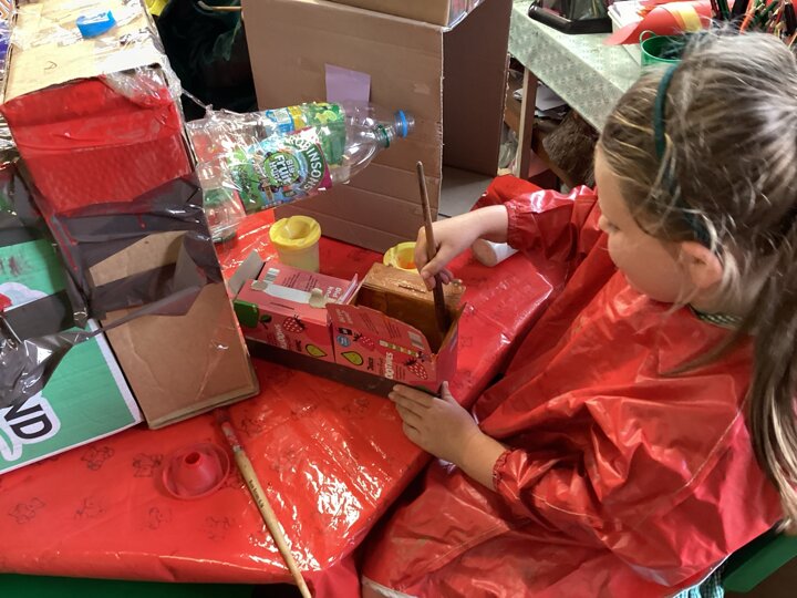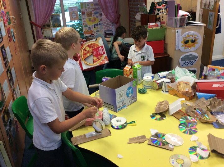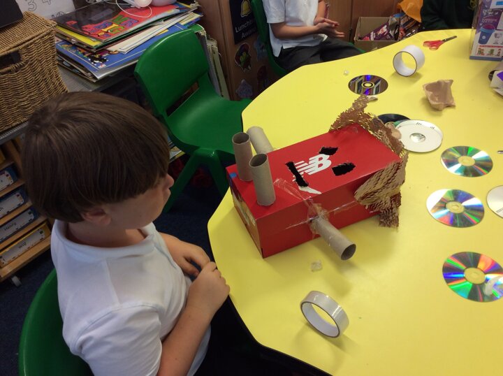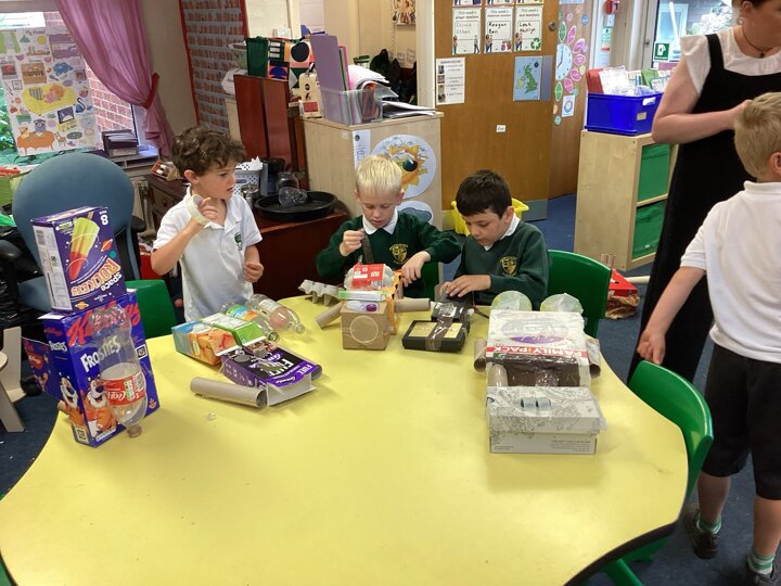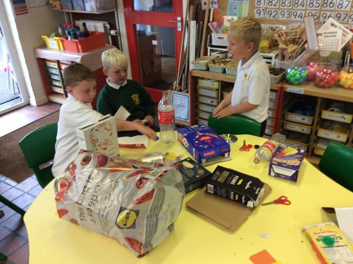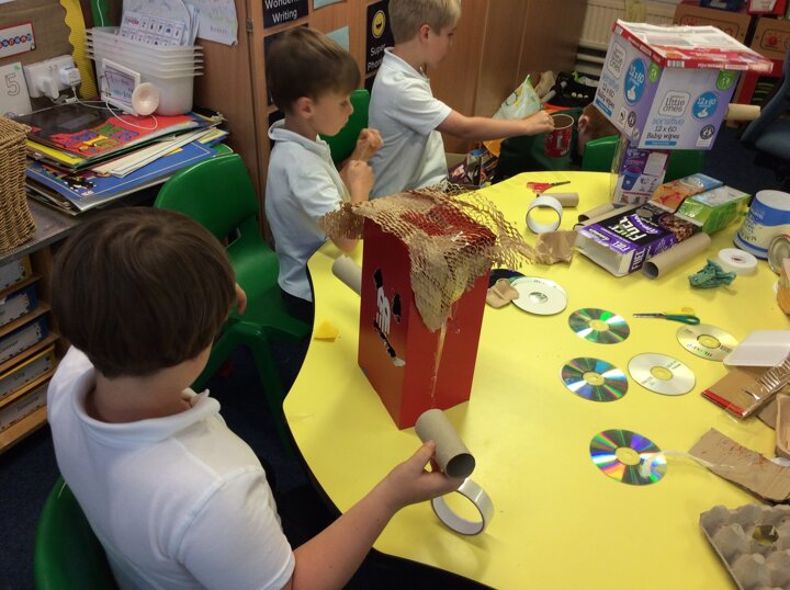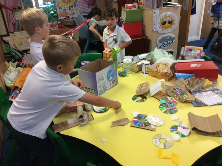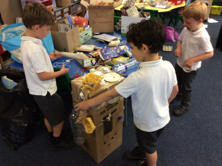 The children have used various pieces of junk and carefully considered how they would attach the pieces and decorate.