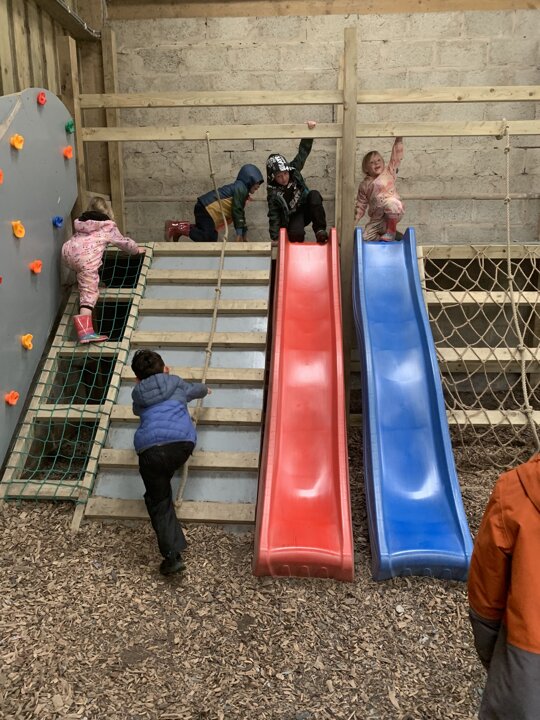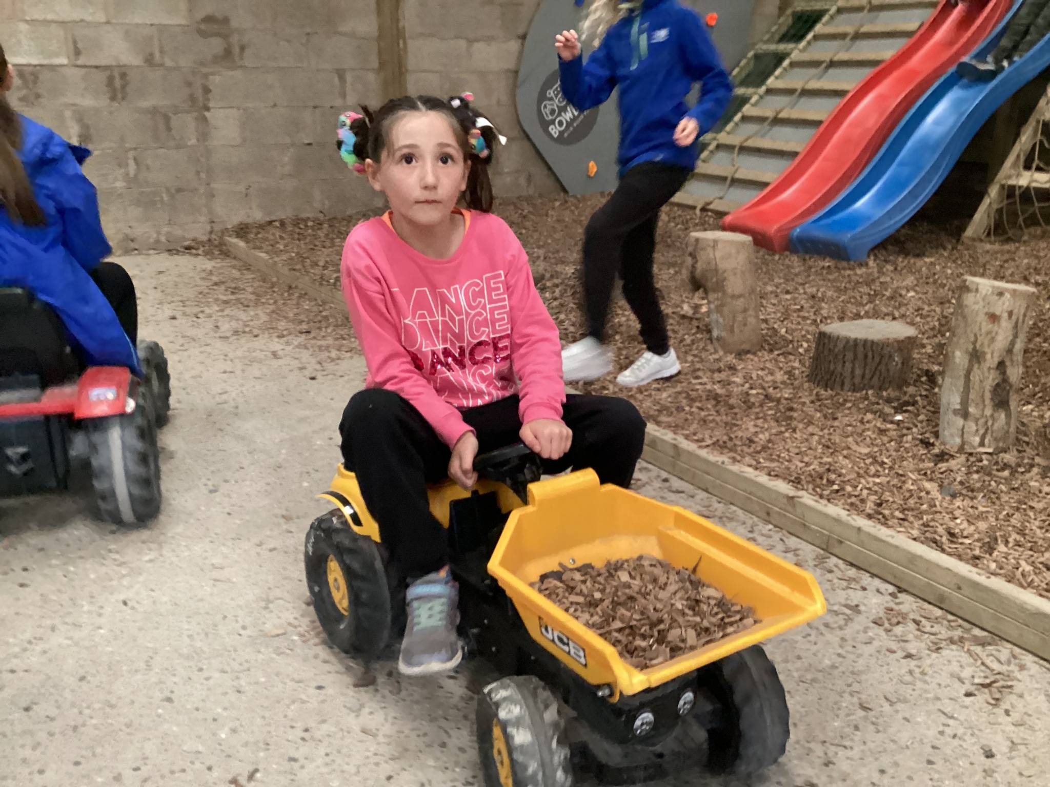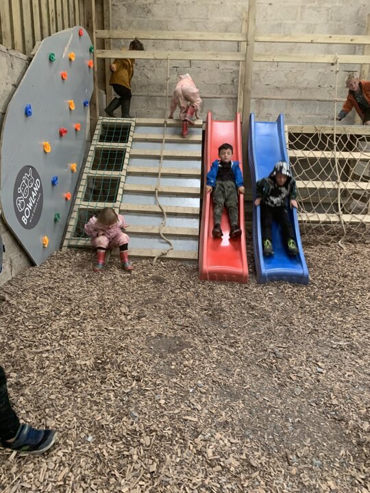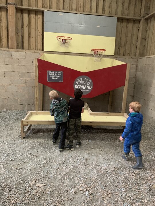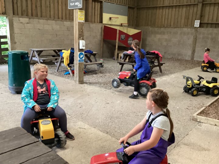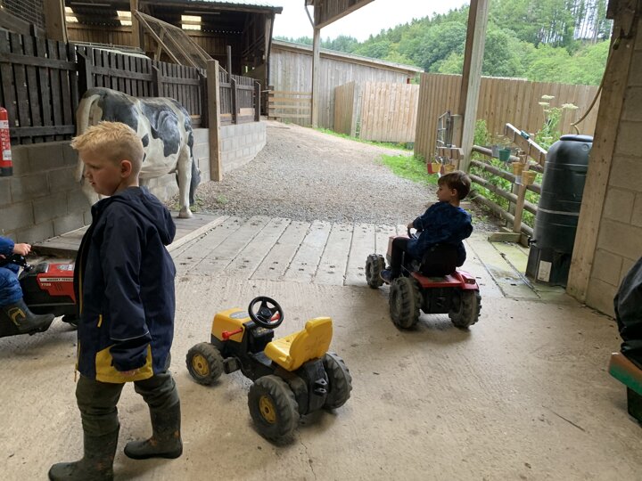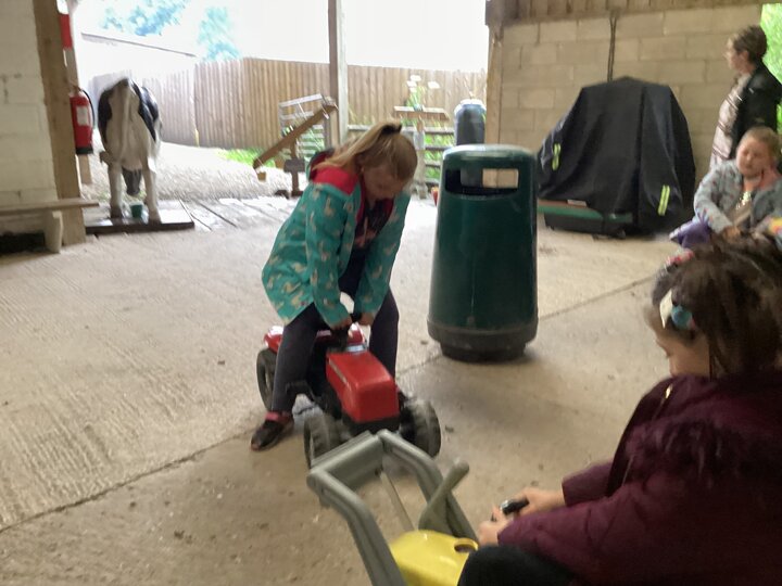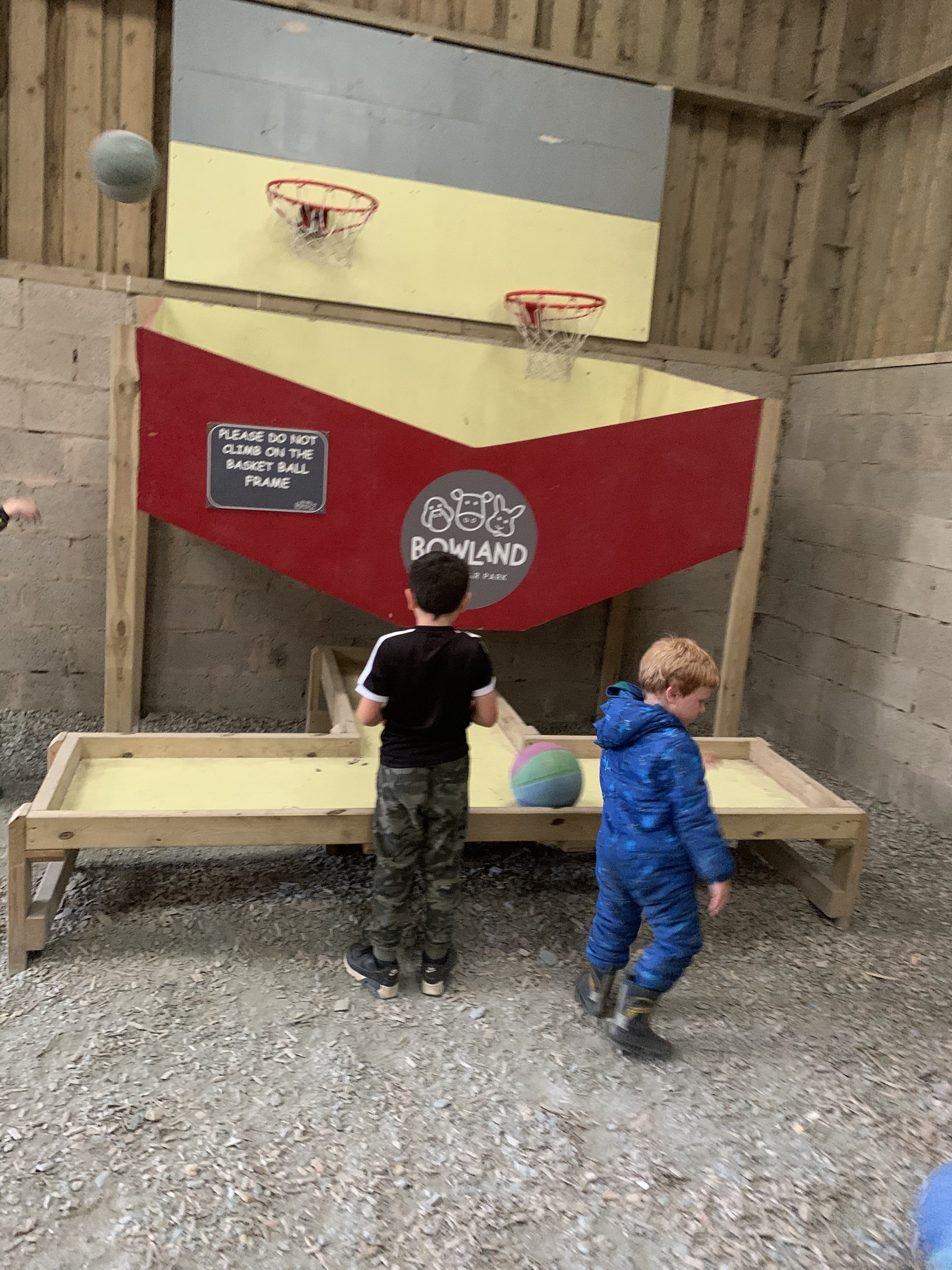 The barn play areas were lots of fun and gave us a welcome shelter from the rain. We rode mine tractors, climbed ropes and played basketball.