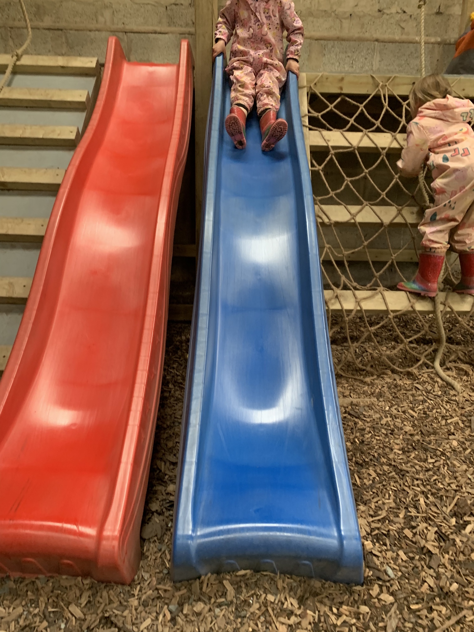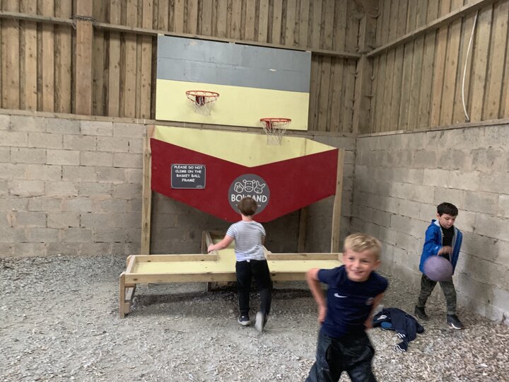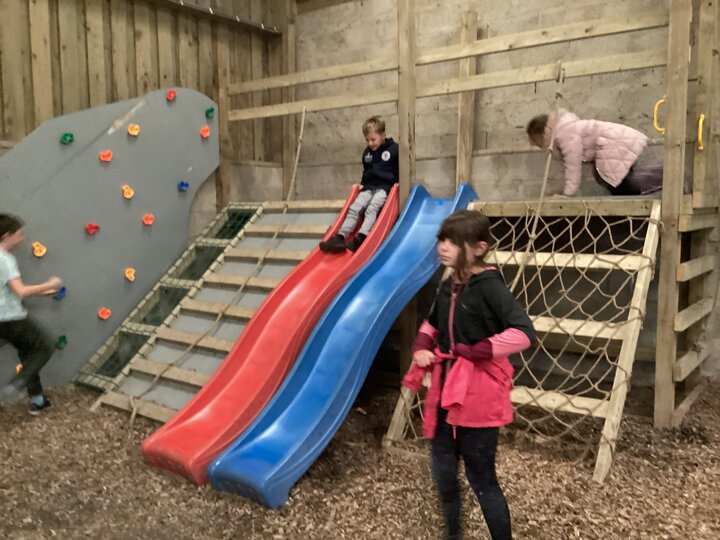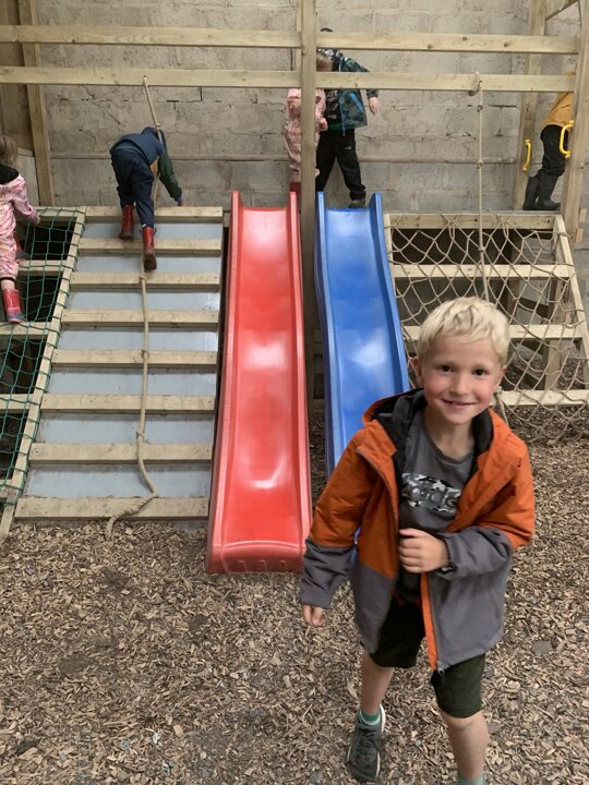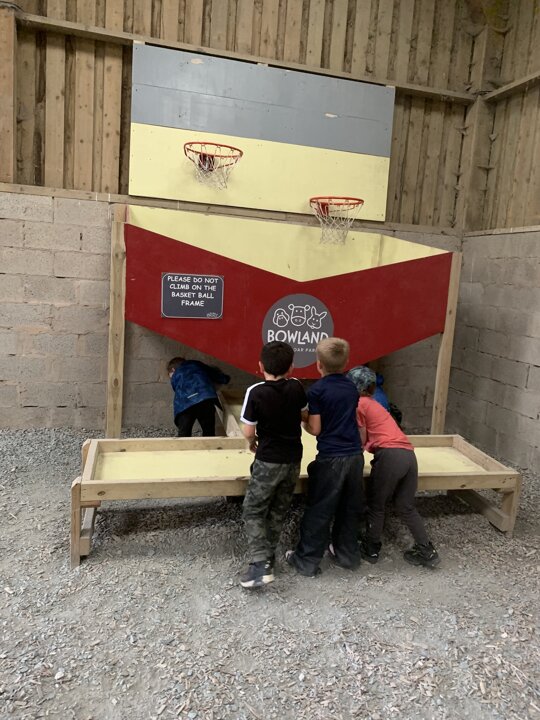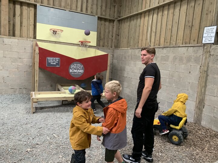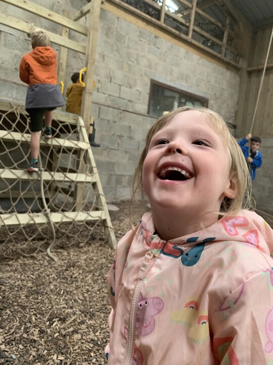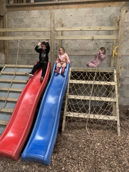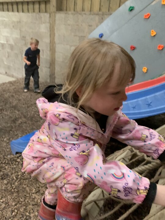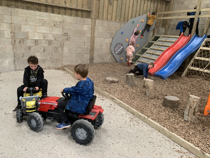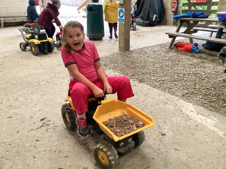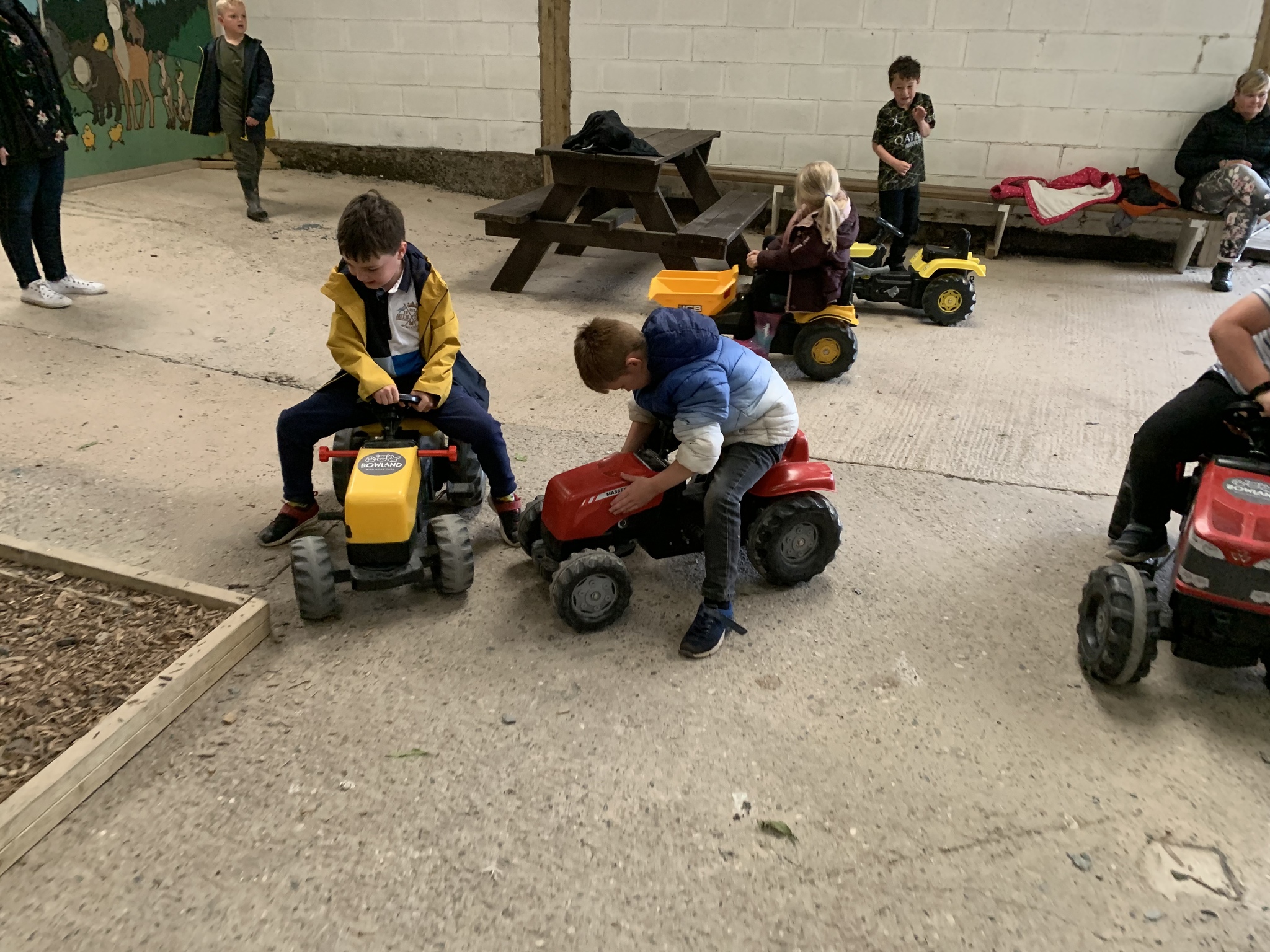 The barn play areas were lots of fun and gave us a welcome shelter from the rain. We rode mine tractors, climbed ropes and played basketball.