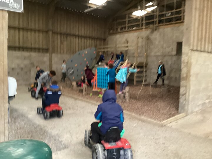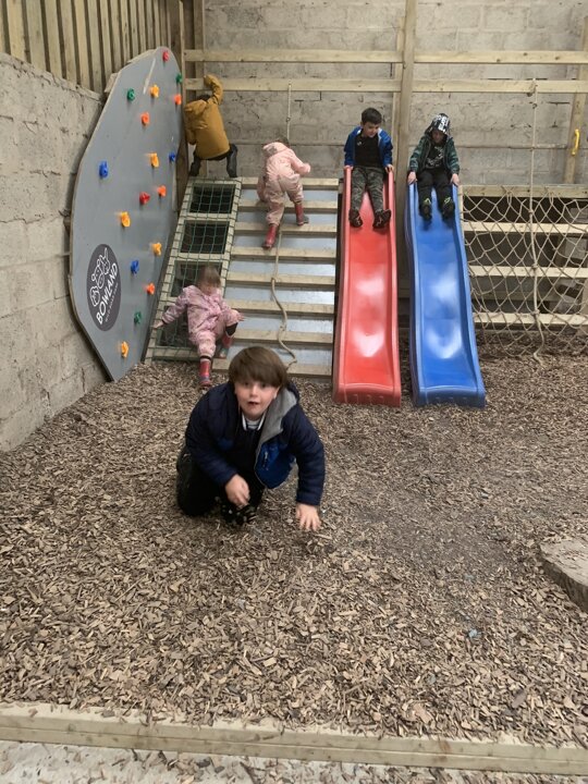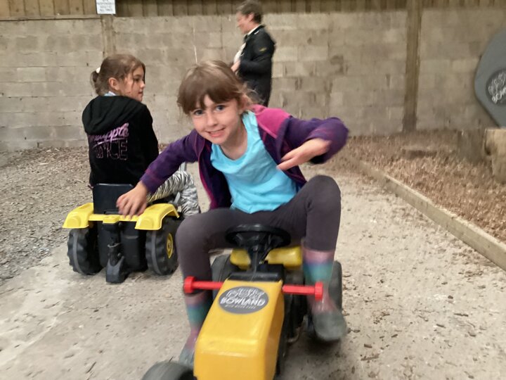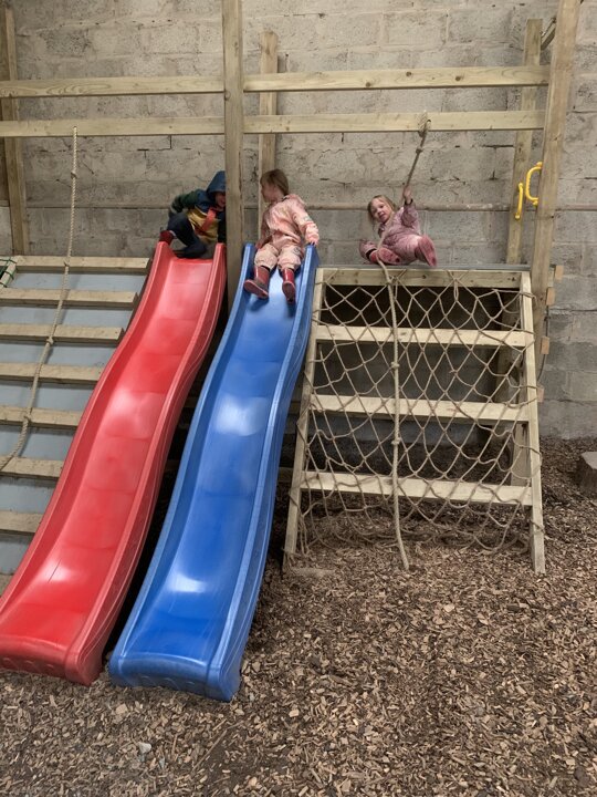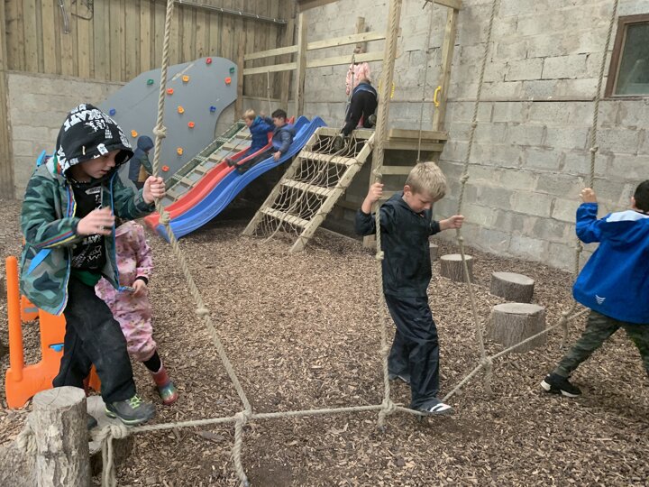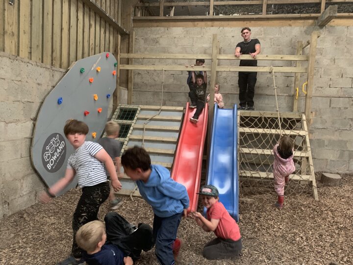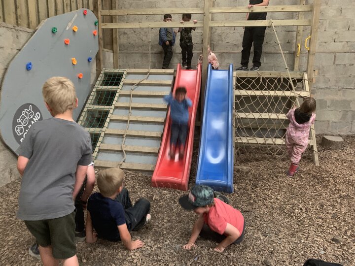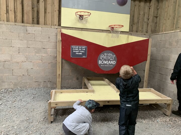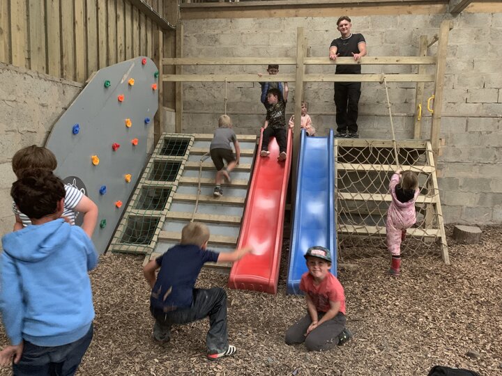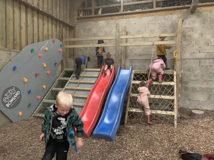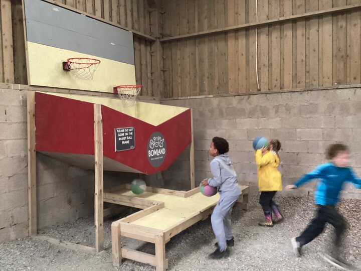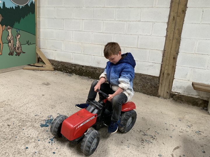 The barn play areas were lots of fun and gave us a welcome shelter from the rain. We rode mine tractors, climbed ropes and played basketball.