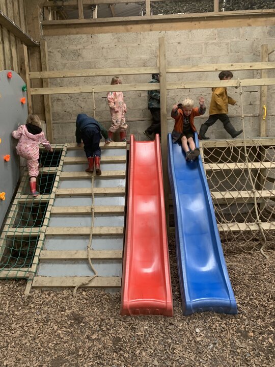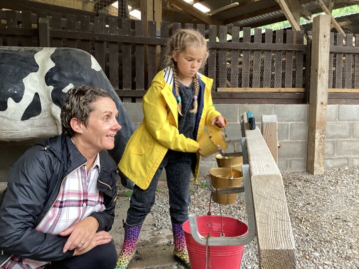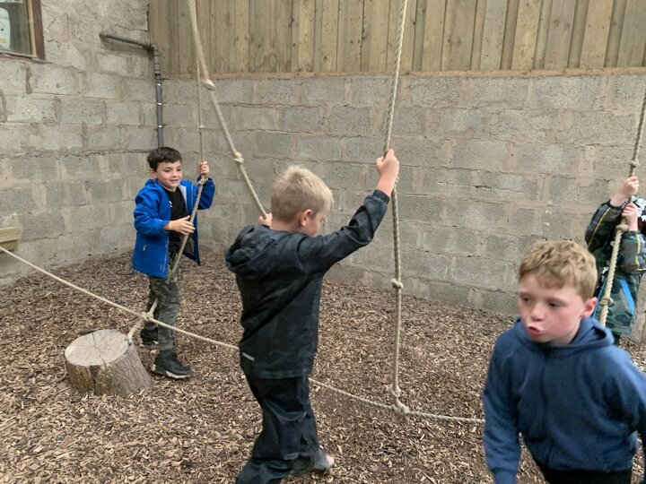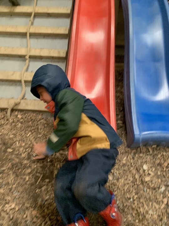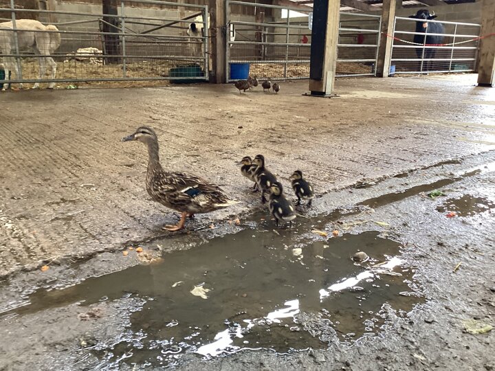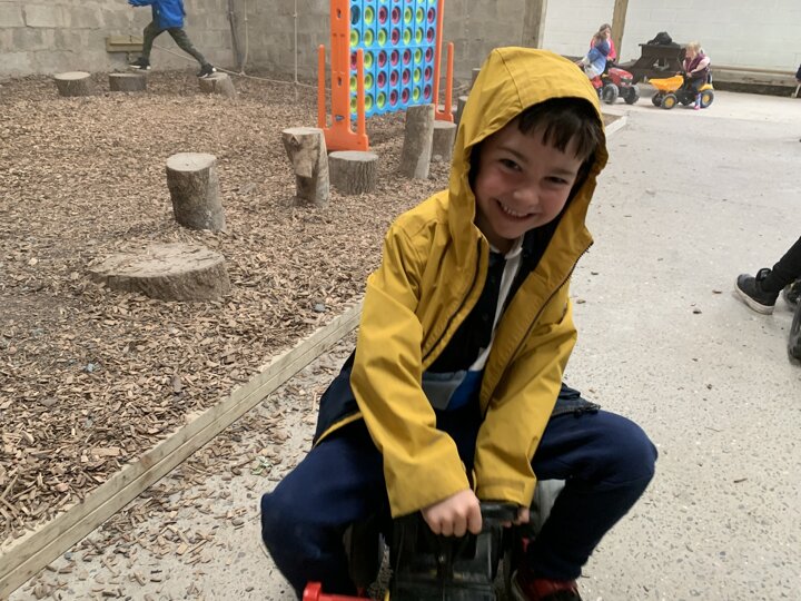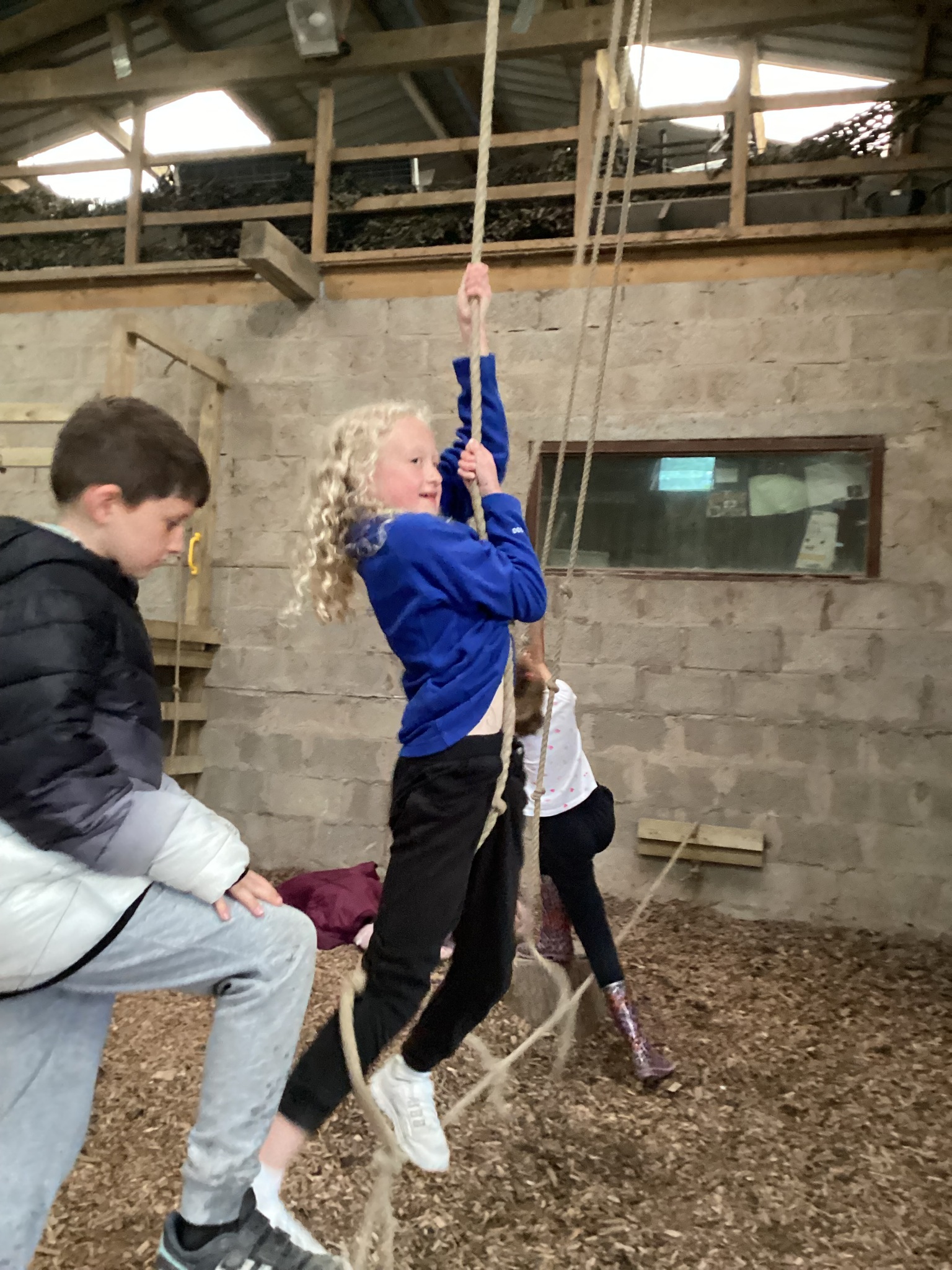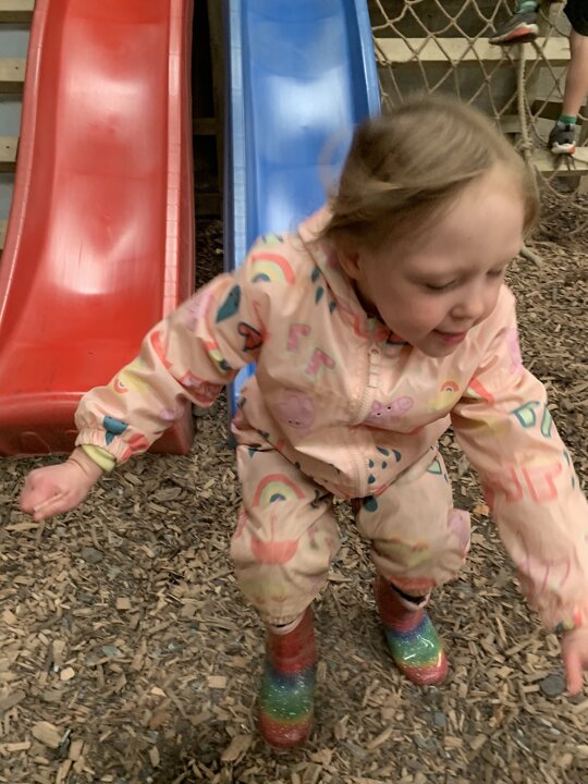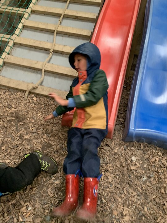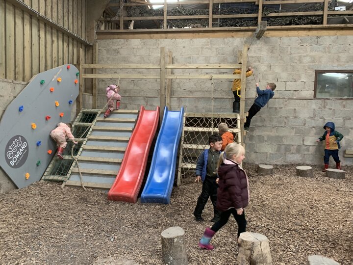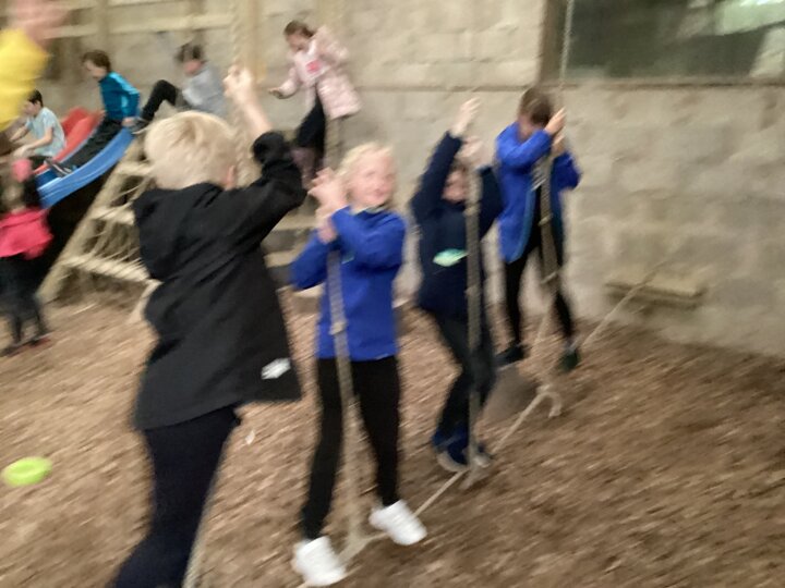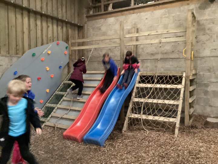 The barn play areas were lots of fun and gave us a welcome shelter from the rain. We rode mine tractors, climbed ropes and played basketball.