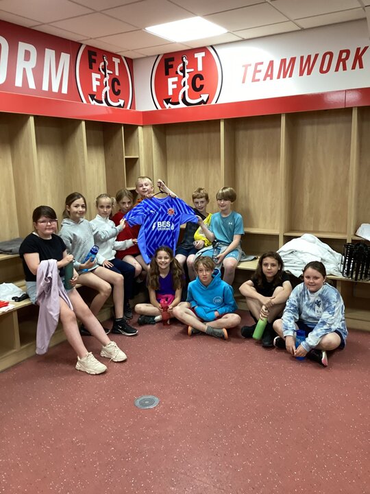 At 12:15pm, we all piled into the Fleetwood FC minibus and headed off for our tour around their club and grounds. We loved sitting in the players seats and holding the 2014 winners trophy. However, the best was yet to come when Corey took us to the training grounds and we were able to have a kick around with some footballs and take part in a kick the ball to the line competition…