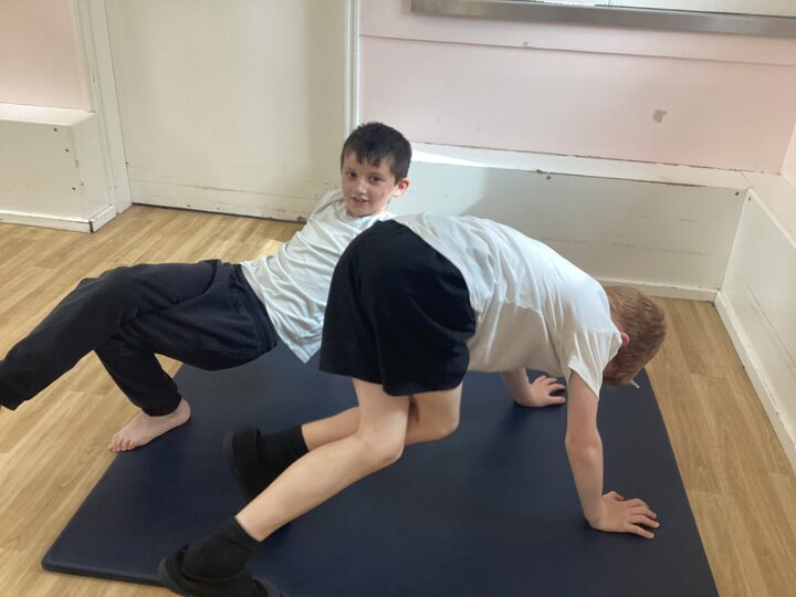 The children worked with a partner to create a sequence of balances with two points, three points and then one point.