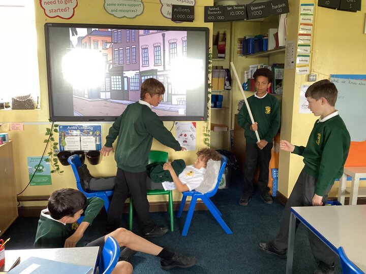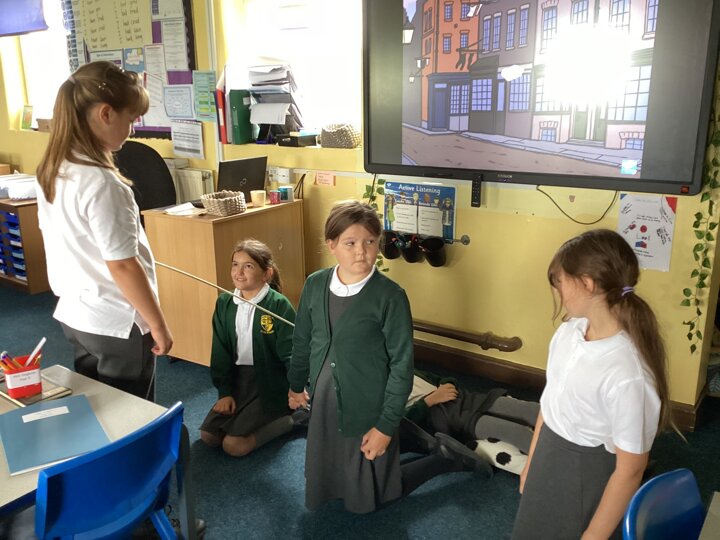 In our English lesson this morning we focused on comprehension of feelings of characters in the text through creating freeze frames of scenes and then waking up the characters to see what they were thinking and feeling at that moment. The children worked so well in groups of 5 to choose their own scene from the text to recreate and they made sure they focused their attention on the emotions felt for their freeze frames. Pictures of these are below…perhaps you could ask your child about who they were in the picture, what that character was feeling and why.