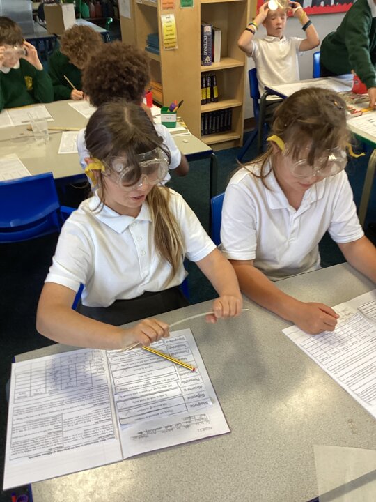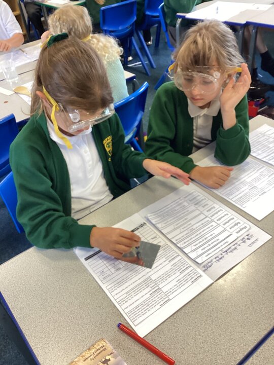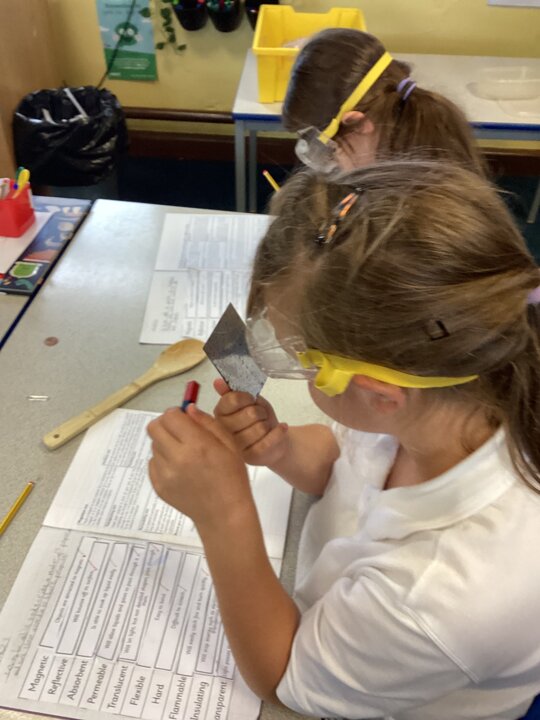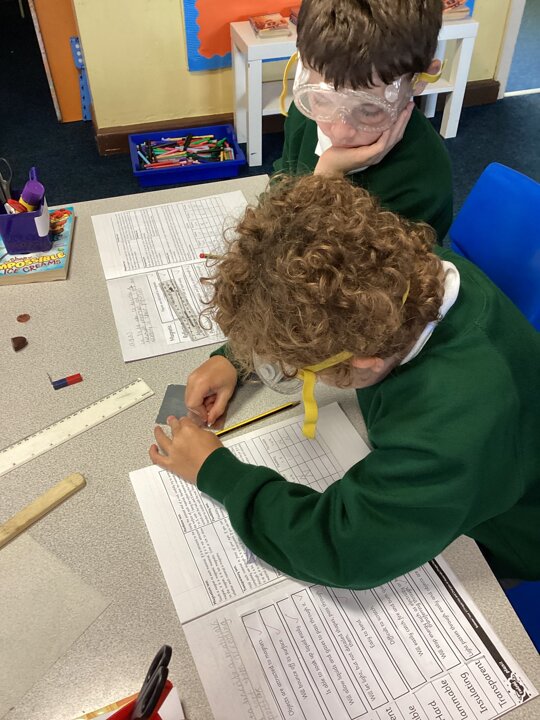 The children loved wearing the goggles to test out the hardness, permeability, flexibility, magnetism and transparency of the materials they were given.
