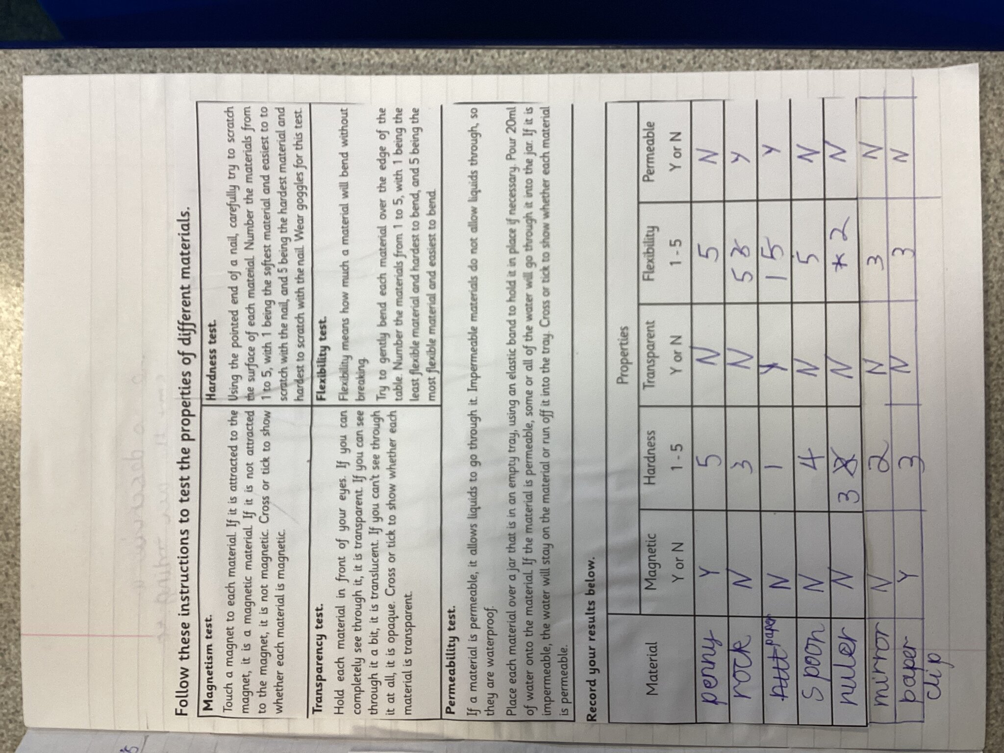 Today the children learnt the new vocabulary we will be using throughout the topic and also carried out a test of the different properties of some given materials such as a wooden spoon, a copper coin, a mirror, a rock, a paper clip, tracing paper and a plastic ruler.