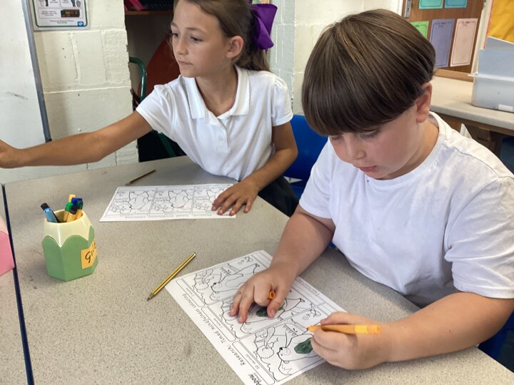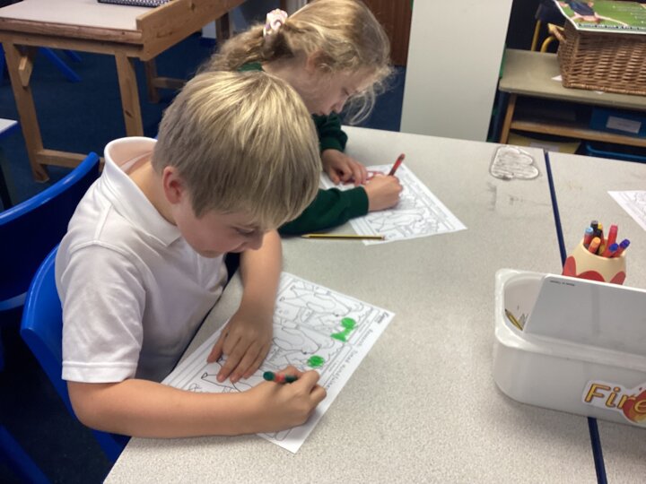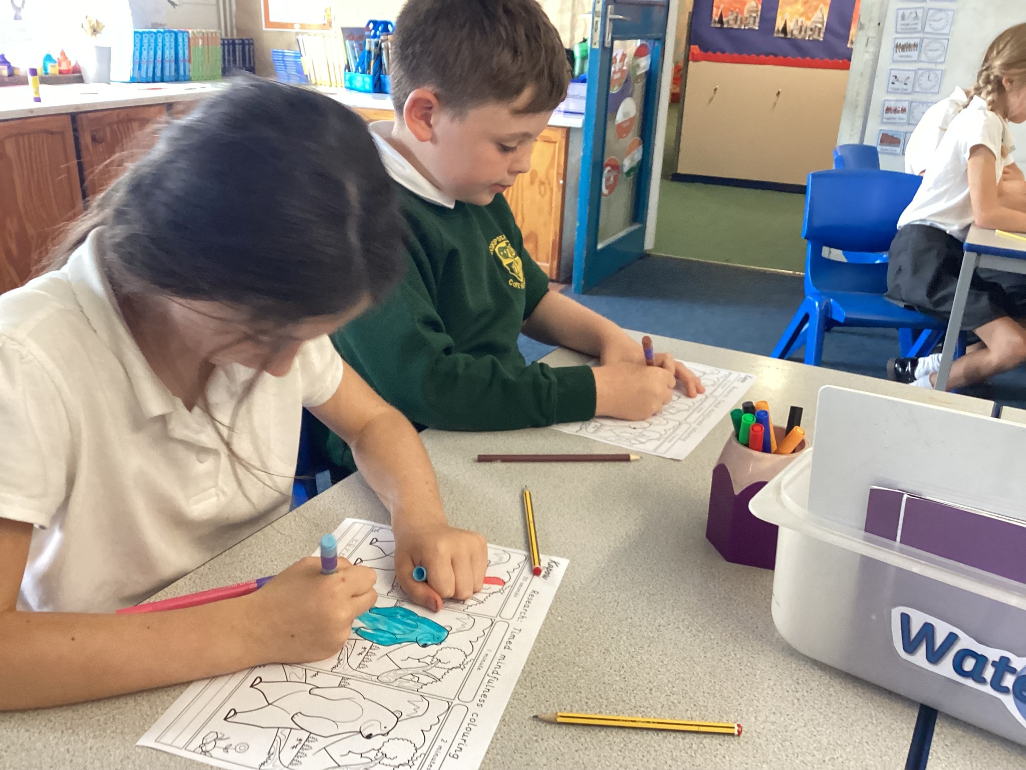 Children were introduced to mindful colouring. We experimented with colouring in the same image, but with different time constraints. First, 30 seconds. Then, 1 minute. Last, 2 minutes. Children discussed how they were calmer and less stressed out with the longer time limit!