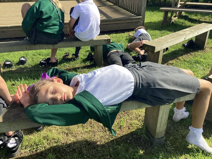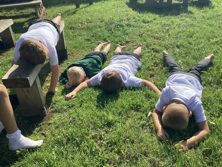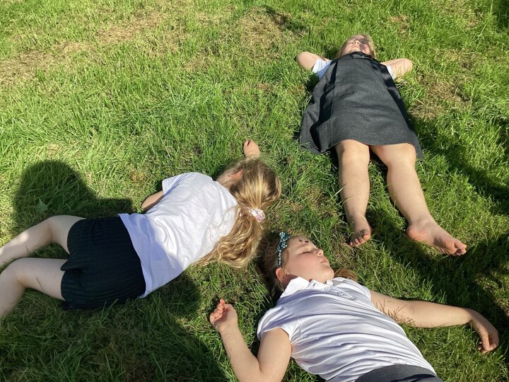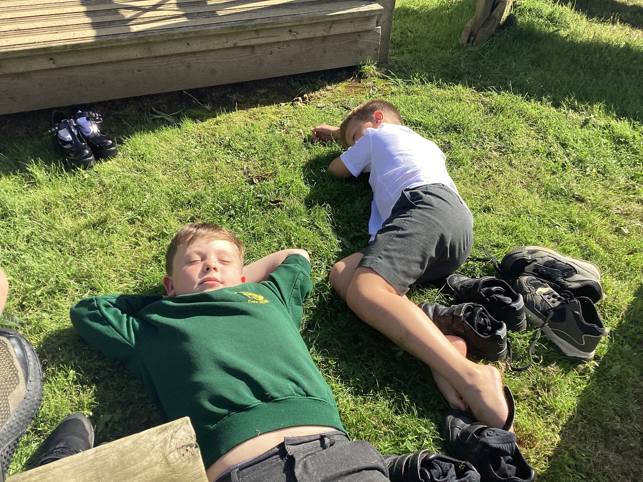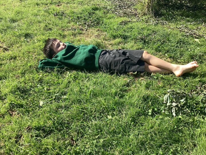 We then tried some mindful breathing outdoors - having quiet time to lie and feel the grass barefoot to think about all of the sensations.
