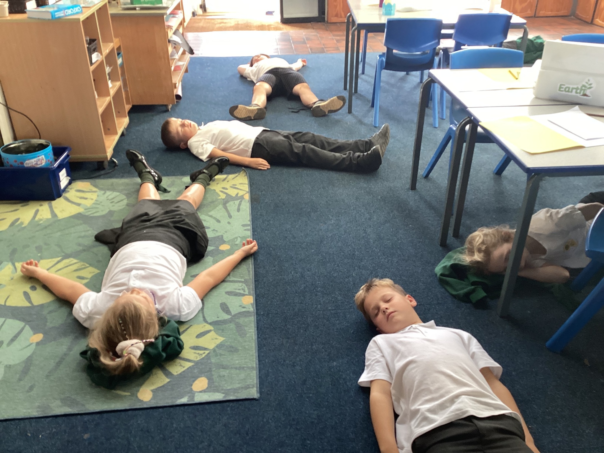 Finally, the children tried some relaxation meditation to music in the classroom.