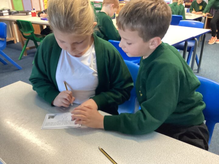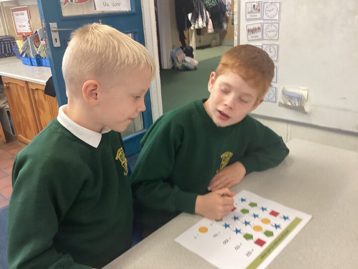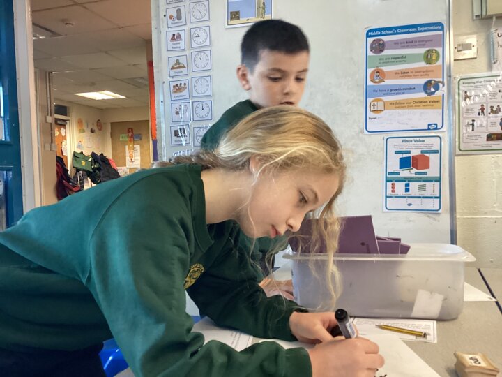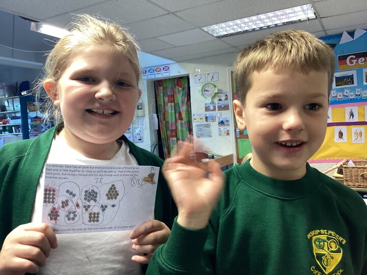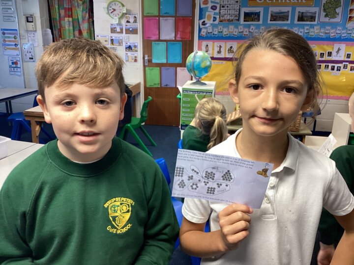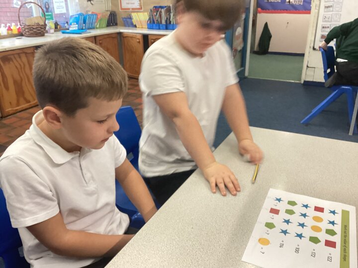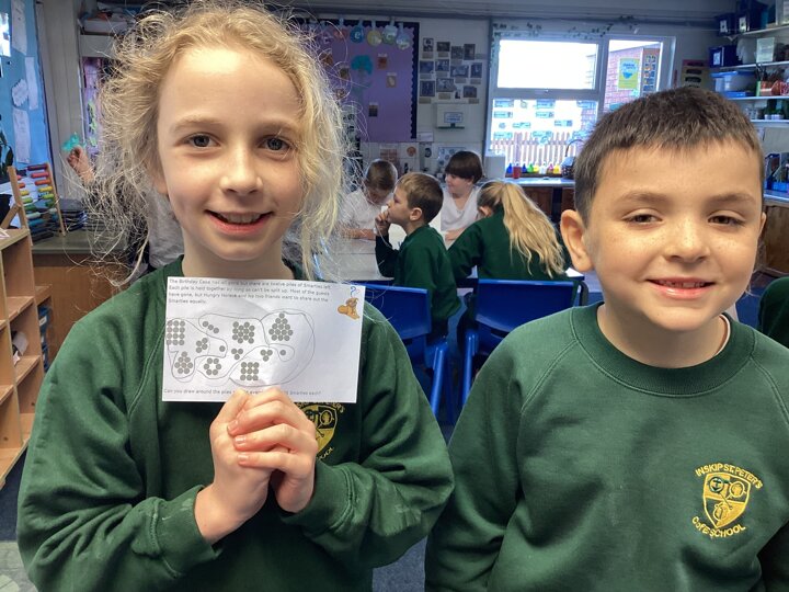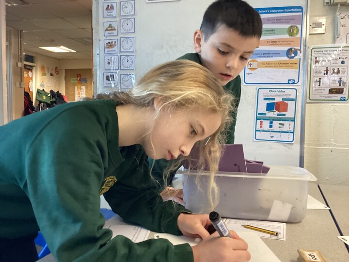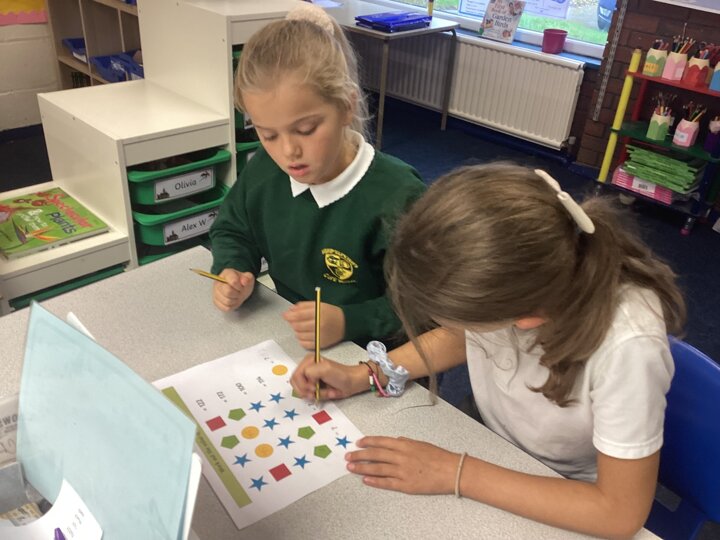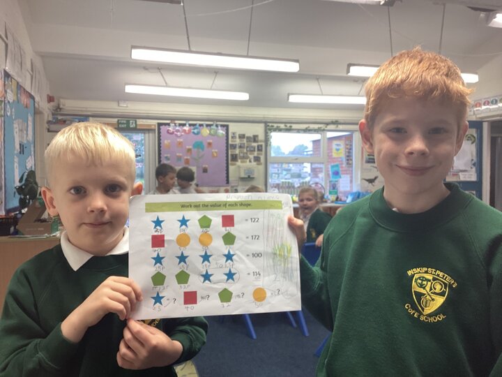 Middle school have been looking at word problems that use addition and subtraction. Children were paired up and given challenges to solve together, including shape problems, word problems and abstract thinking problems.