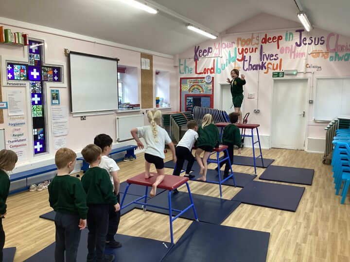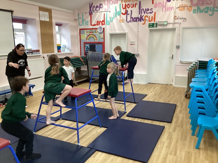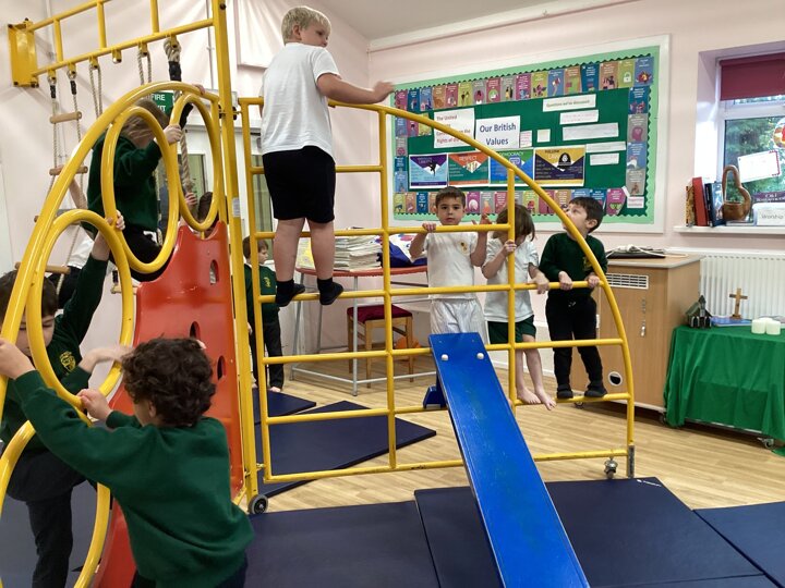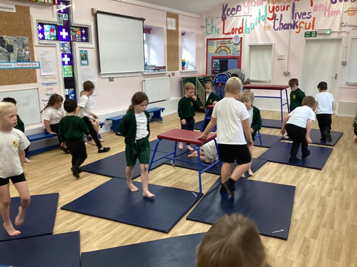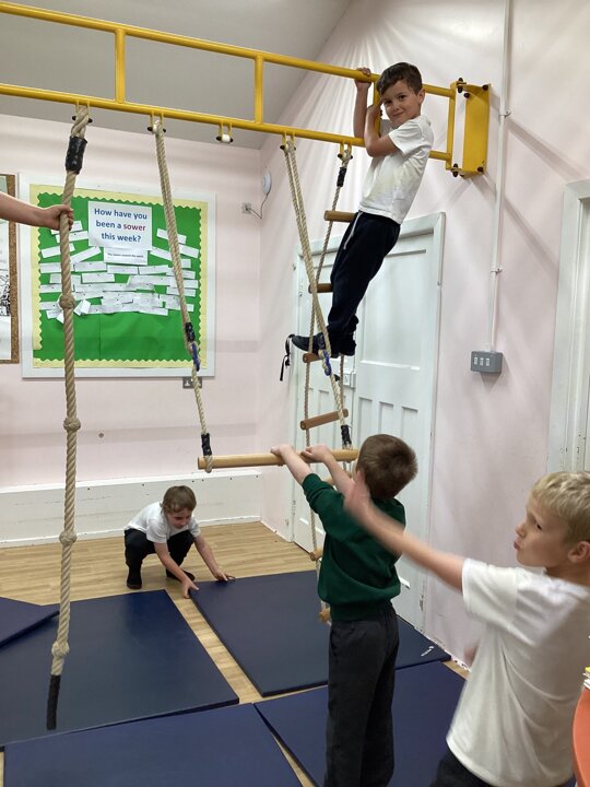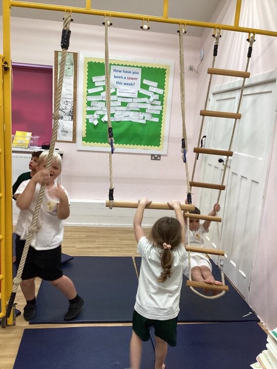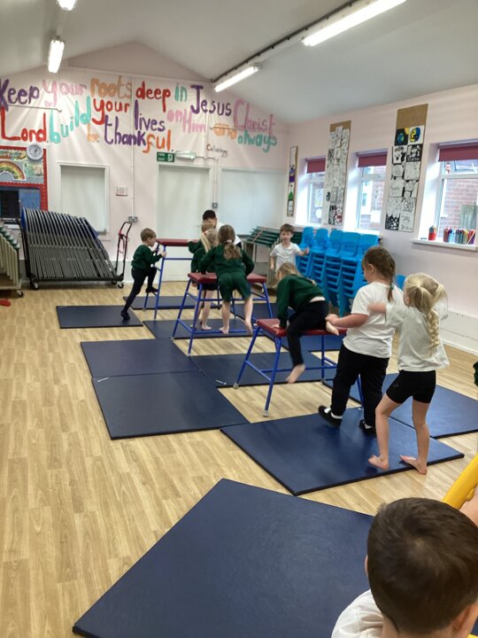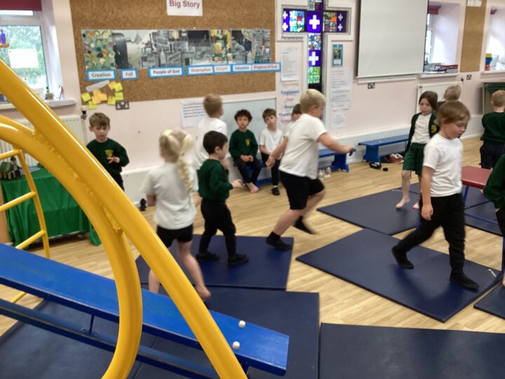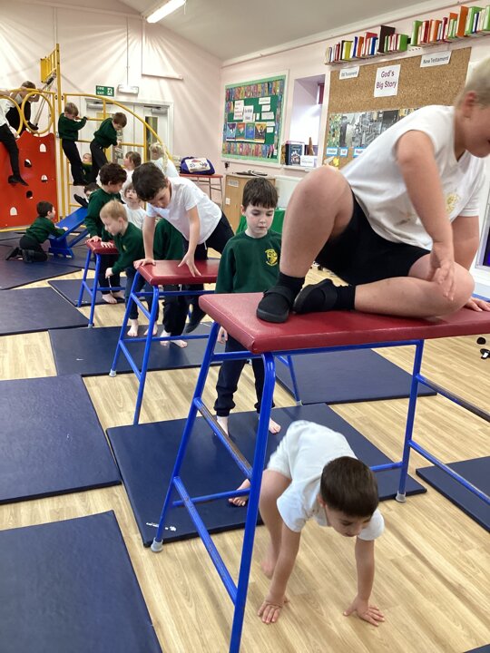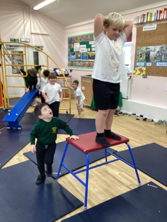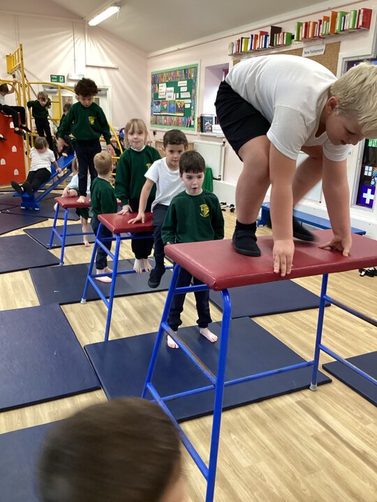 Lower School were unbelievably excited to see the hall transformed with all the apparatus. They listened carefully to our safety rules before starting the timed rotations on the different apparatus. They supported one another with compassion and remembered our safety rules (including no jumping down to a mat until you have made sure it is clear). It was so lovely for us to hear the children advising each other, encouraging each other and challenging themselves to try different things.