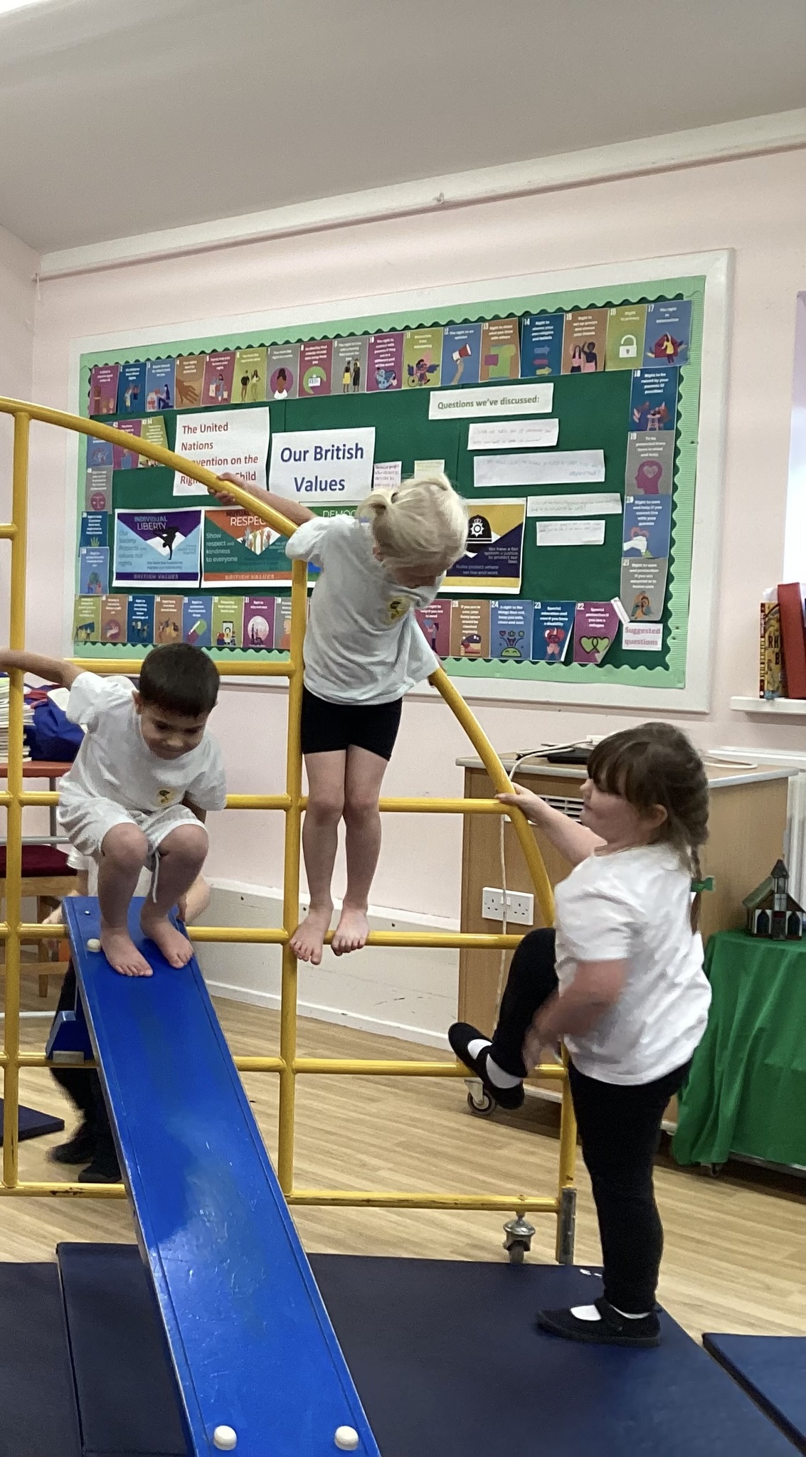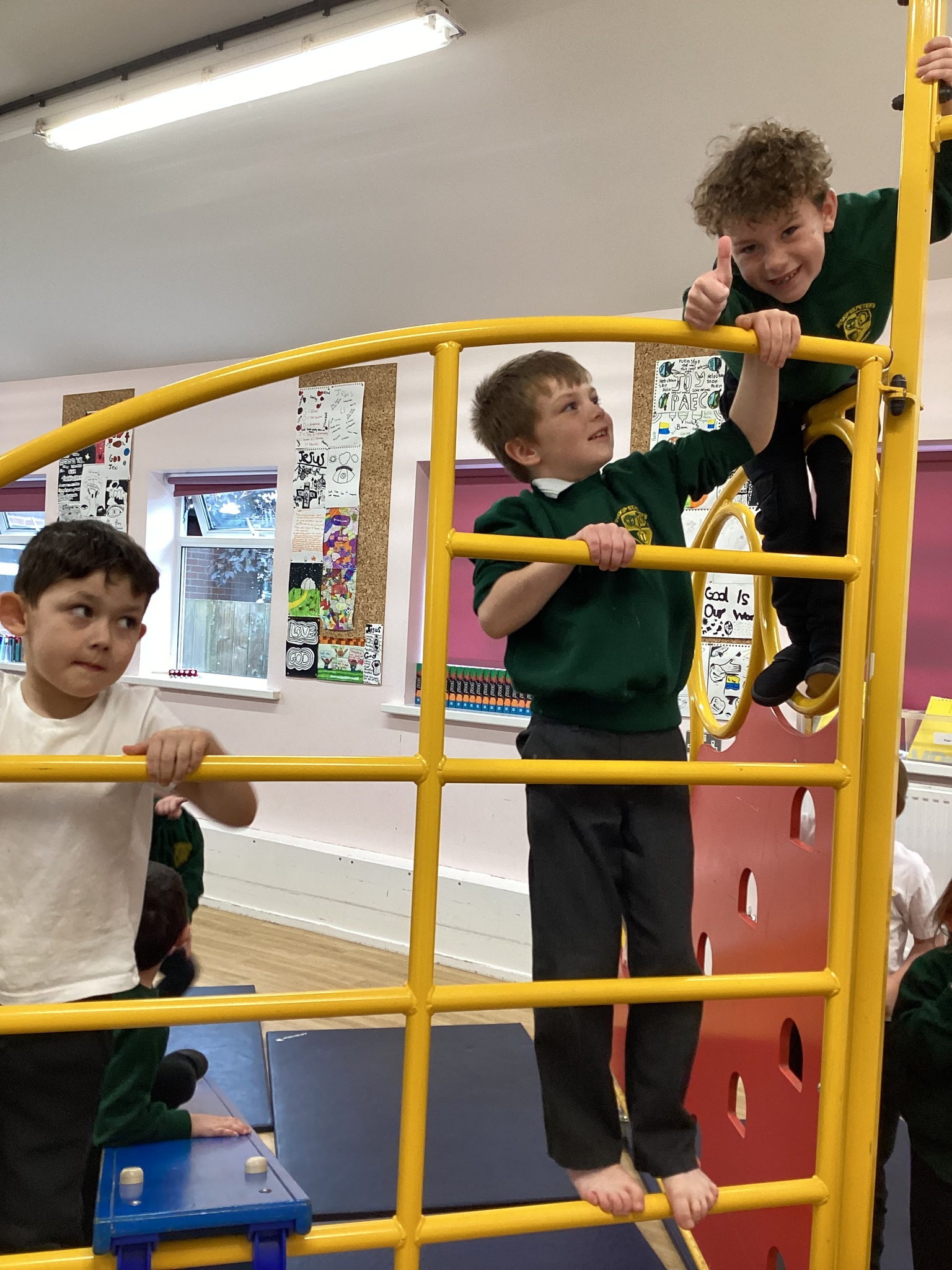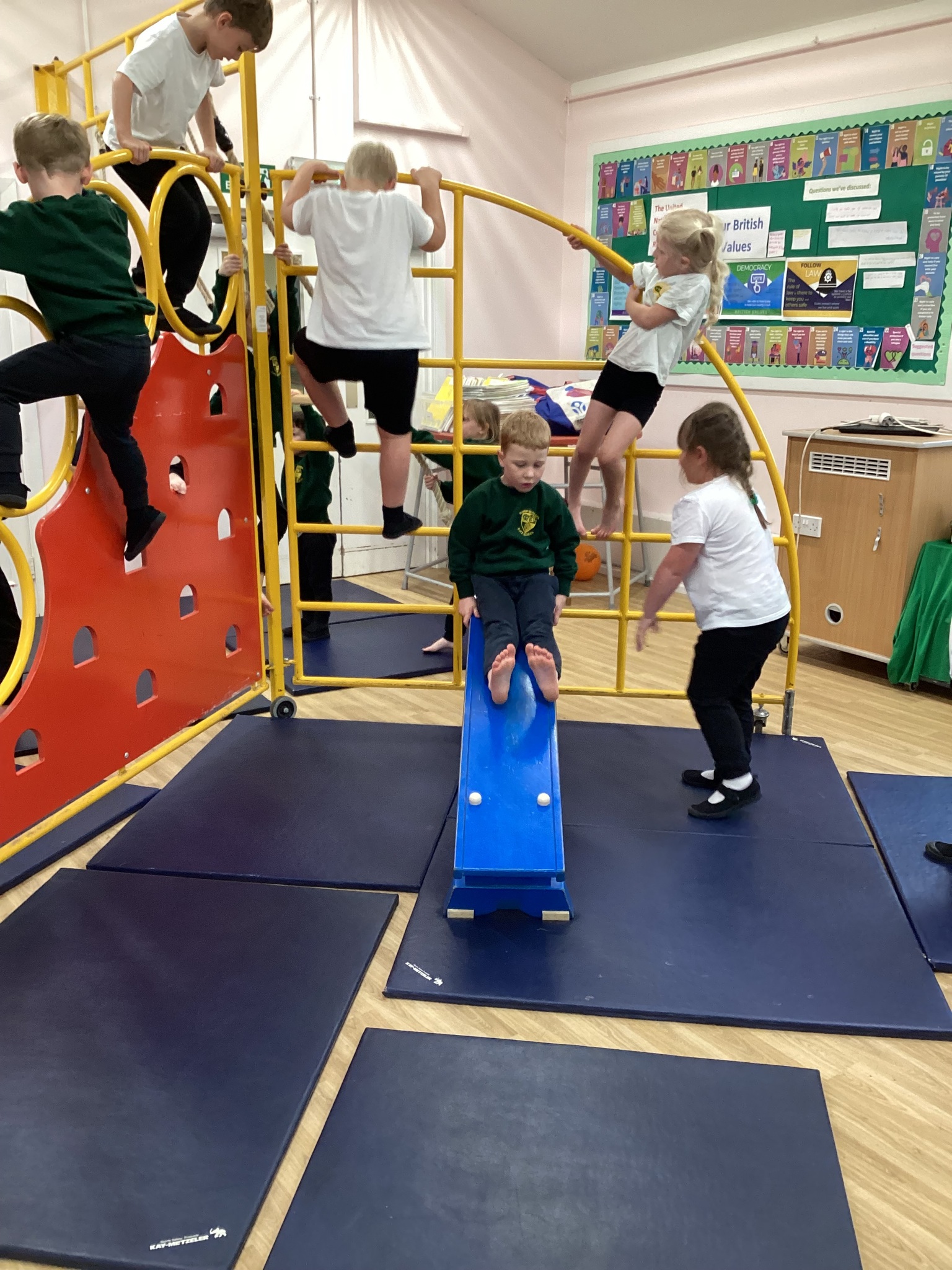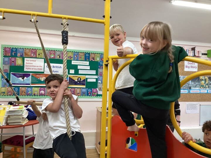 Lower School were unbelievably excited to see the hall transformed with all the apparatus. They listened carefully to our safety rules before starting the timed rotations on the different apparatus. They supported one another with compassion and remembered our safety rules (including no jumping down to a mat until you have made sure it is clear). It was so lovely for us to hear the children advising each other, encouraging each other and challenging themselves to try different things.