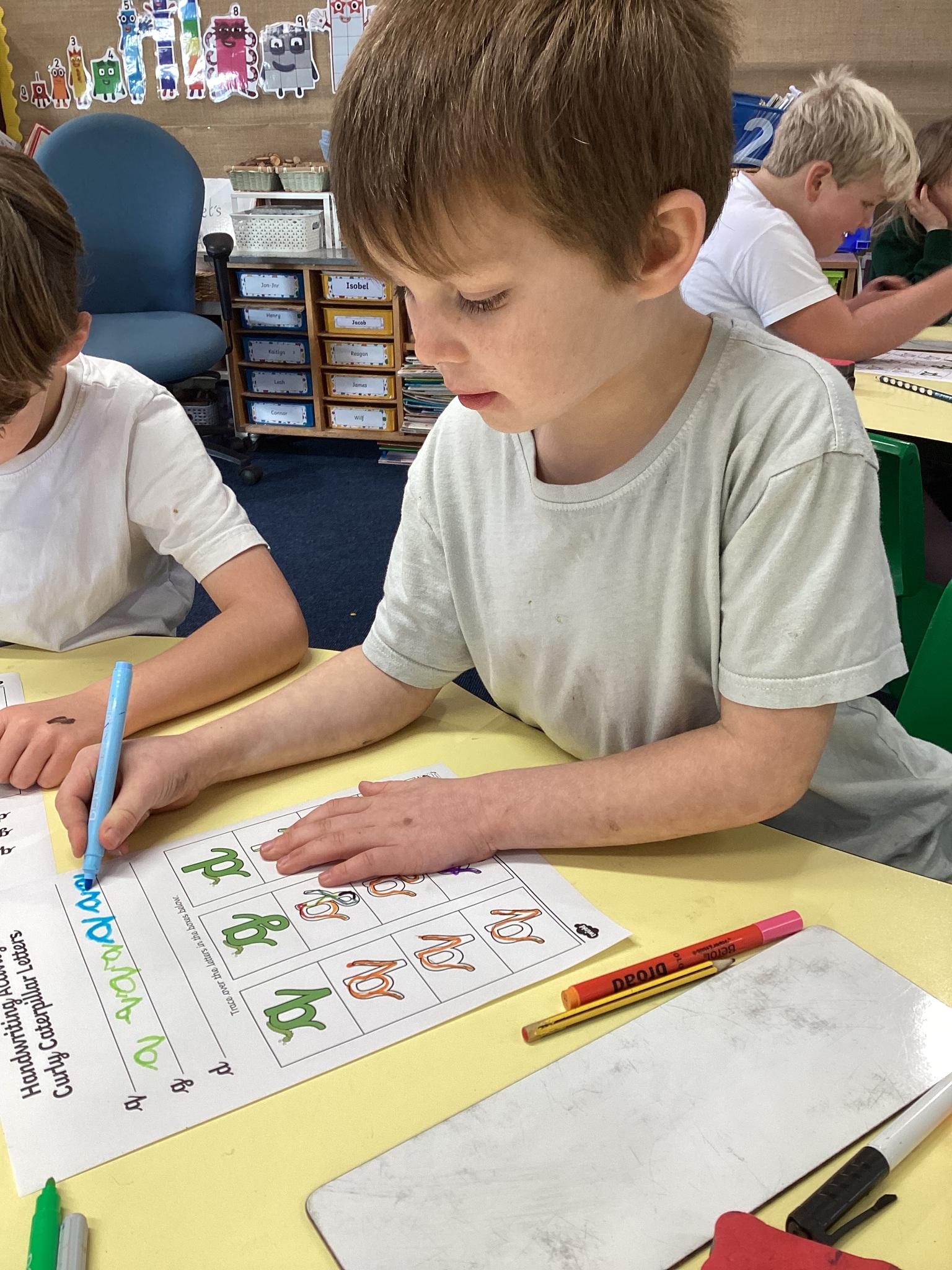 Year 1 and 2 have been so enthusiastic to learn our new handwriting! We are using a 'continuous cursive' style which means they are learning to form letters in a way that will help them join up letters in the future - when they are ready.