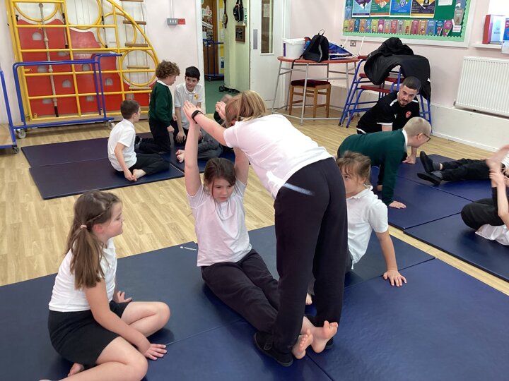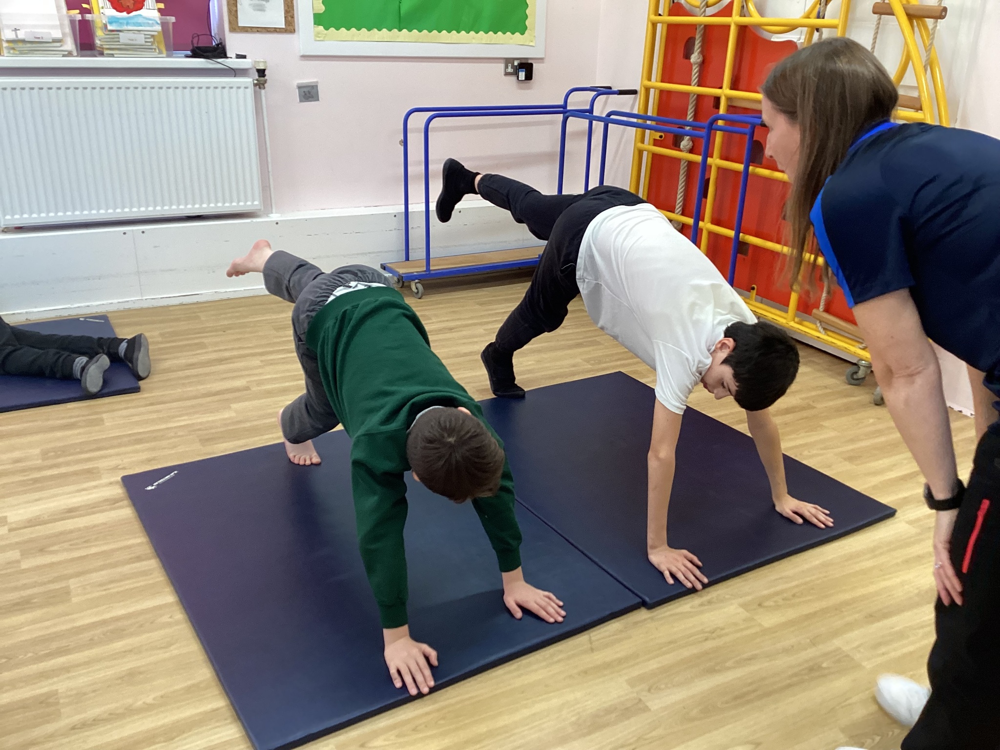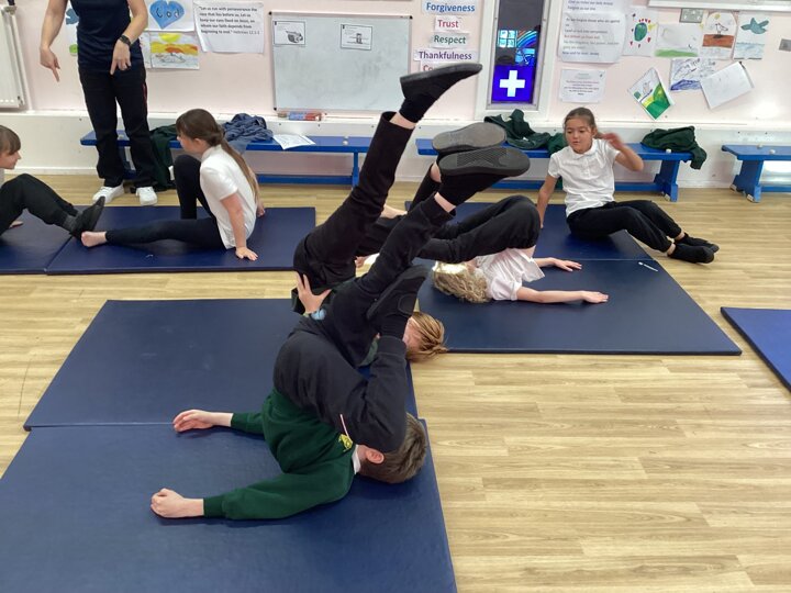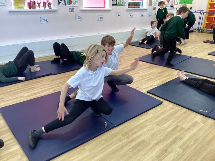 In our first lesson of gymnastics, the children firstly worked in pairs to create a matched and a mirrored balance using examples on pictures around the hall. They learnt to hold still their balances for at least 3 seconds and to use a stretched, taut body. A lot of the next part of the lesson was about communication as they then went onto teaching another pair their balances and put together a sequence of balances with ways of travelling between each one. This was harder than it sounds and needed lots of rehearsal to get the sequence flowing and gymnastic looking. Next week, we will work on stillness before trying to transfer the balances onto large apparatus.