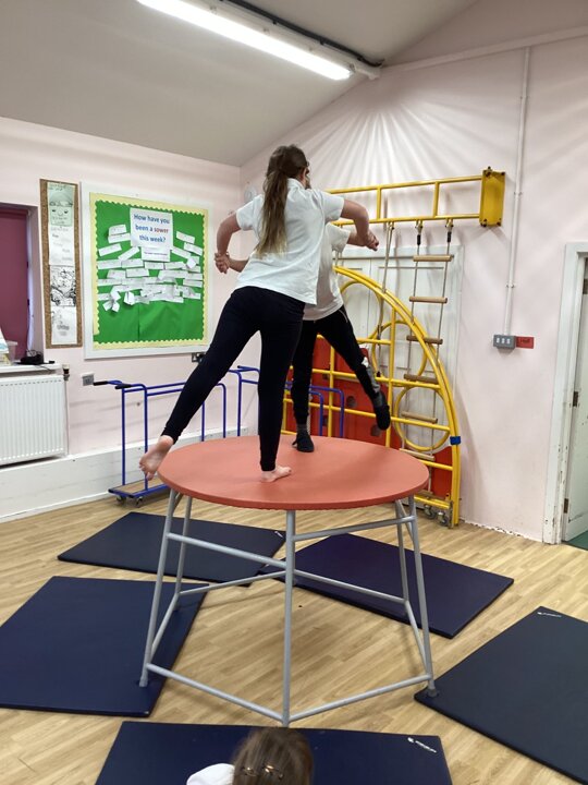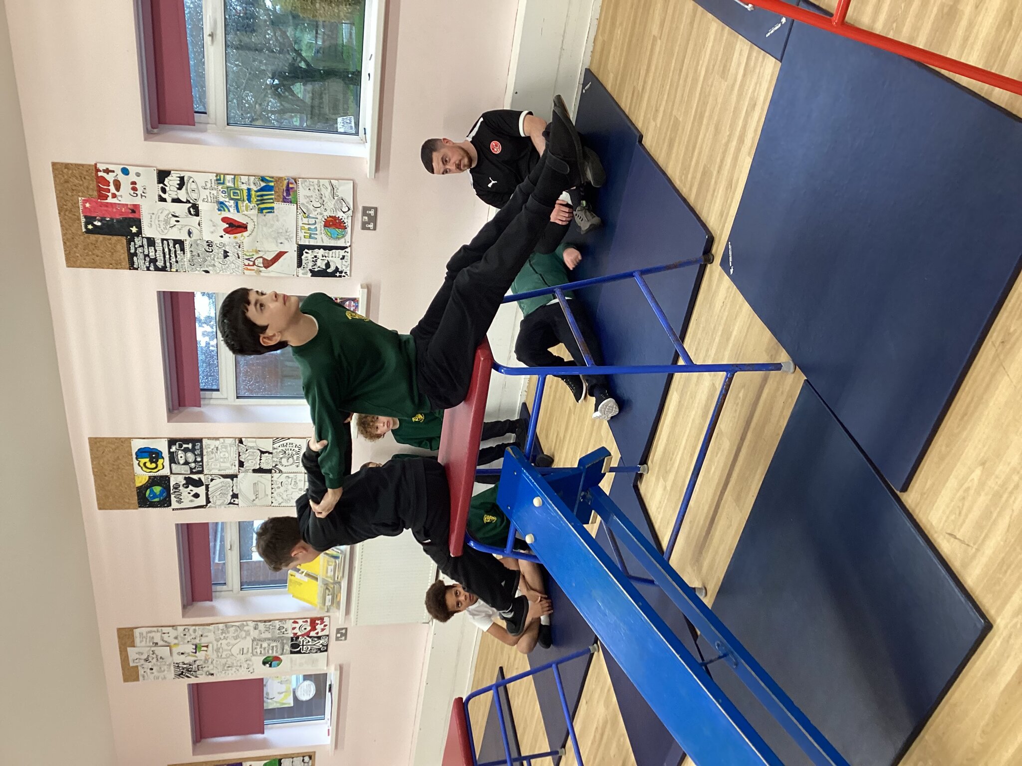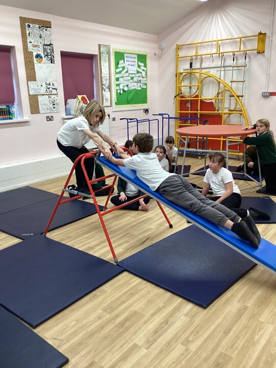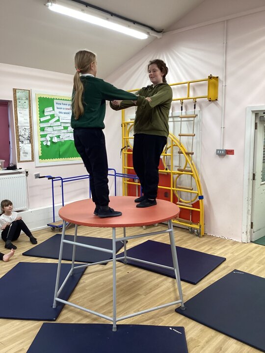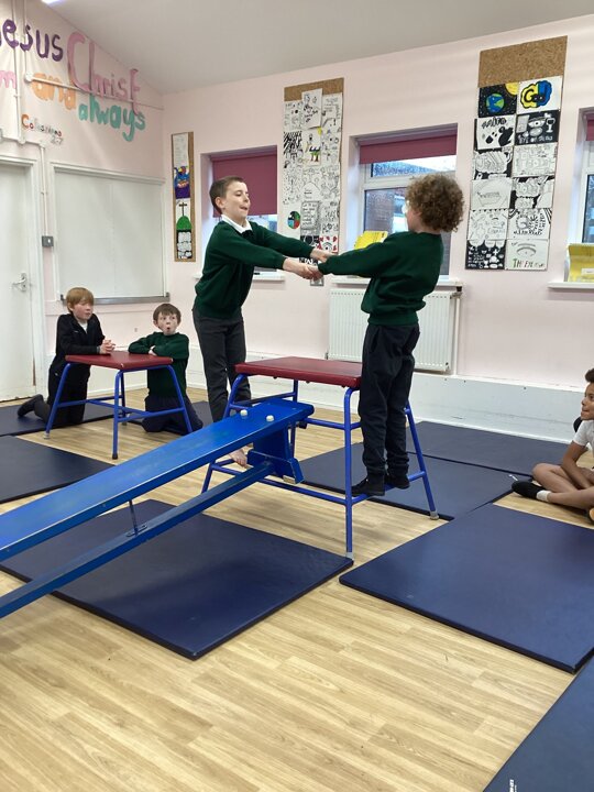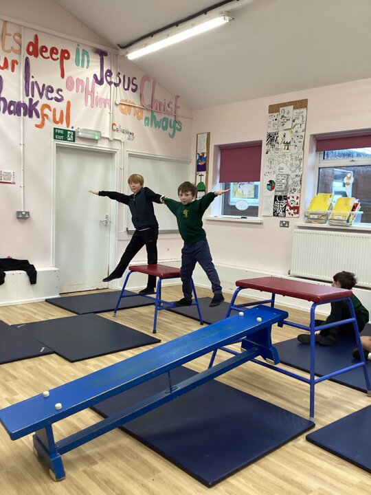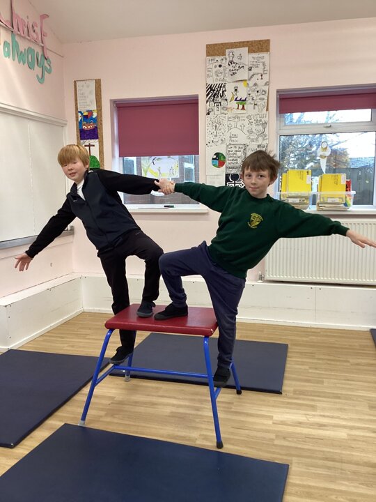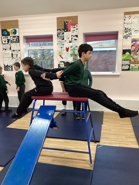 In this week’s gymnastics lesson, the class took their previous learning about matched and mirrored balances onto the large apparatus. The focus was to be able to travel in a gymnastic style onto the equipment and create a balance that had strength and stillness to it. This is harder than you think when working on high apparatus!