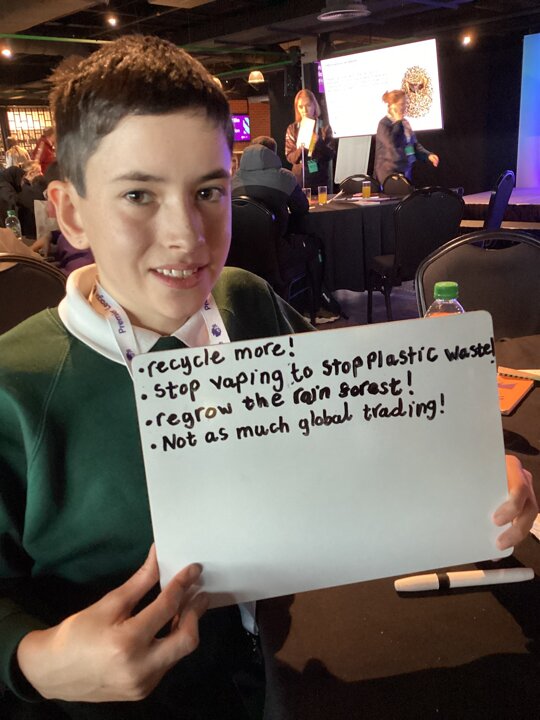 The children joined other groups of primary children from all over the country and have been listening to keynote speakers about the importance of protecting our planet through sustainability and setting up environmental projects in local areas.