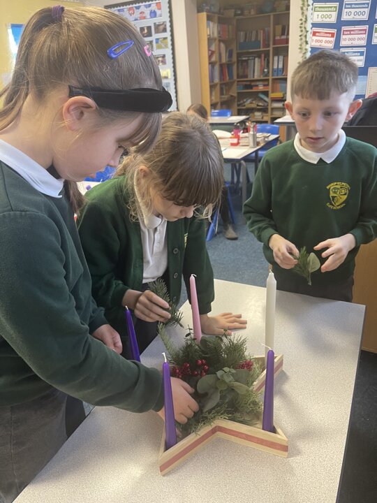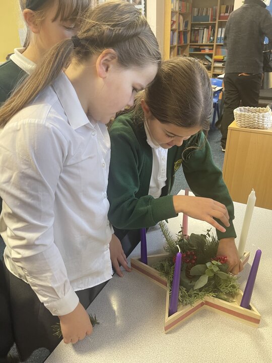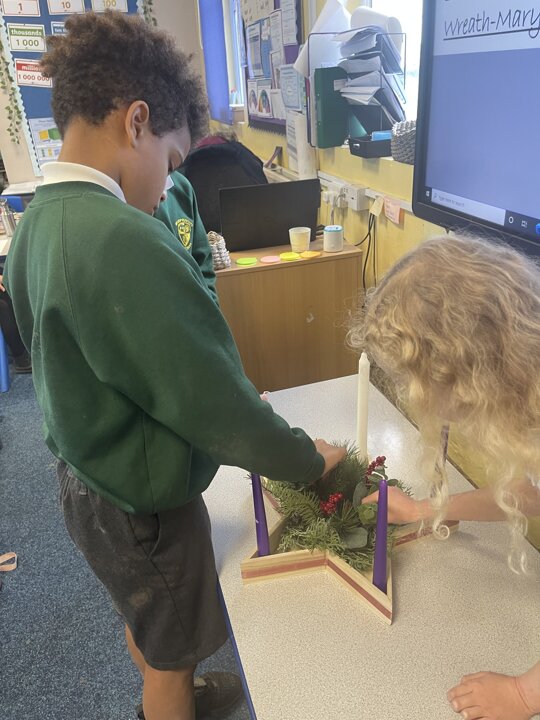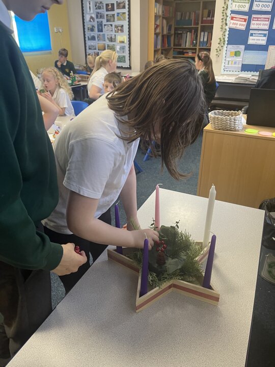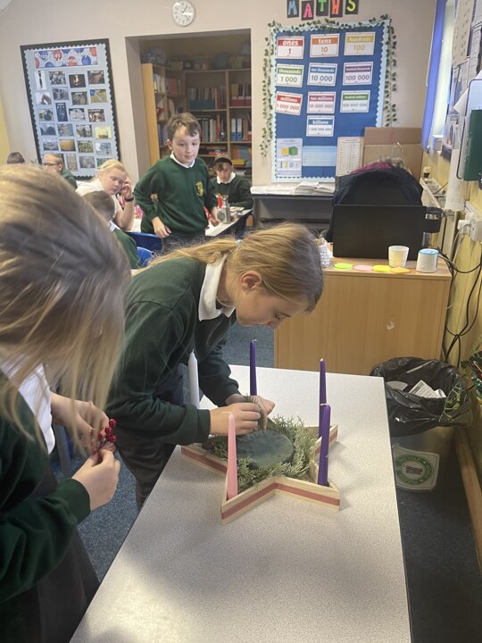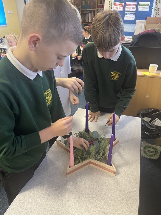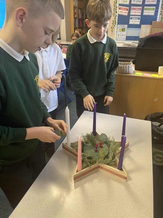 Over the past three weeks, Upper School has been learning about the season of Advent and the significance to Christians of the Advent Wreath. The children have learnt about the meaning of each of the candles-prophets Isaiah and Micah, John the Baptist and Mary Mother of Jesus. This week we also finished off making the School Advent Wreath with some evergreen plants. The children found out that the wreath is decorated with red berries as a symbol of Jesus’ blood shed when he was sacrificed on the cross and the green leaves remind Christians of the everlasting love of God for His People. On Thursday we will find out about the last two candles and light the first candle in our first Advent Worship on Friday an afternoon.