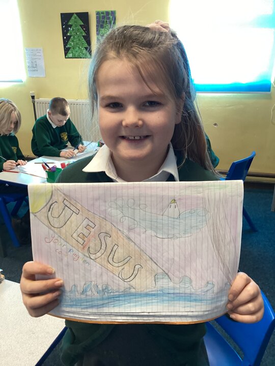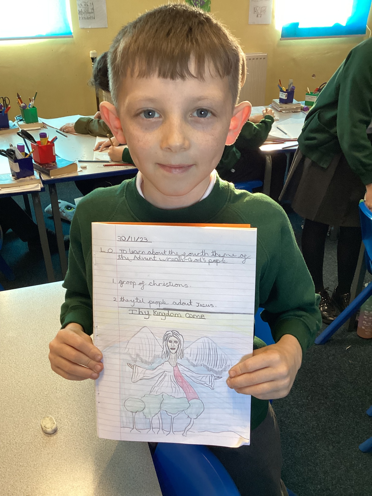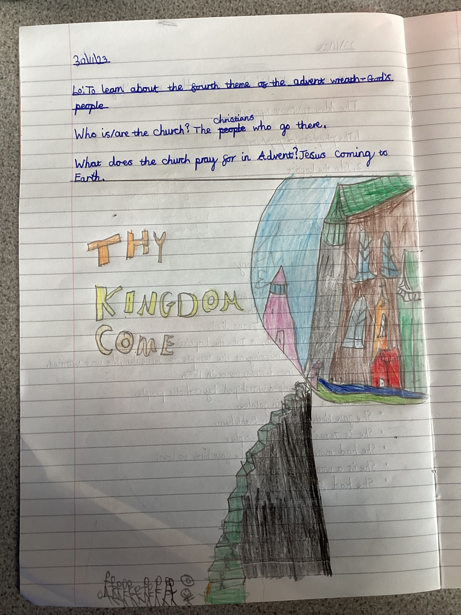 Today the children thought about the fourth candle on the Advent wreath which symbolises God’s People. We discussed the importance in the Christian faith of the Second Coming of Christ and how God’s people prepare for this in their hearts and minds during the Advent season through prayer and praising God.