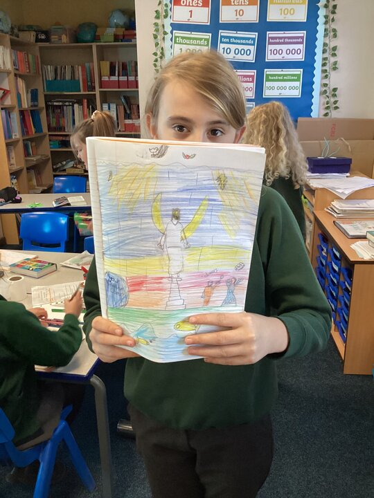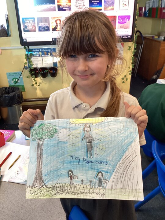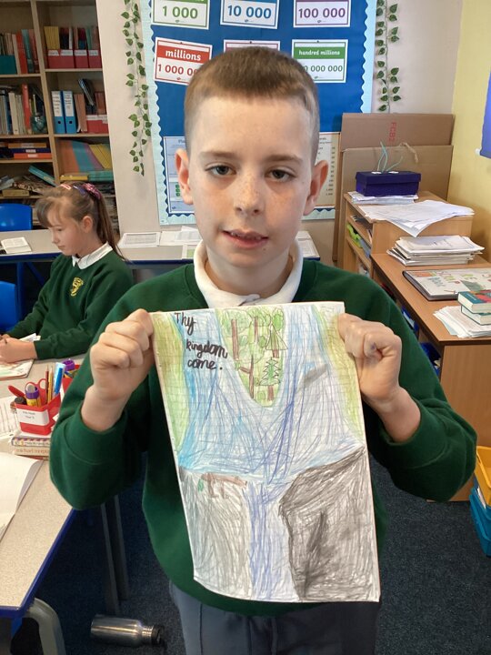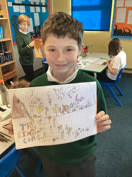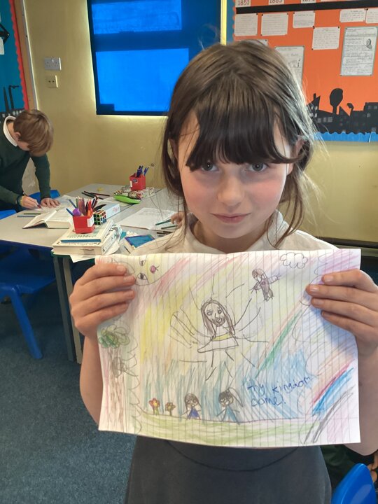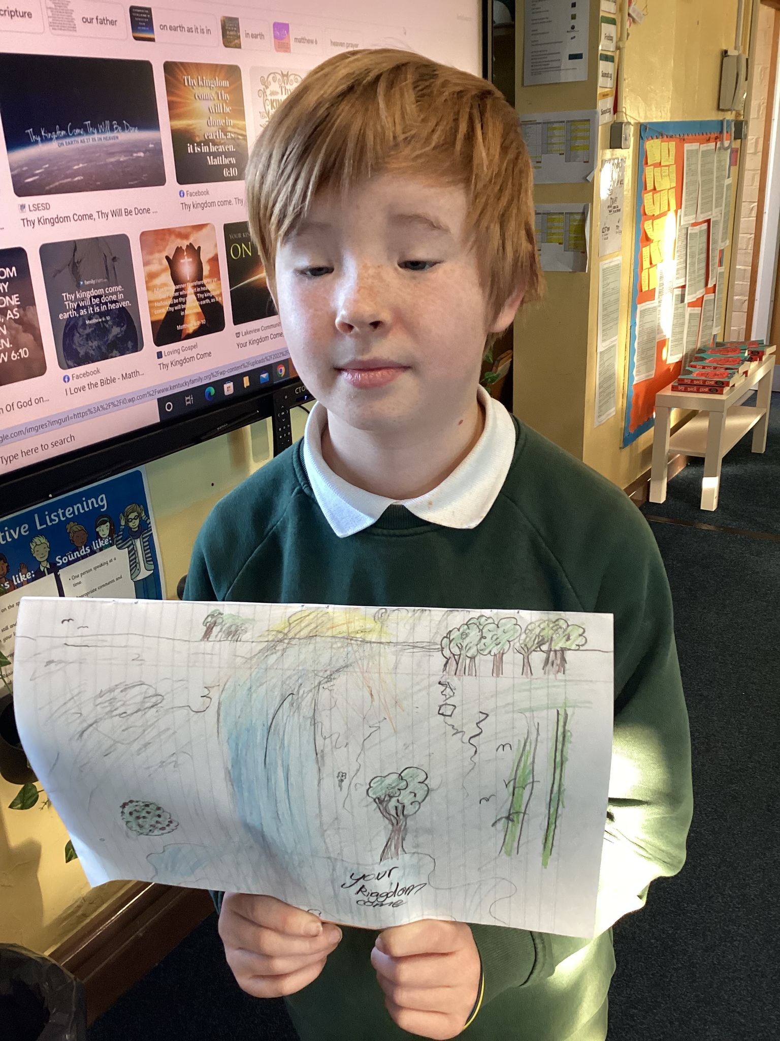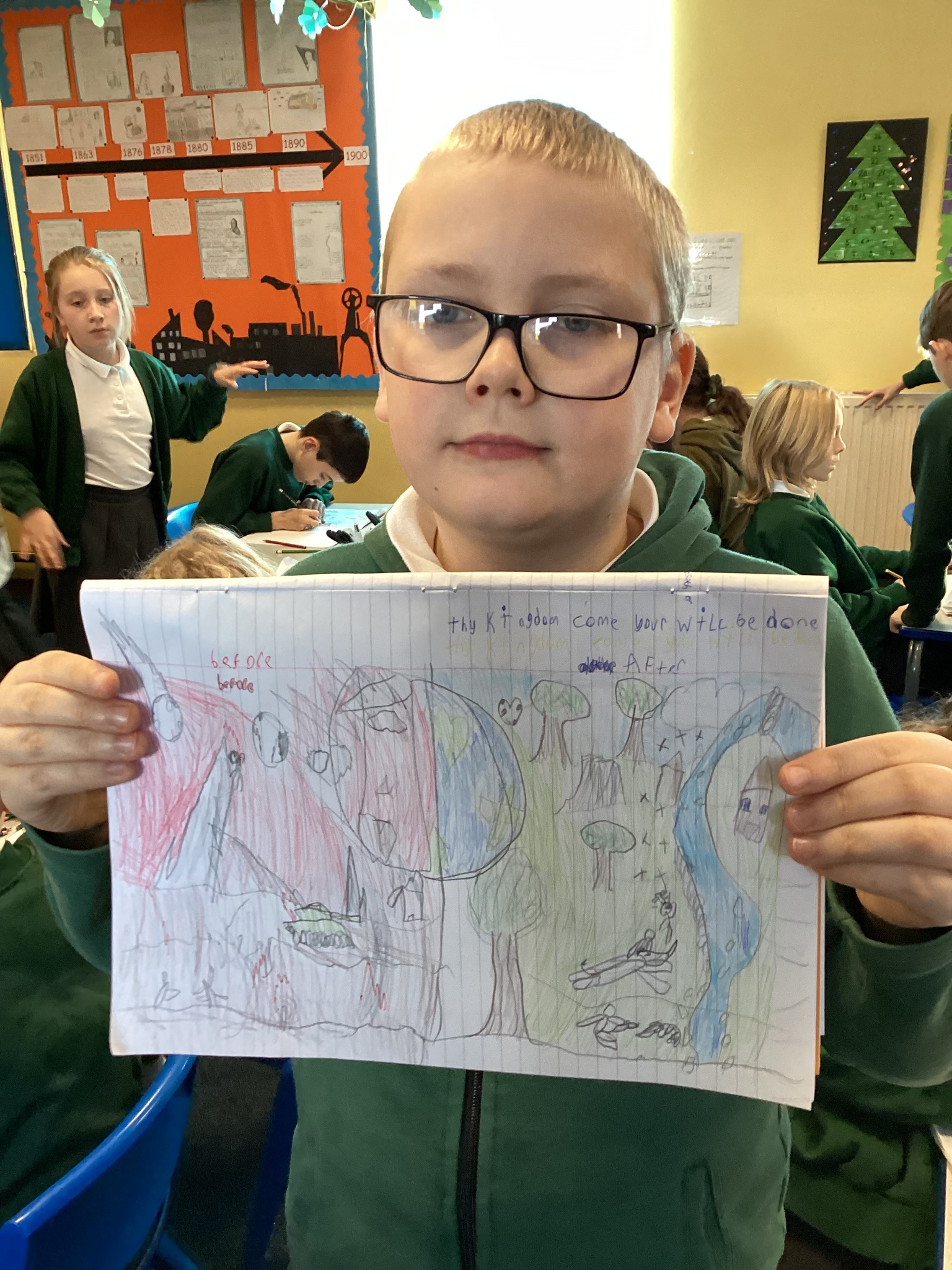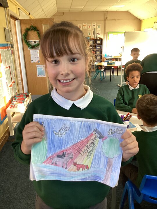 We then read scripture from the Bible that talked about what it would be like when God comes again. The children discussed the images that were described in the Bible and then came up with their own pictures of what the world might be like if Jesus came back to Earth. Here is a gallery of their ideas…