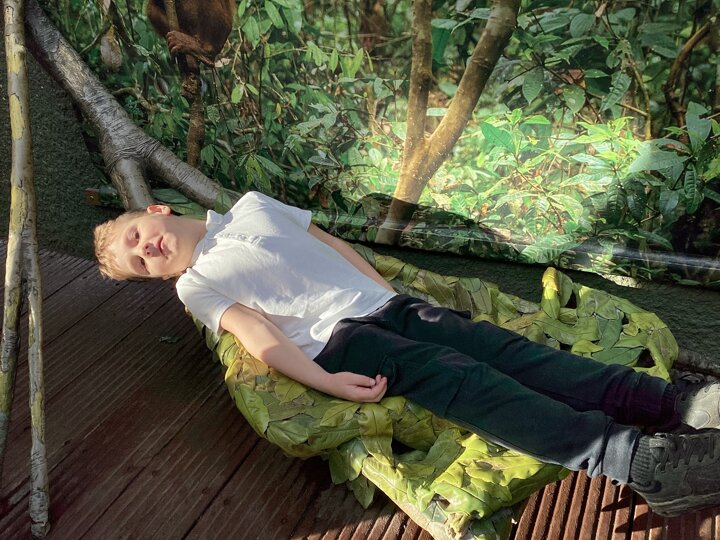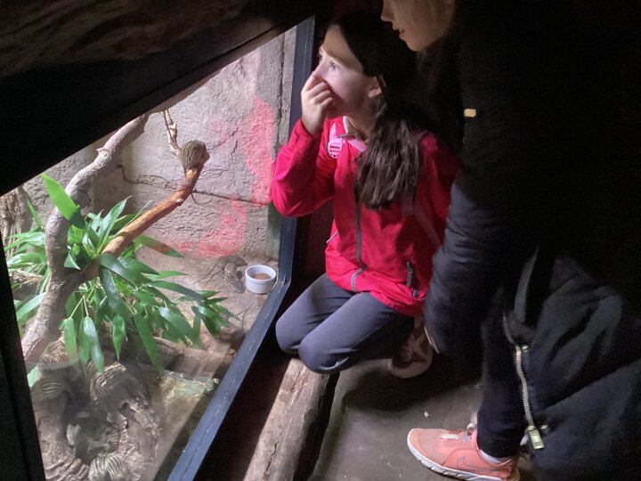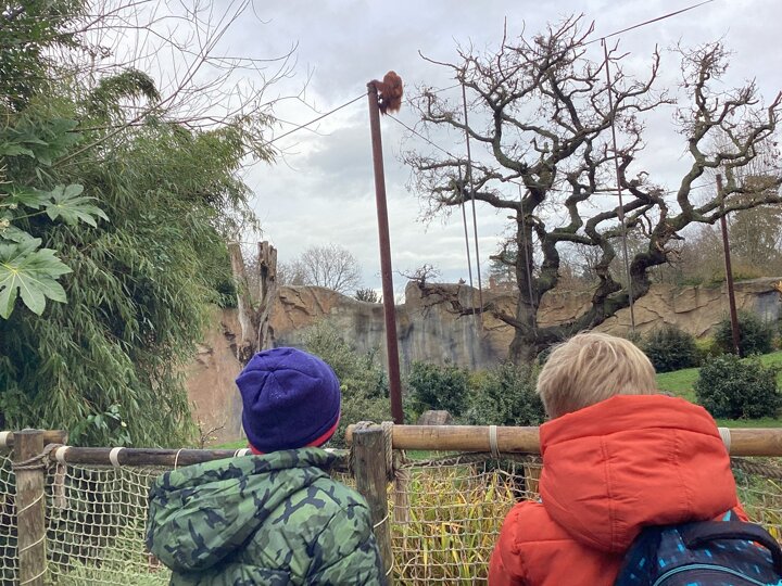 The day began with a walk through the dark and mysterious bat cave, where we saw some huge and some tiny bats. We spent the morning walking around the 'islands' area of the zoo. Here we saw orang-utans, sun bears and even a flash of a tiger!