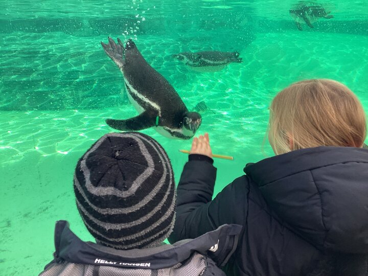 We wandered across the penguins, who put on a show of swimming and diving for us. We thought they were a little tricky to classify as they really didn't act like birds! We walked into huge jungle houses were we saw peaceful apes, huge pythons and jaguars!