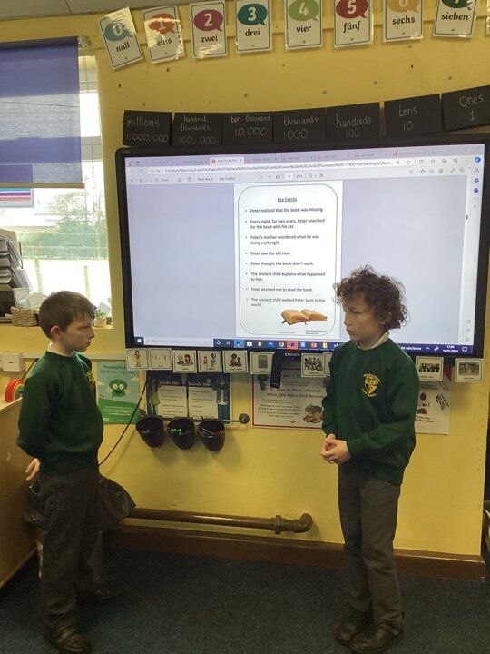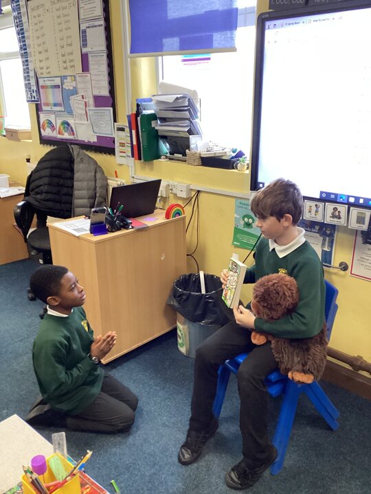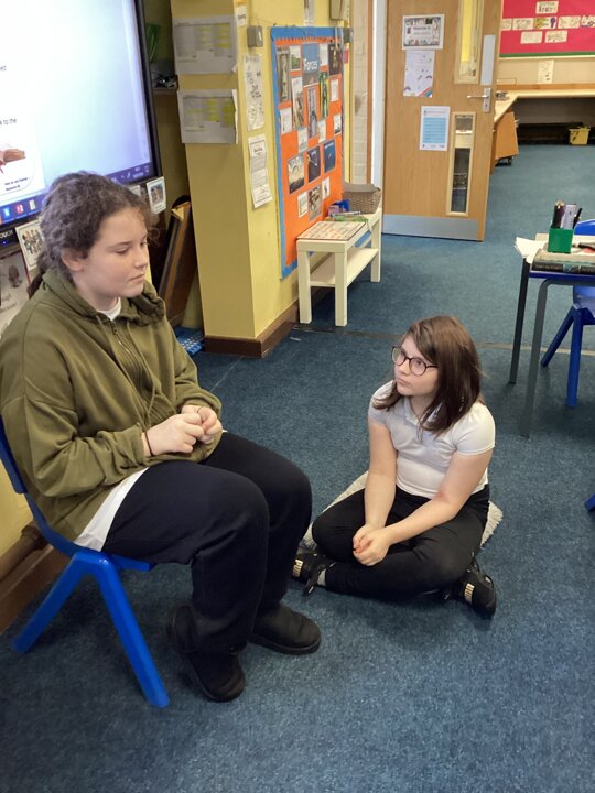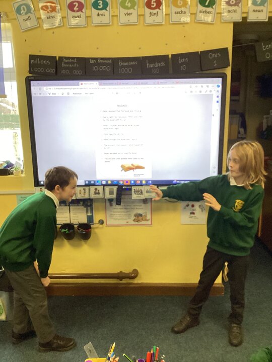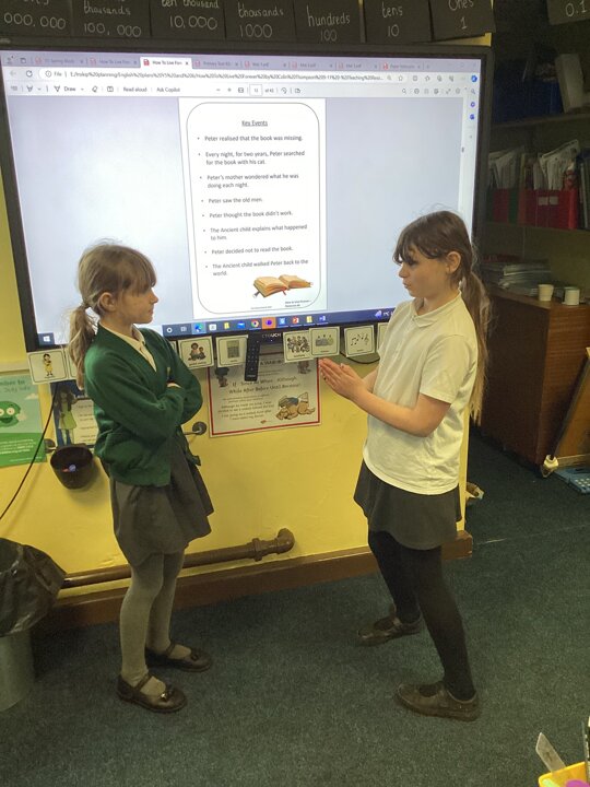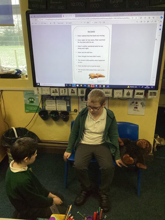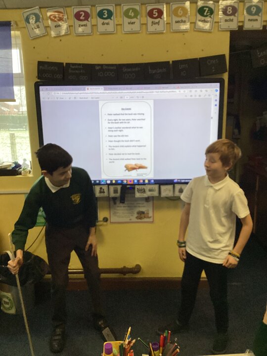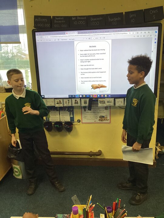 Today the children explored the drama convention of Freeze Framing an event from our story, How to Live Forever. They were given a list of scenes from the book to choose from and then worked with a partner to freeze frame the scene like a photo. We had to believe they were the characters by the way they used body language and facial expression. I then got the children to think about what their character thought and felt at that moment. I ‘woke’ their freeze frames up so they could talk in character.