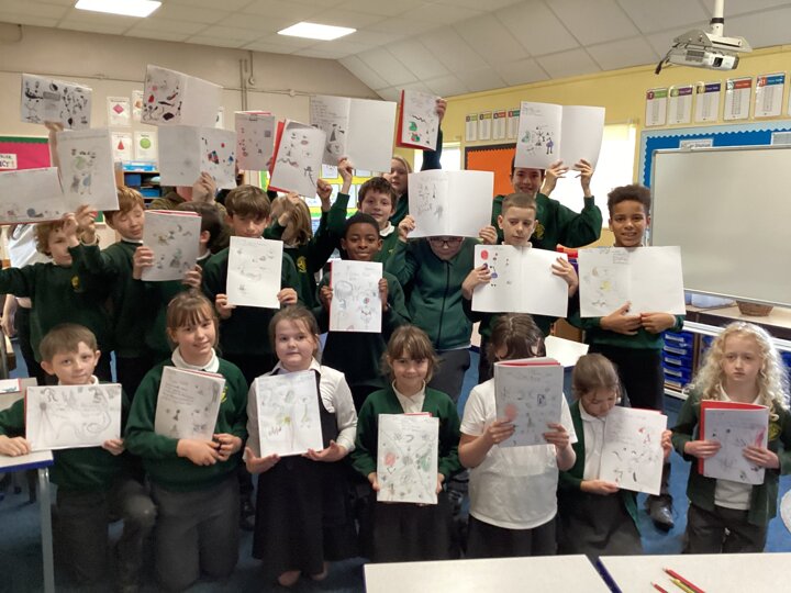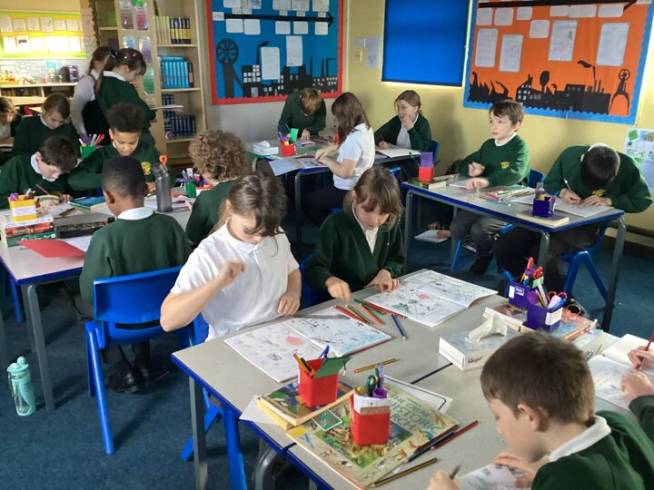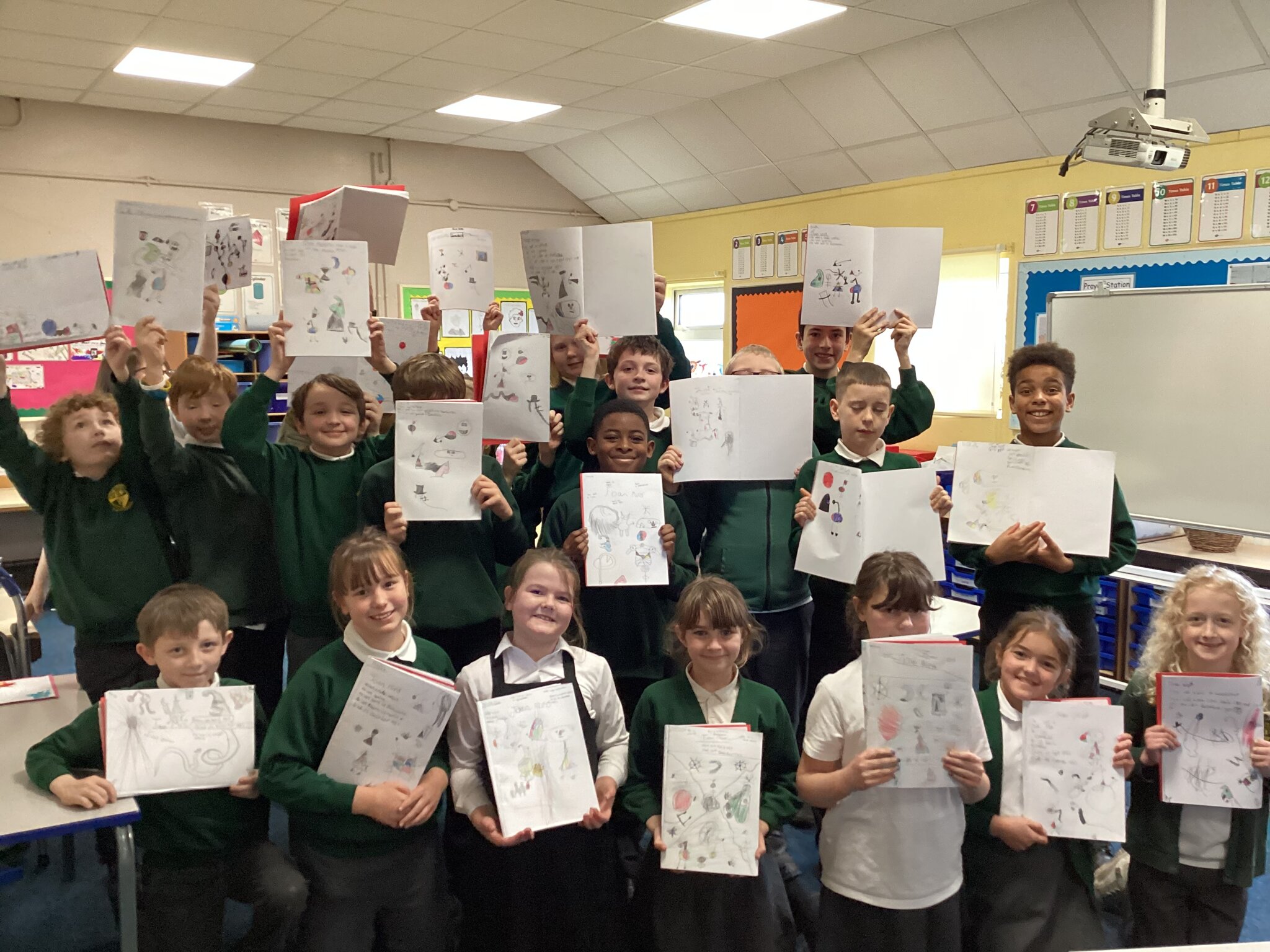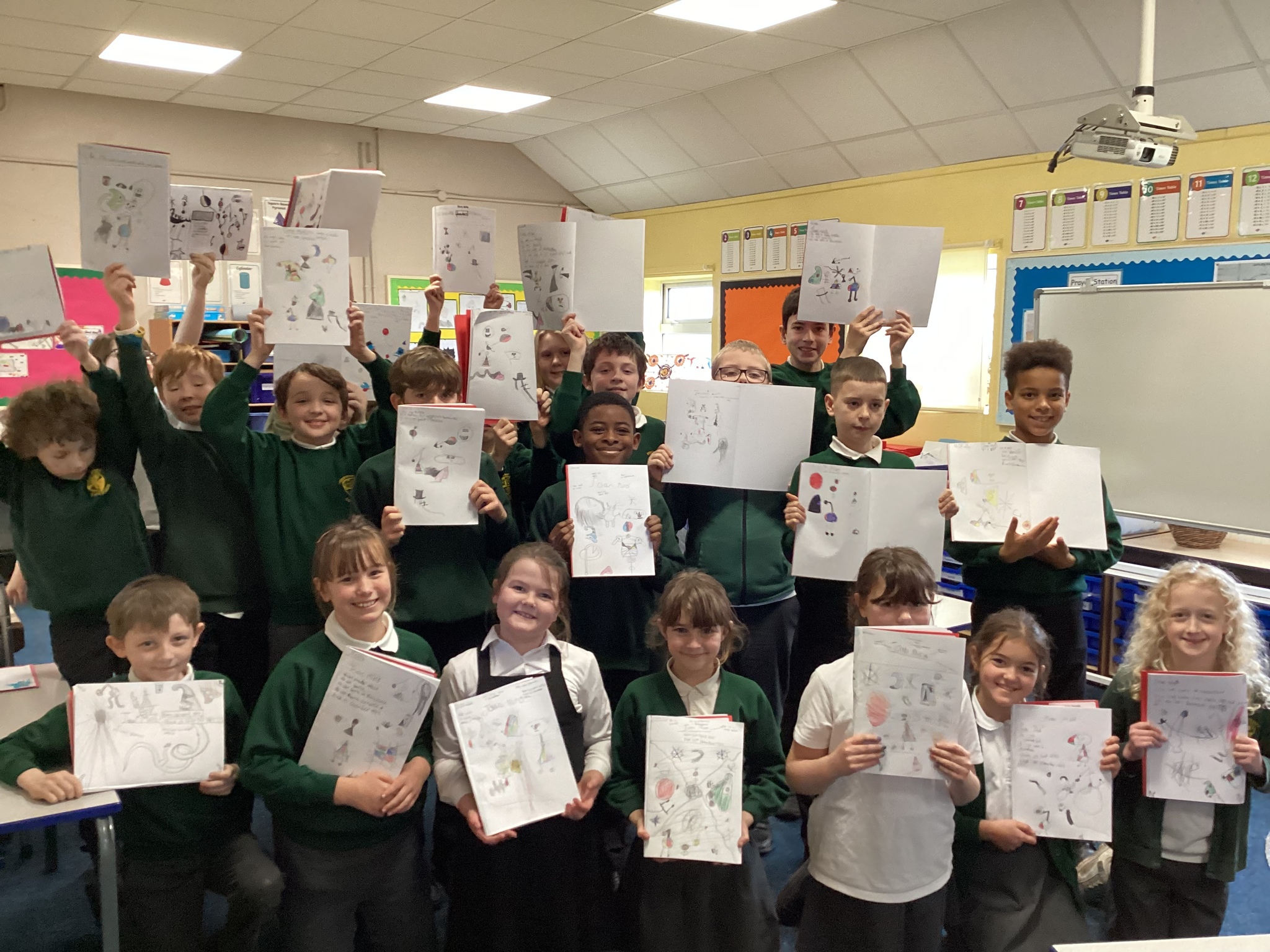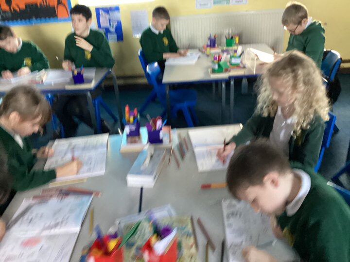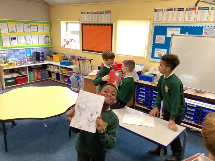 We also explored the shapes and lines in the form of a ‘Joan Miro’ themed alphabet. This gave us the chance to practise some of the abstract shapes but for it to carry our own meaning.