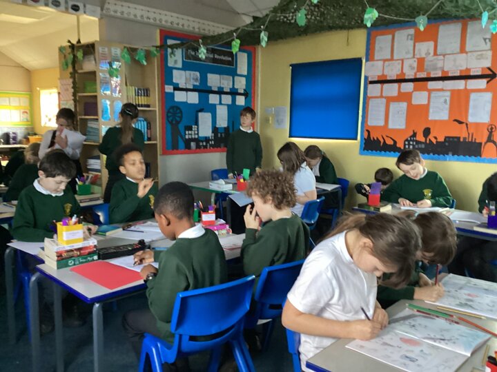 We enjoyed the ‘quick capture and copy’ game where we picked out a segment from the art to quickly recreate in our sketchbooks. We were then timed to capture the colours too.