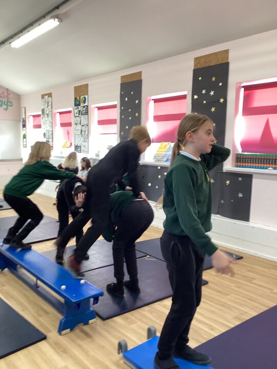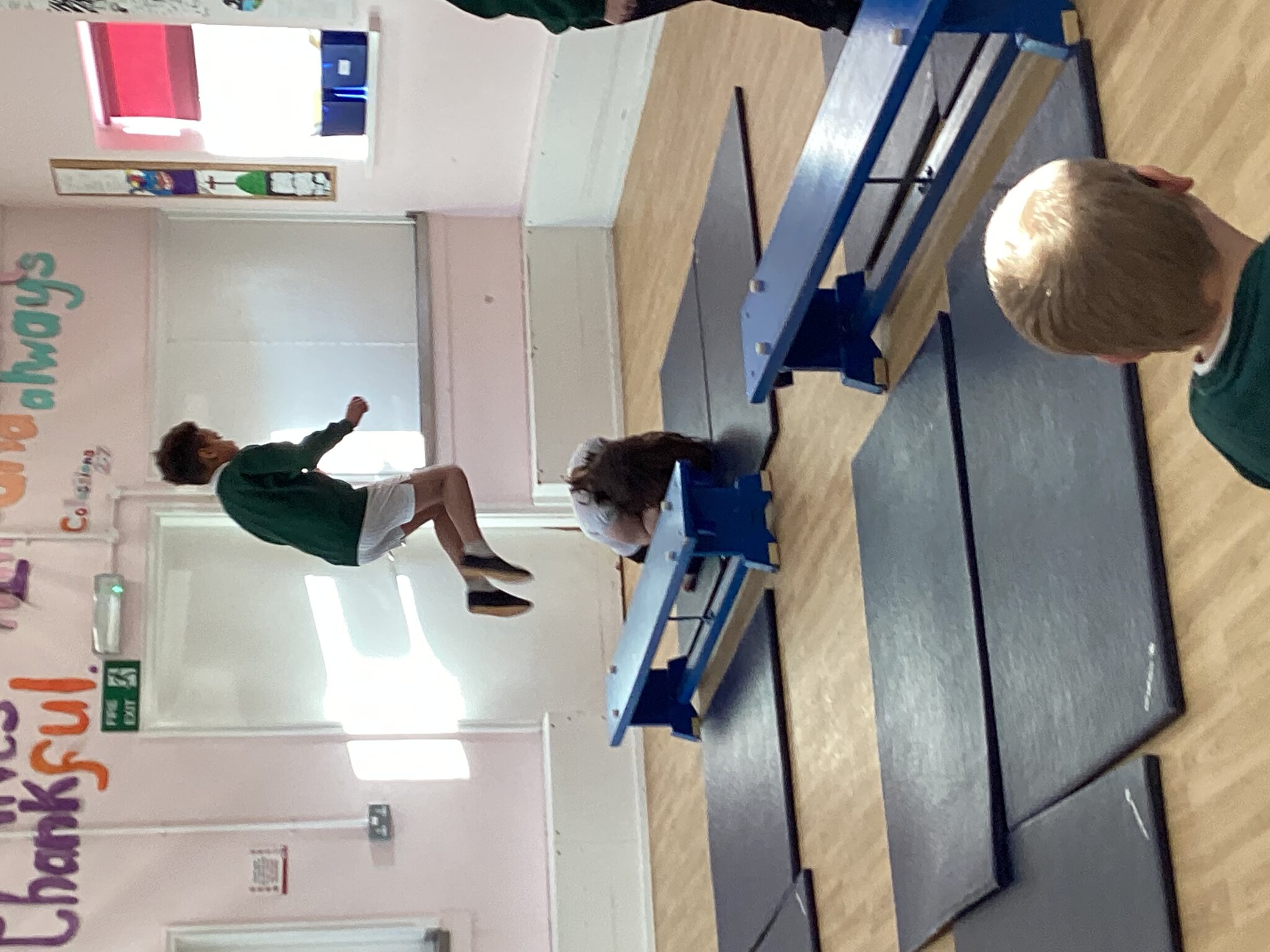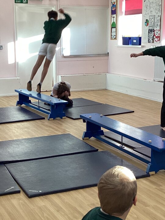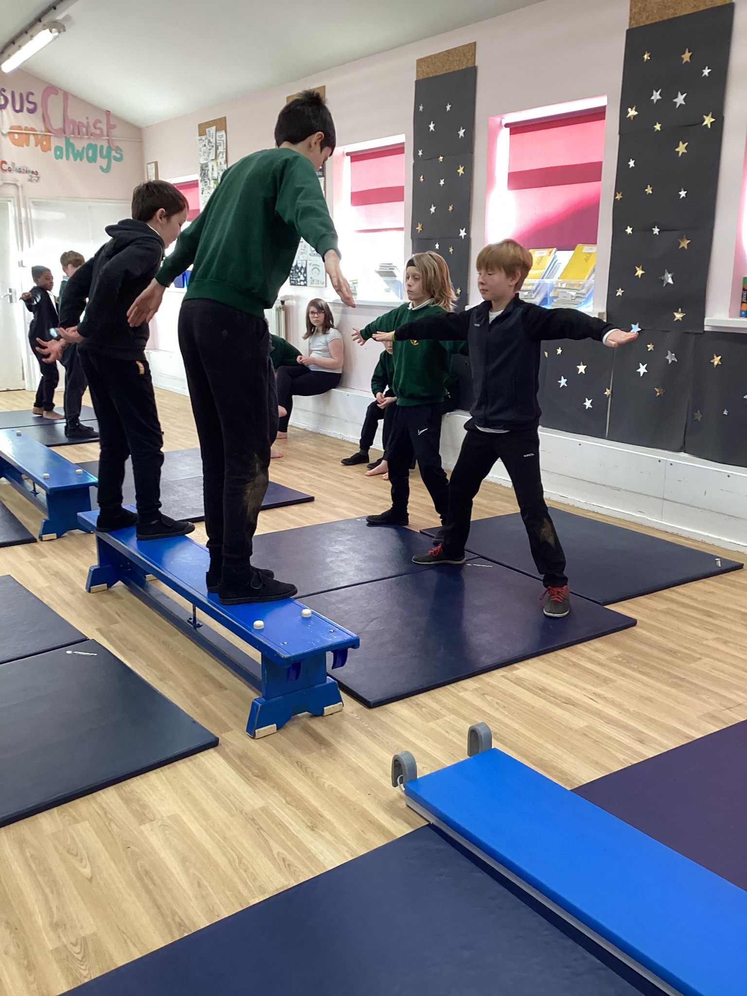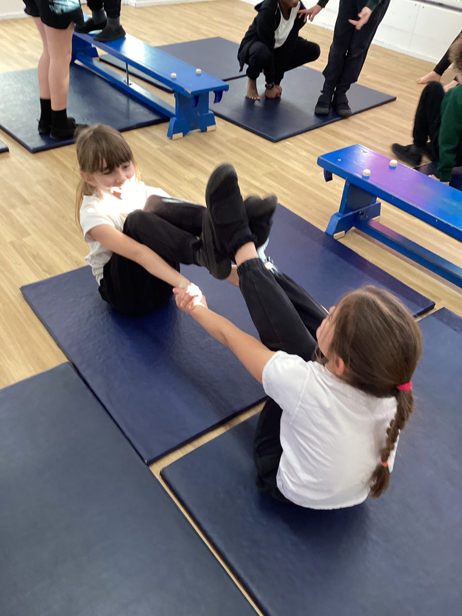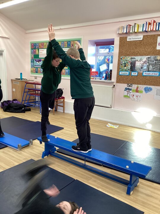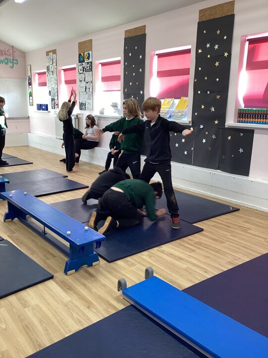 For Upper School’s second gymnastics lesson of Spring, they built on their sequences of balances and travelling from shape to shape from their first lesson. They used canon to vary the sequence and improved their balances (counter tension and counter balance) and ways of travel (sliding, jumping, rolling).