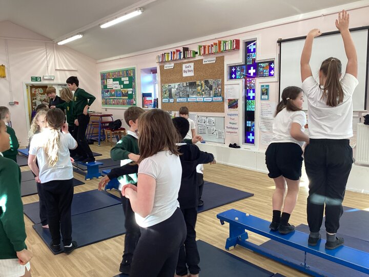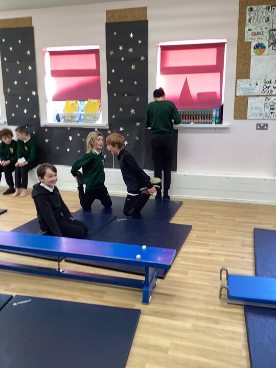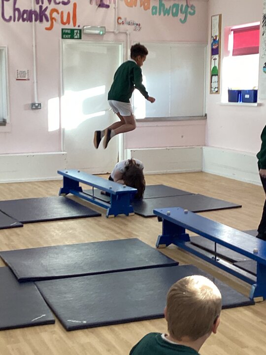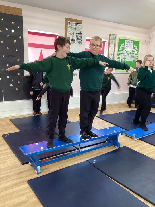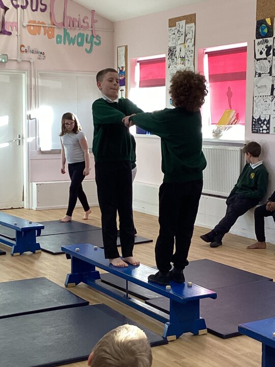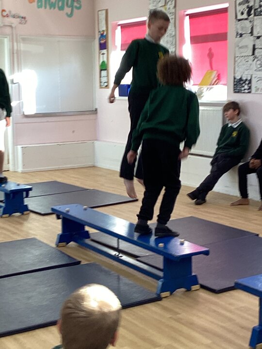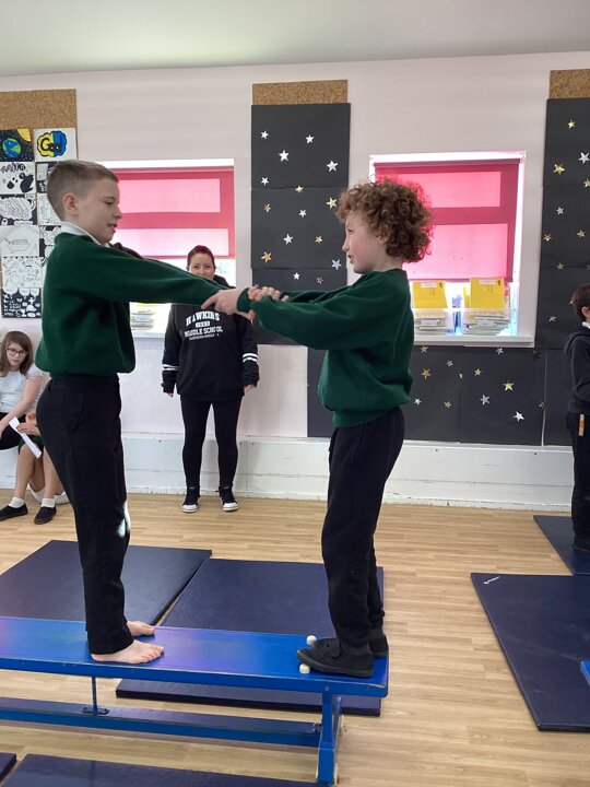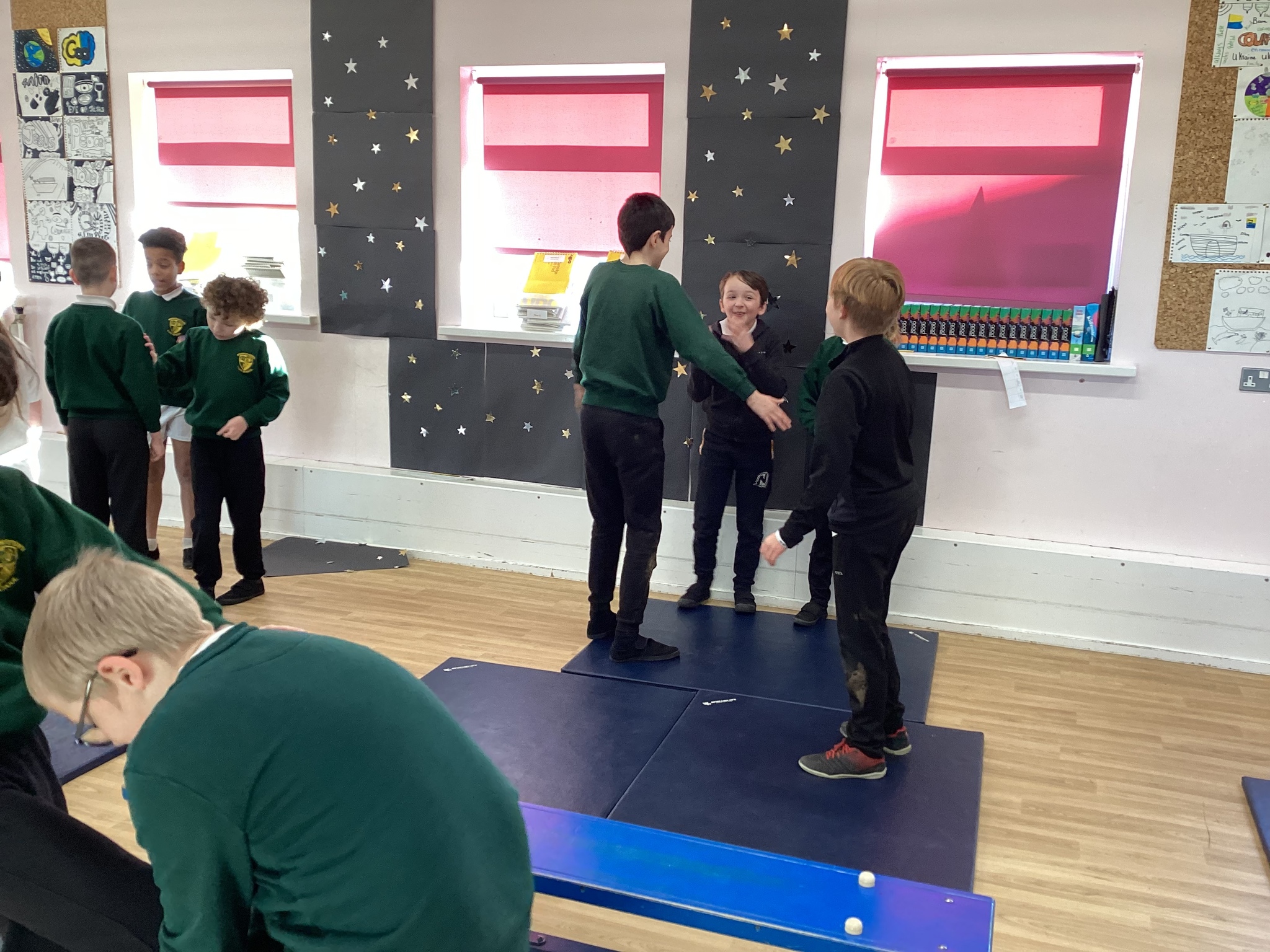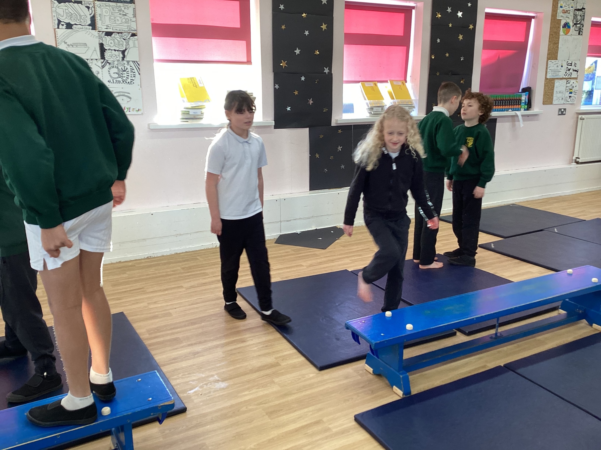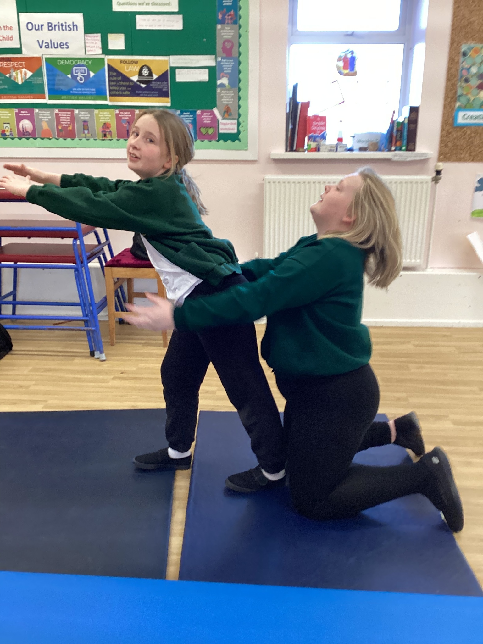 For Upper School’s second gymnastics lesson of Spring, they built on their sequences of balances and travelling from shape to shape from their first lesson. They used canon to vary the sequence and improved their balances (counter tension and counter balance) and ways of travel (sliding, jumping, rolling).