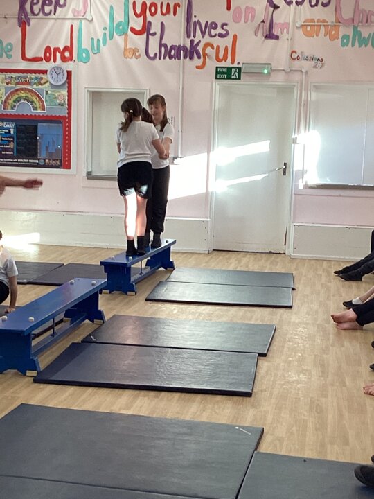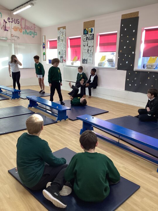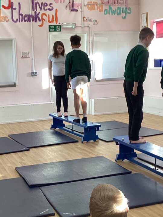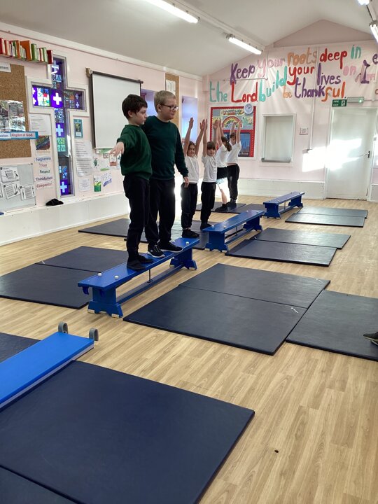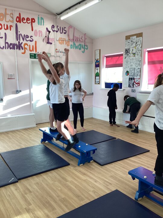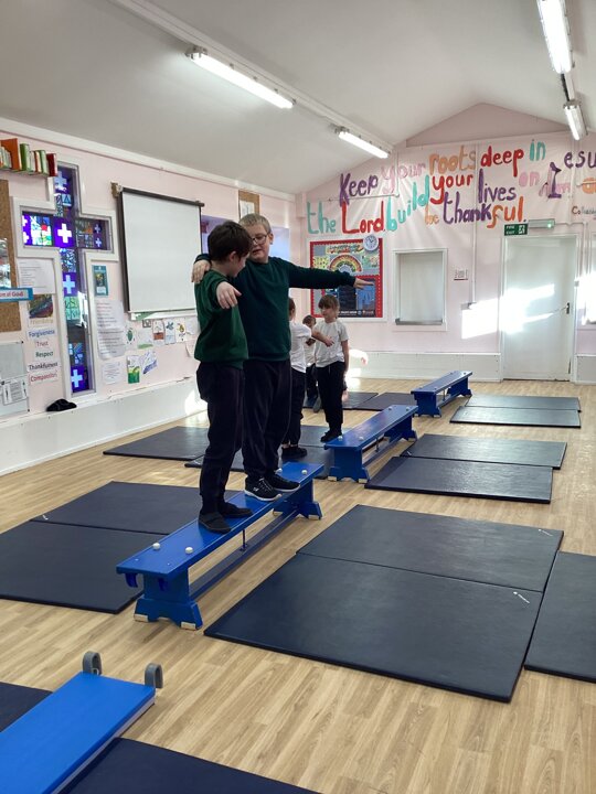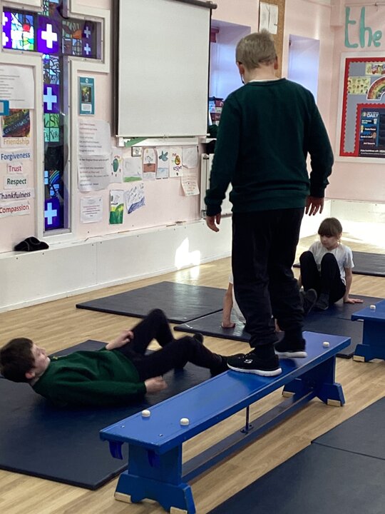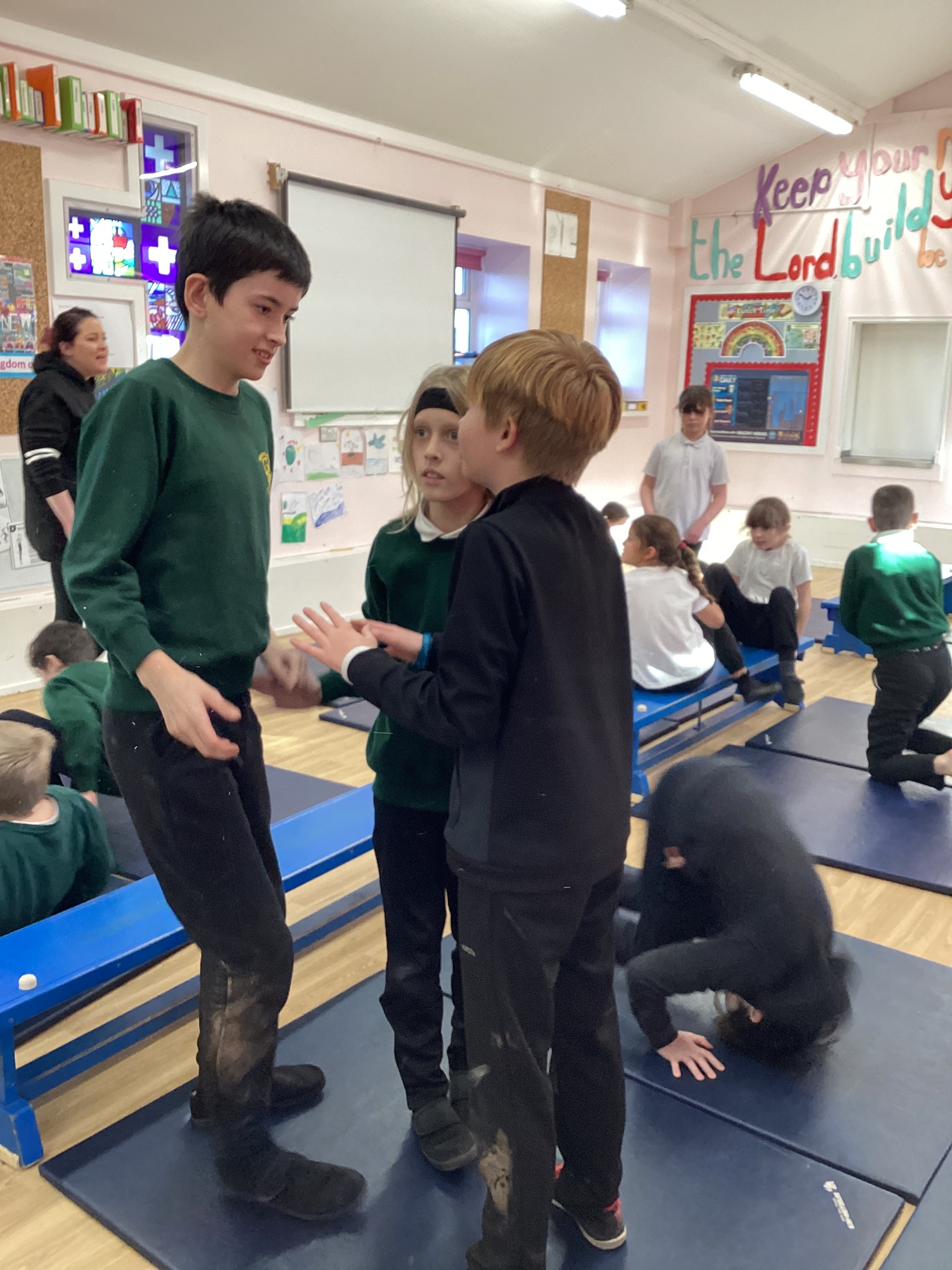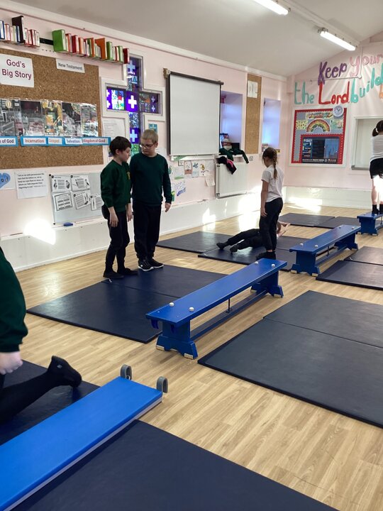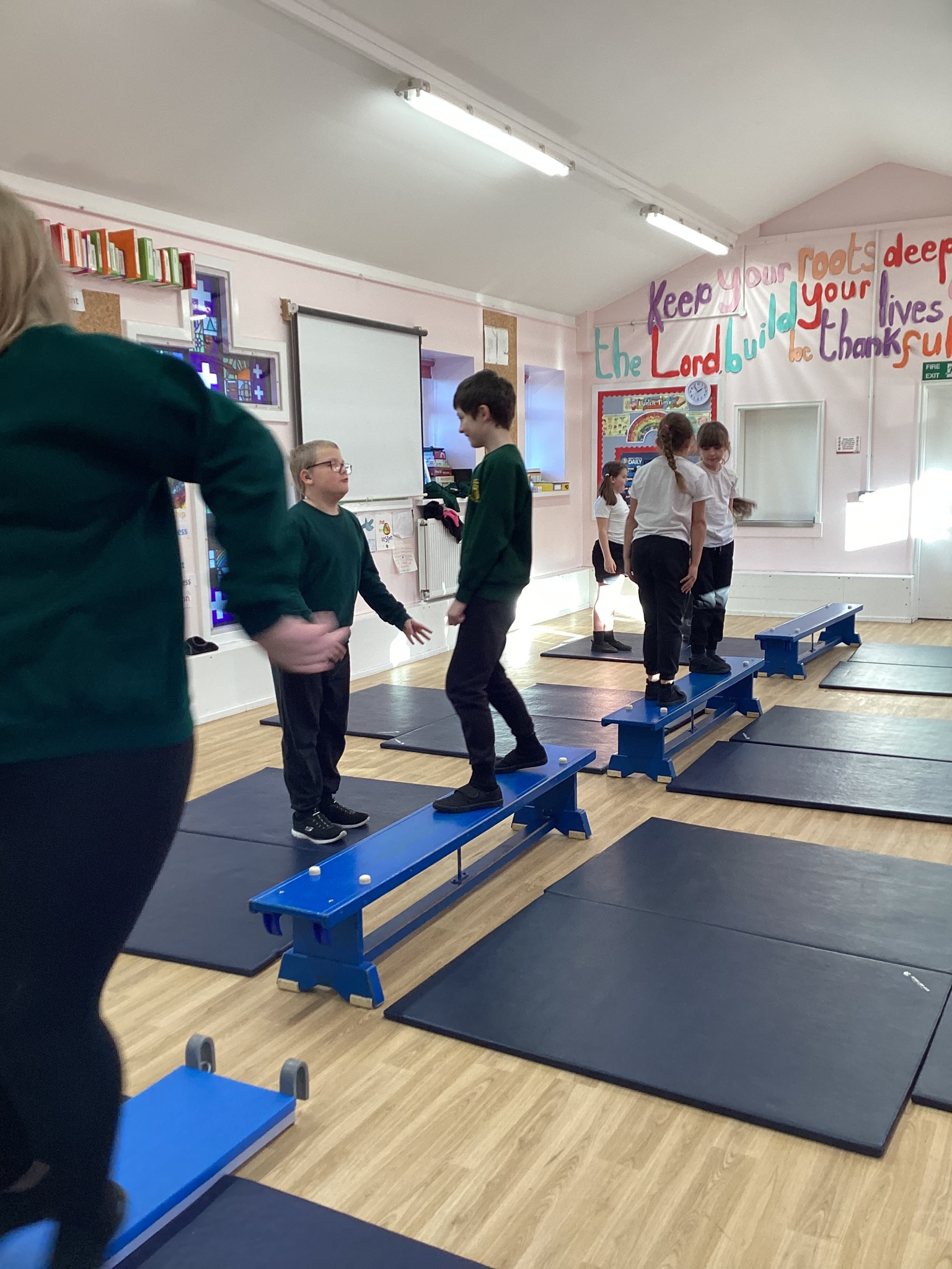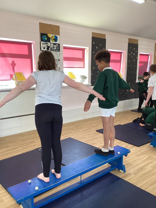 For Upper School’s second gymnastics lesson of Spring, they built on their sequences of balances and travelling from shape to shape from their first lesson. They used canon to vary the sequence and improved their balances (counter tension and counter balance) and ways of travel (sliding, jumping, rolling).