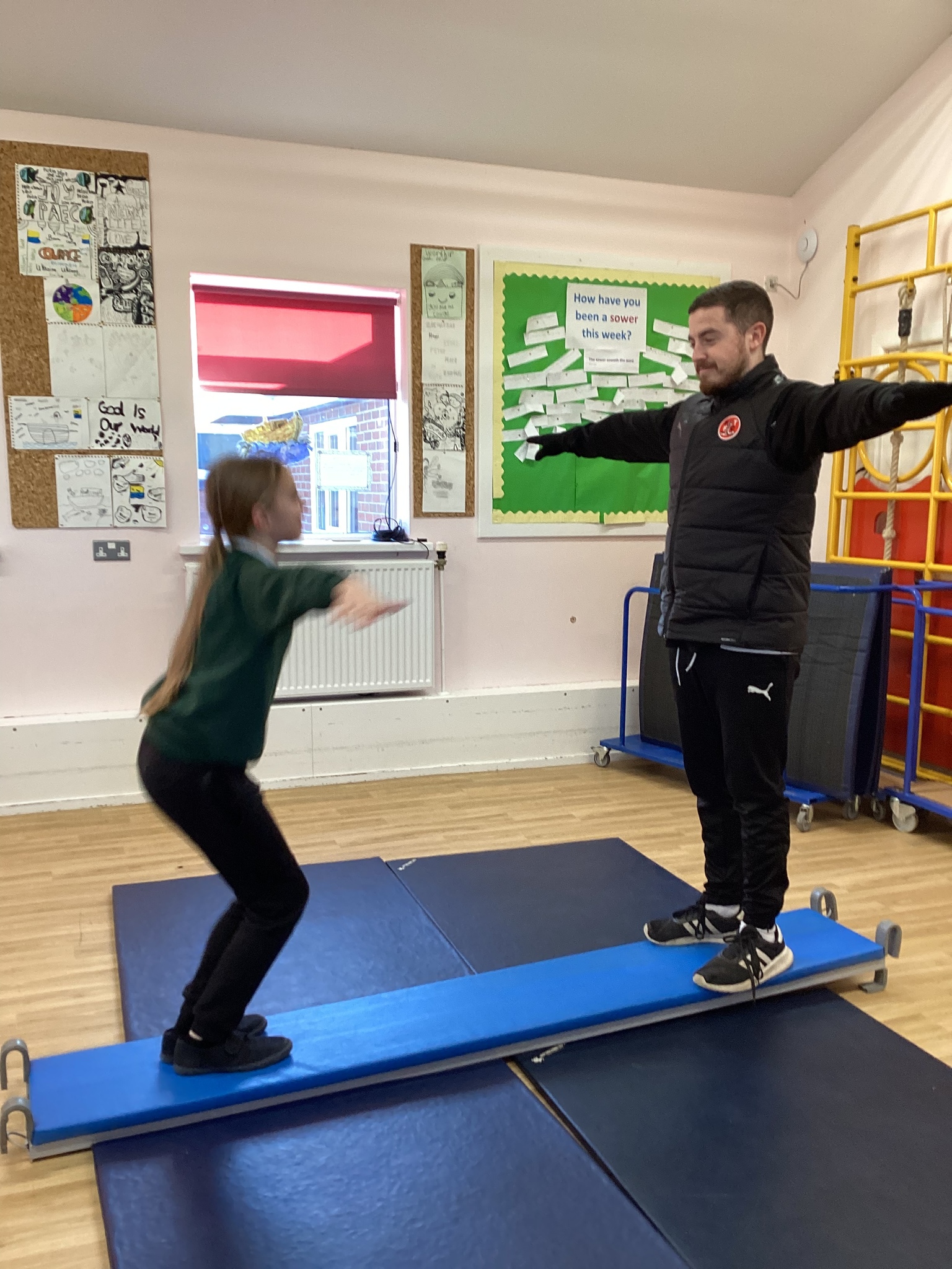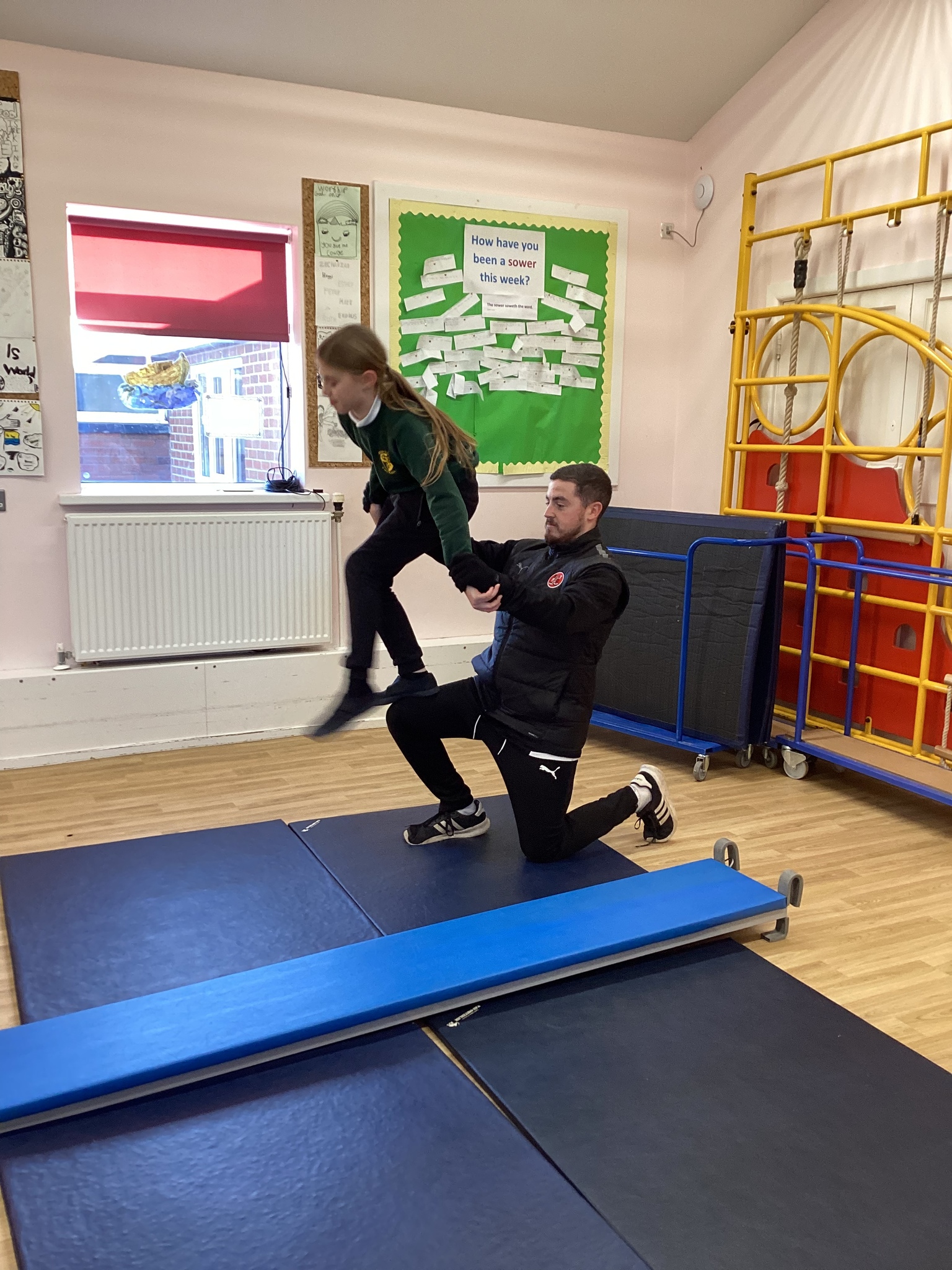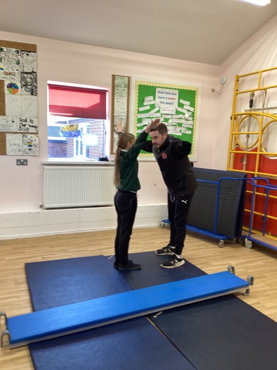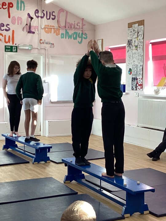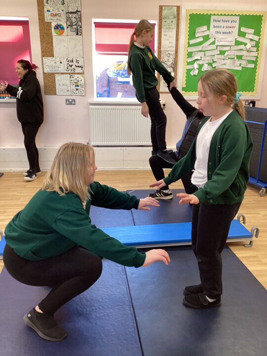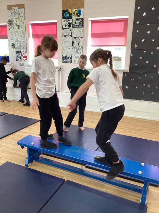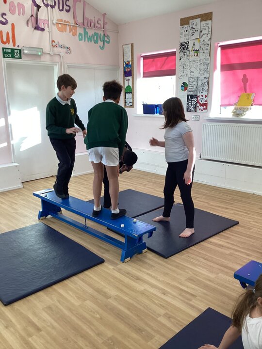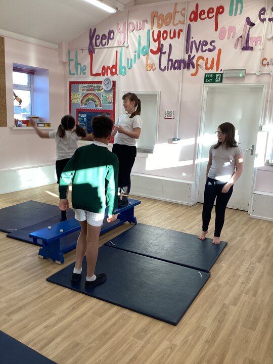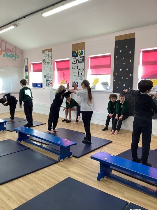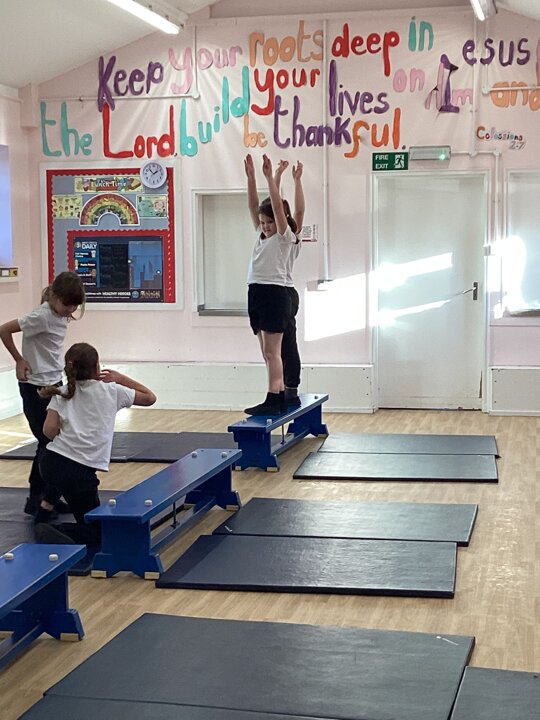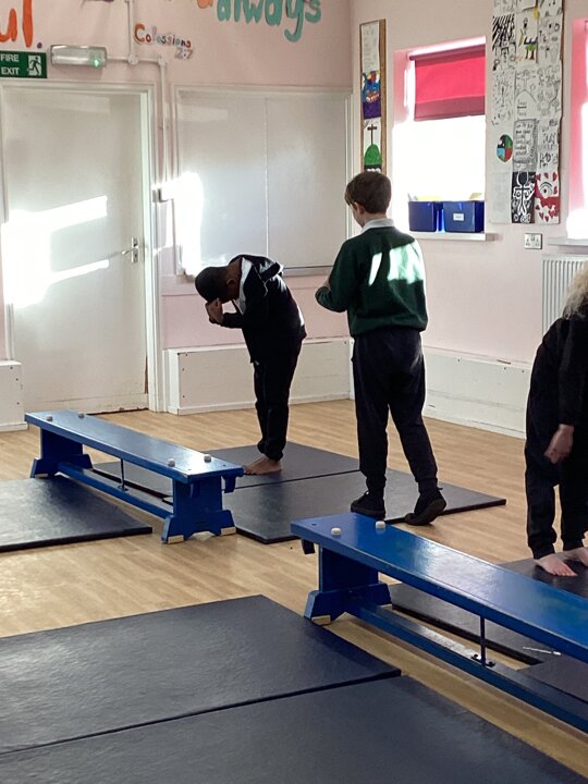 For Upper School’s second gymnastics lesson of Spring, they built on their sequences of balances and travelling from shape to shape from their first lesson. They used canon to vary the sequence and improved their balances (counter tension and counter balance) and ways of travel (sliding, jumping, rolling).