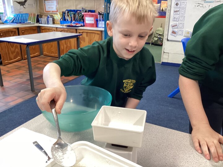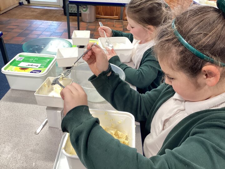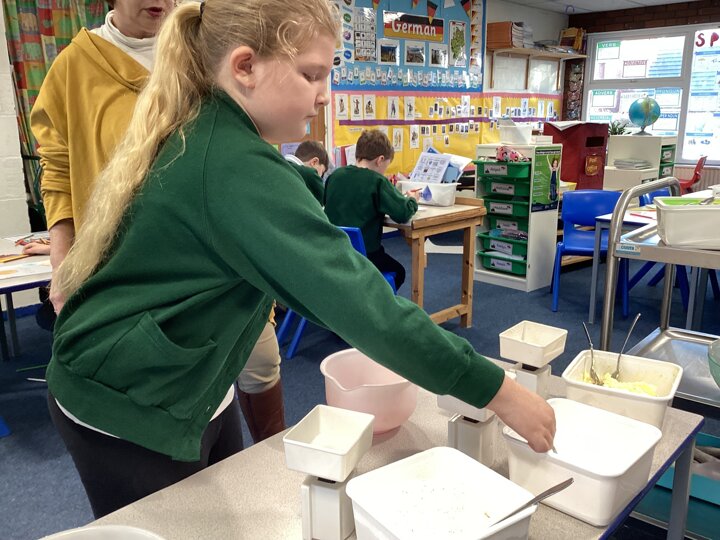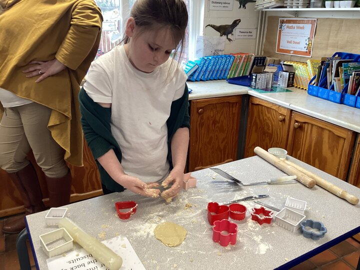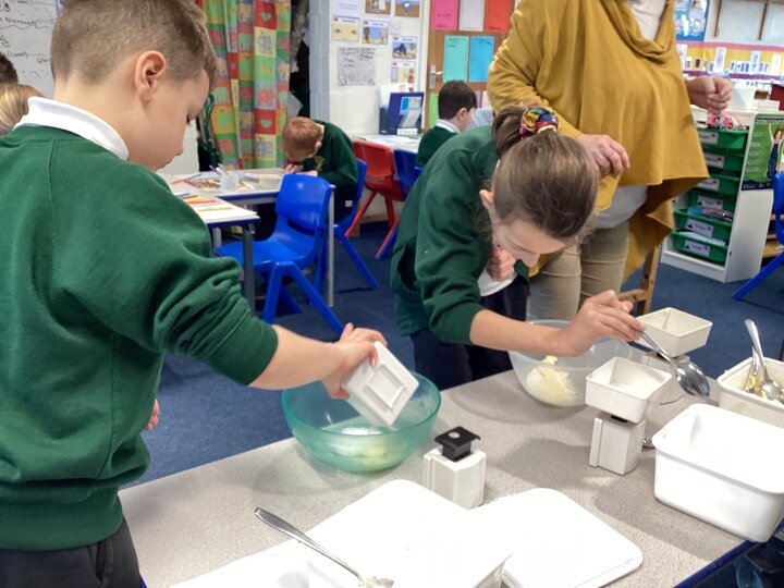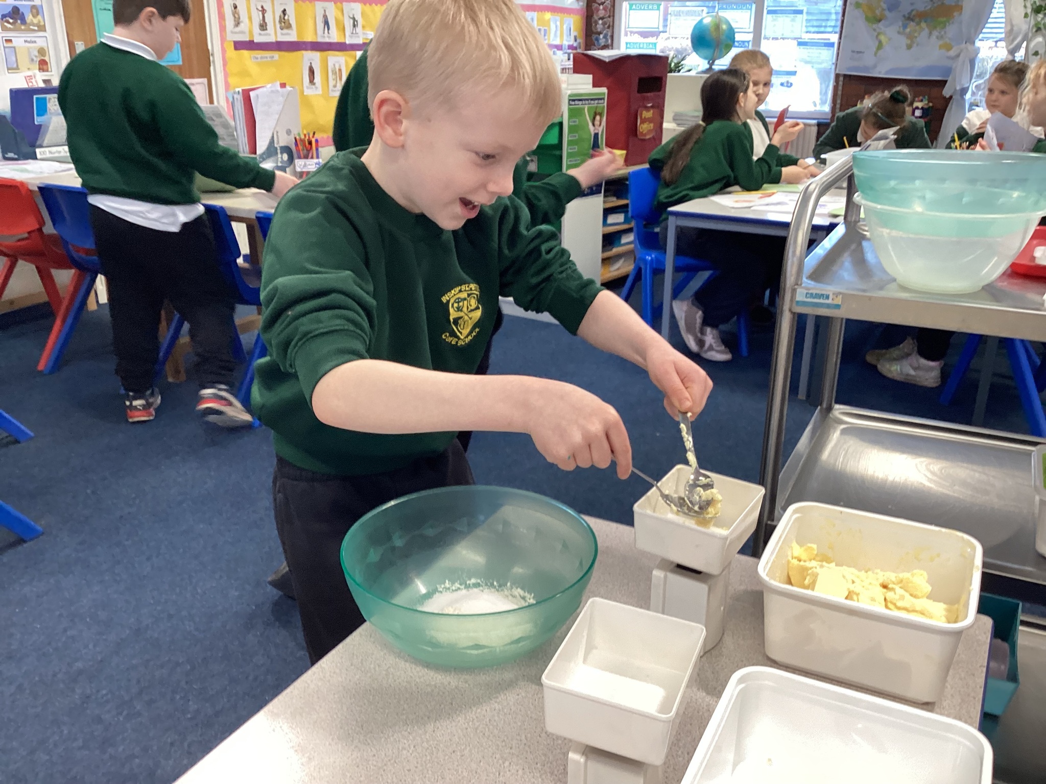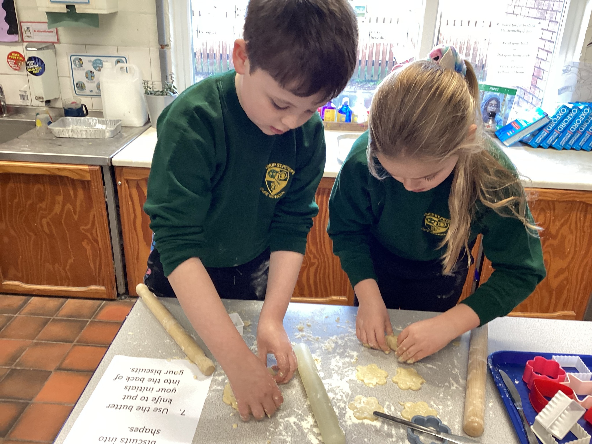 Baking allowed children to follow their DT, but also to use their English comprehension skills with following instructions and their maths measures skills with weighing out amounts.