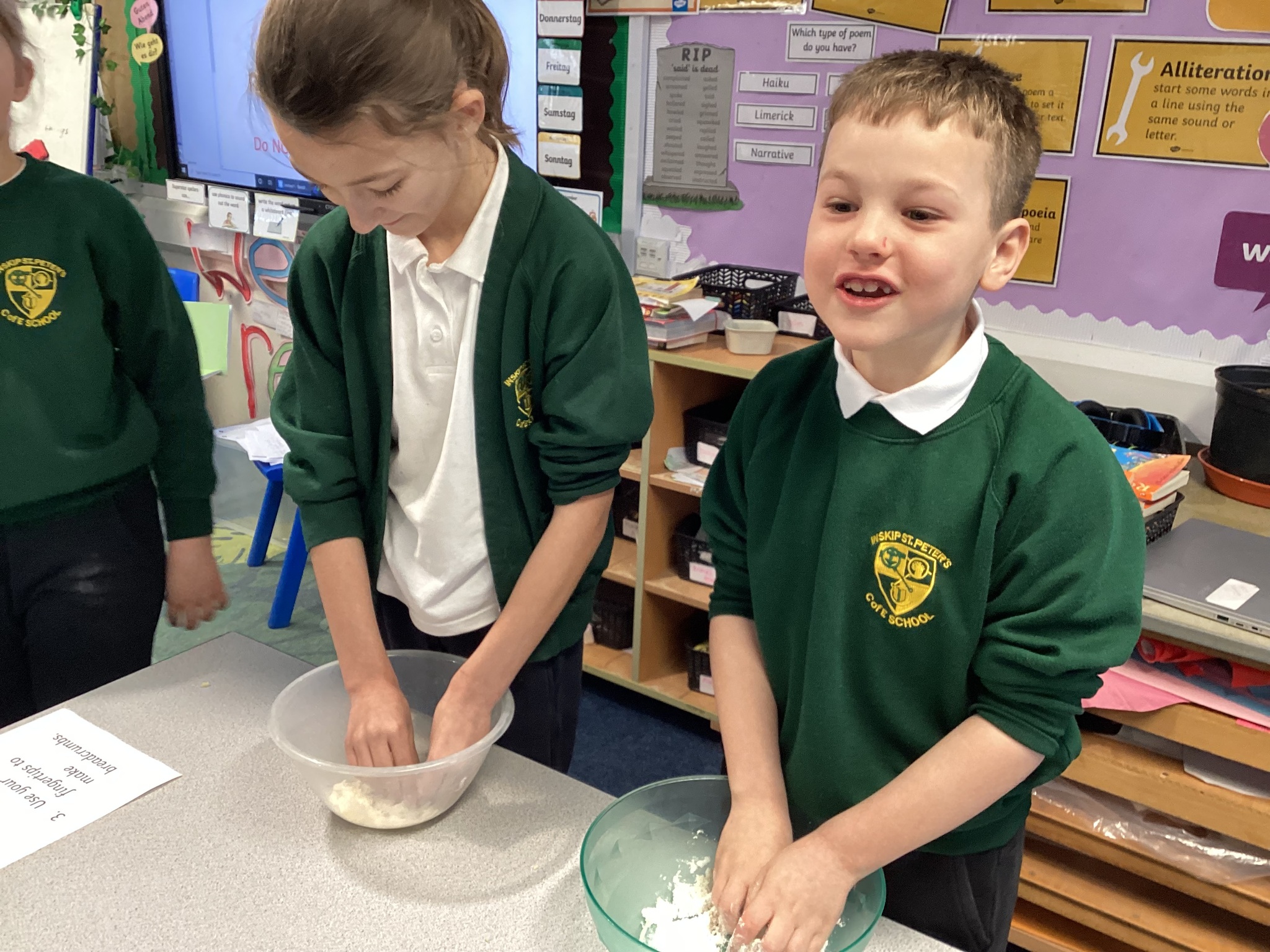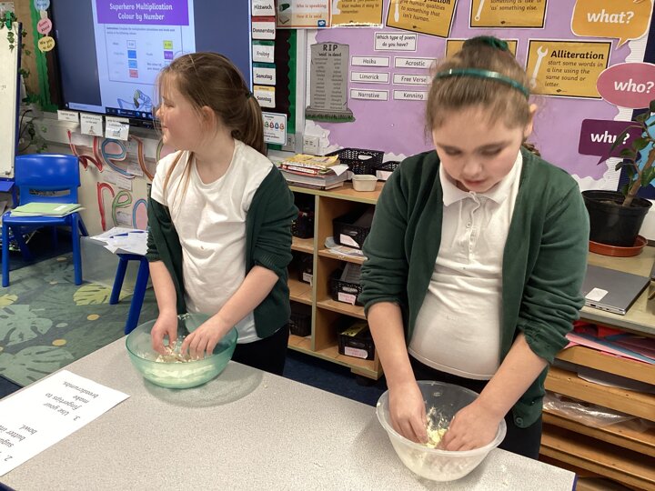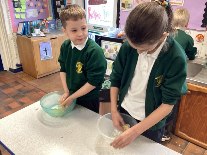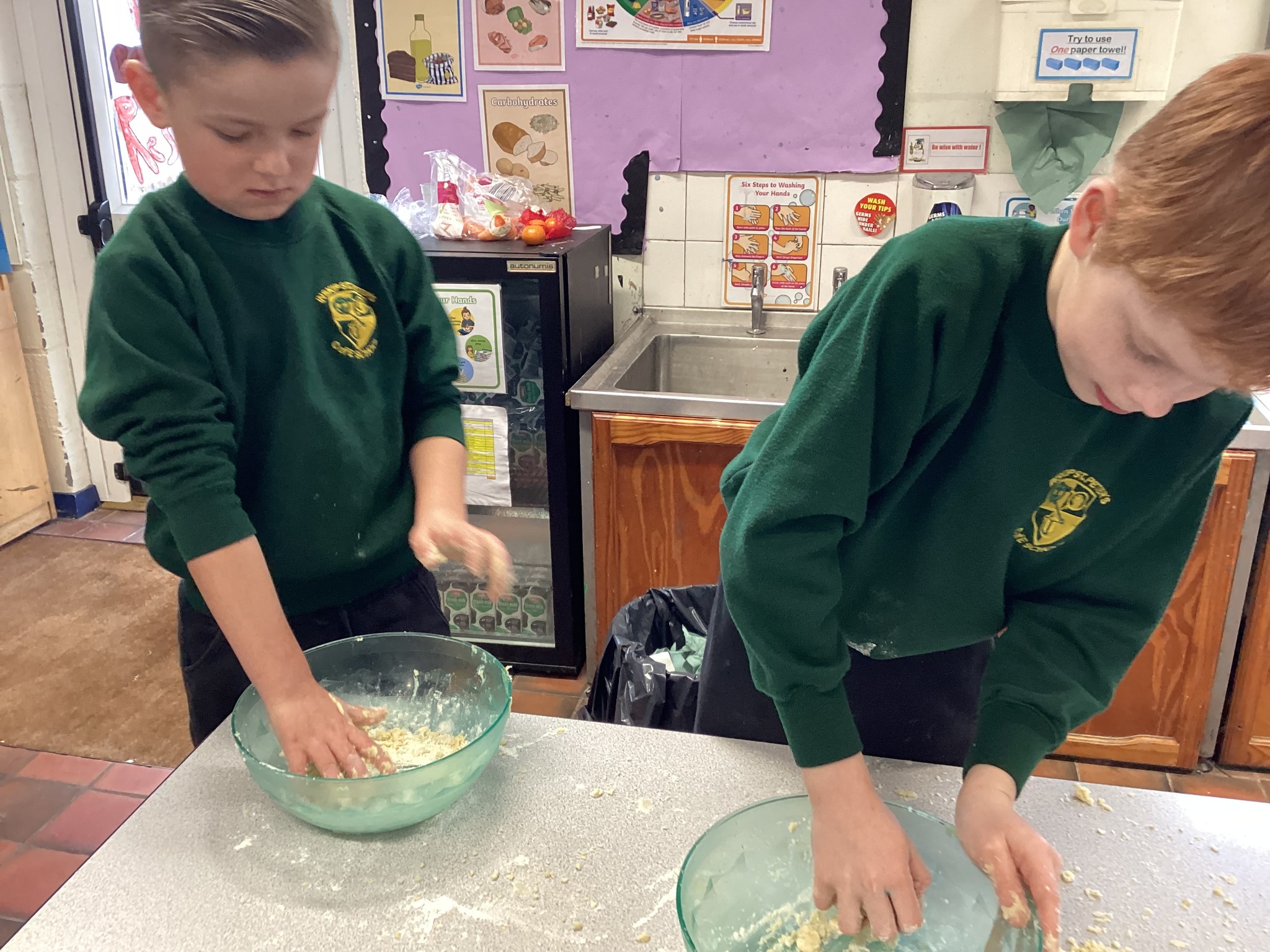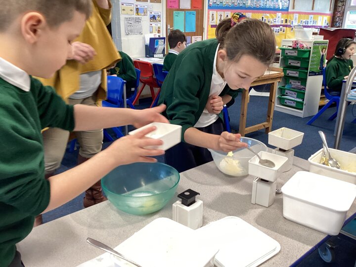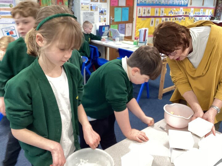 Baking allowed children to follow their DT, but also to use their English comprehension skills with following instructions and their maths measures skills with weighing out amounts.